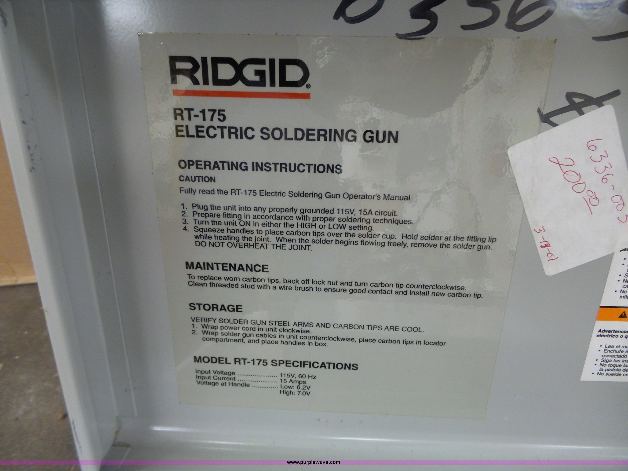 Ridgid RT175 electric soldering gun has sold in Manhattan, Kansas for $440. Item BE9789 sold on May 3rd, 2016.