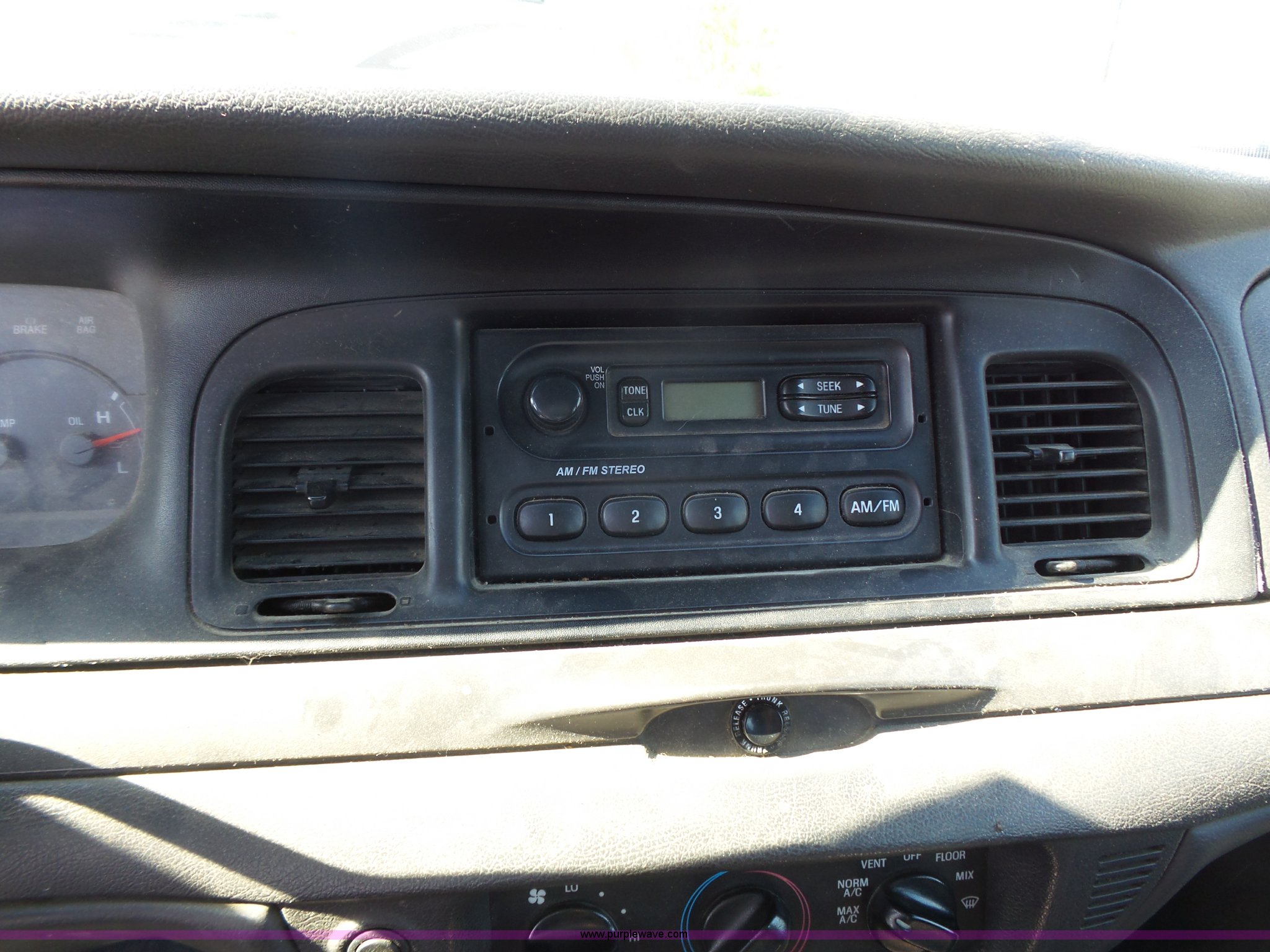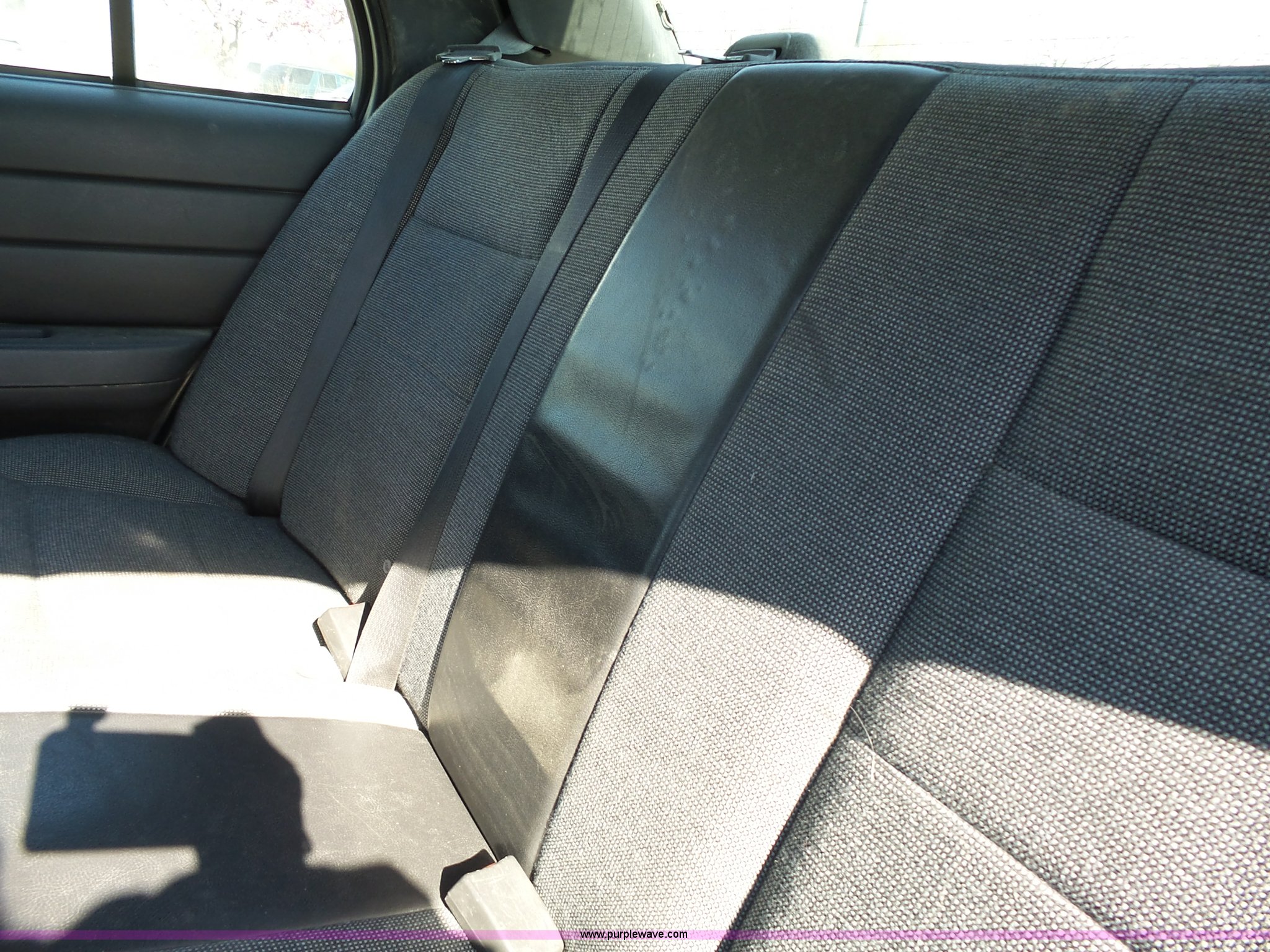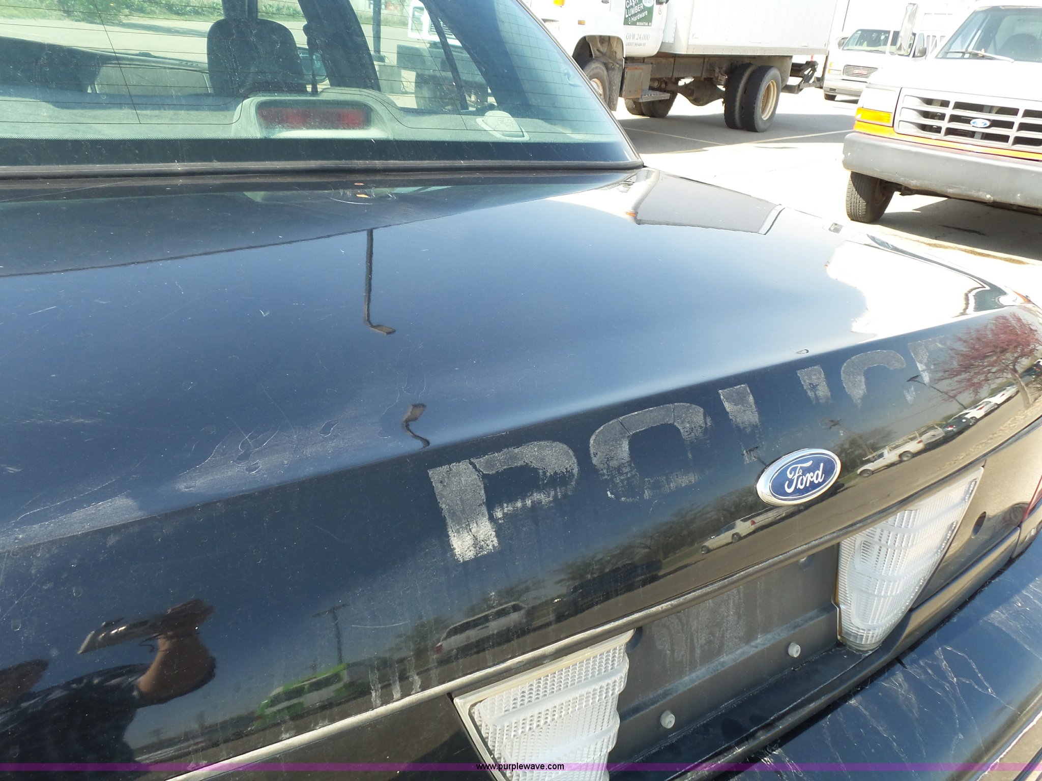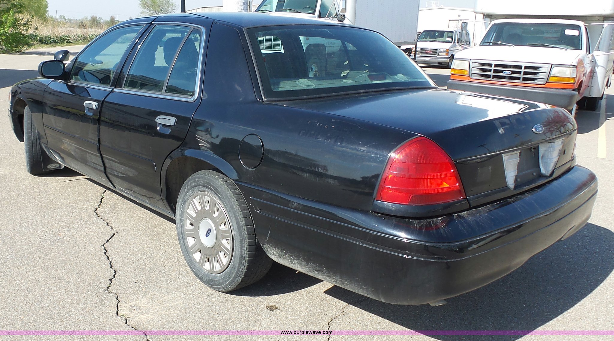 Purple Wave is selling a used Passenger Vehicle in Kansas. This item is a 2003 Ford Crown Victoria Police Interceptor with the following: 133,343 miles on odometer, 4.6L V8 SOHC 16V gas engine, Automatic transmission, AC and heat, Tilt, Cruise, Power windows, locks, mirrors, and seats, Cloth interior, Heated mirrors, Spotlight, Pro-Gard push bar, 225/60R16 tires, Non-operational radio, Hole in headliner, Scratches