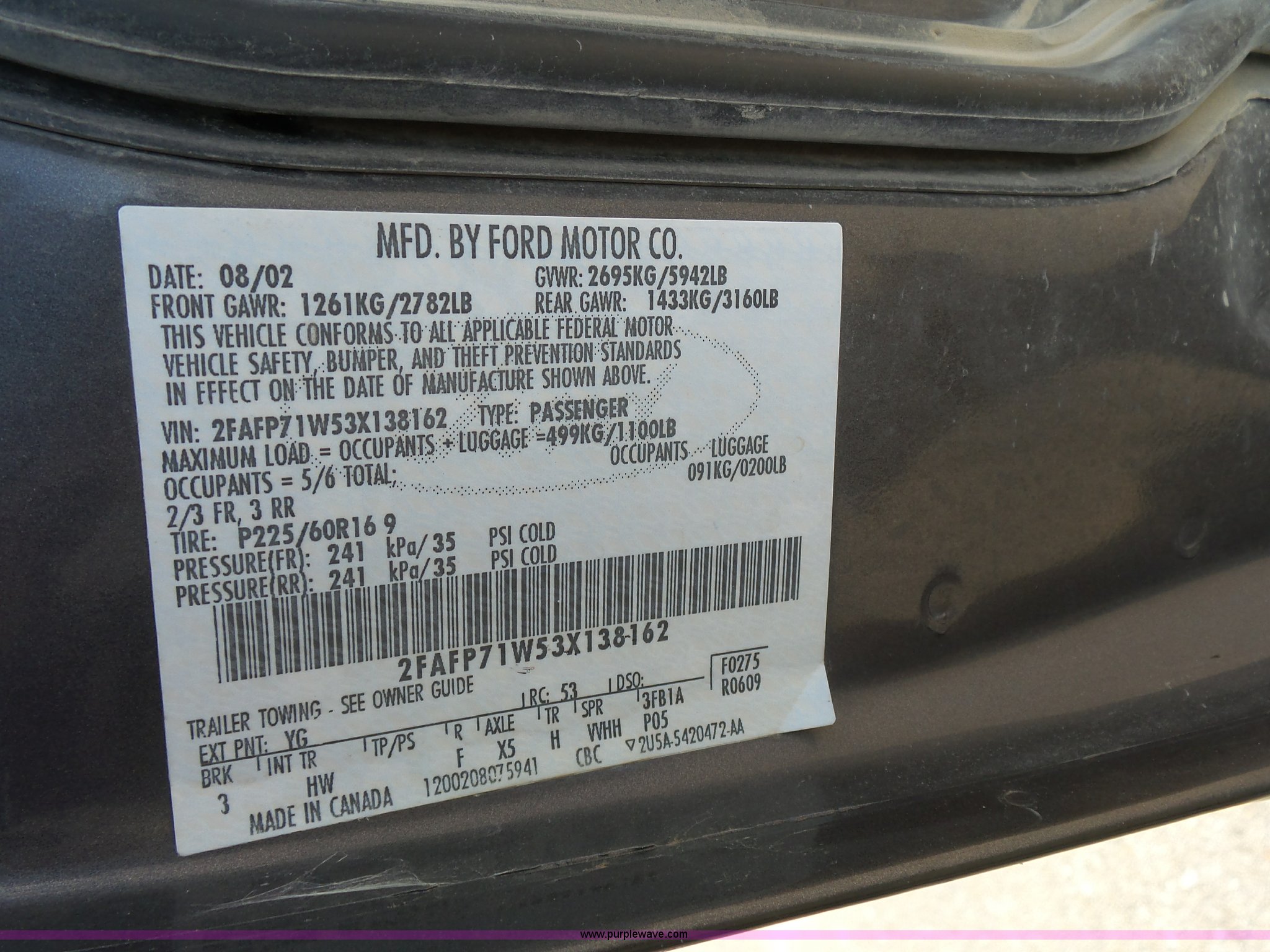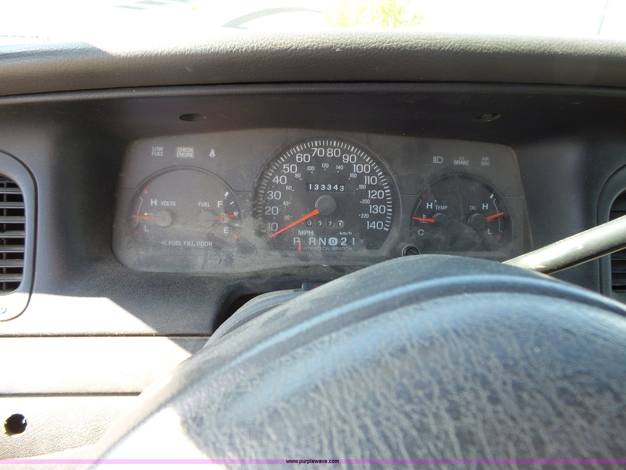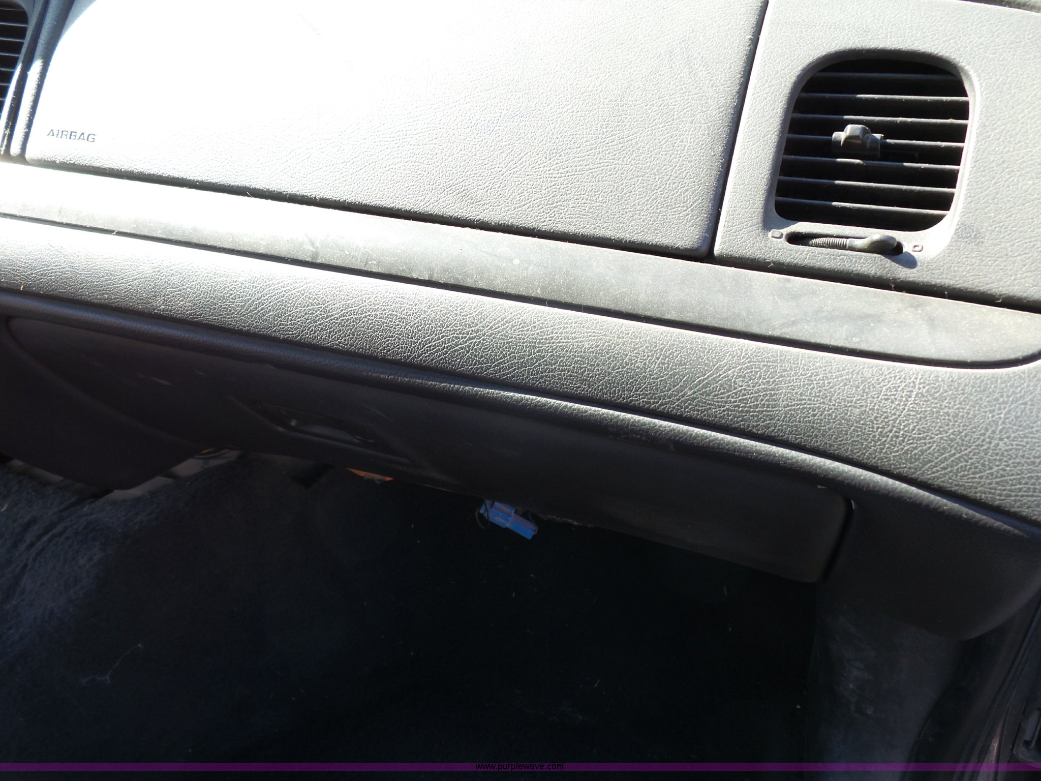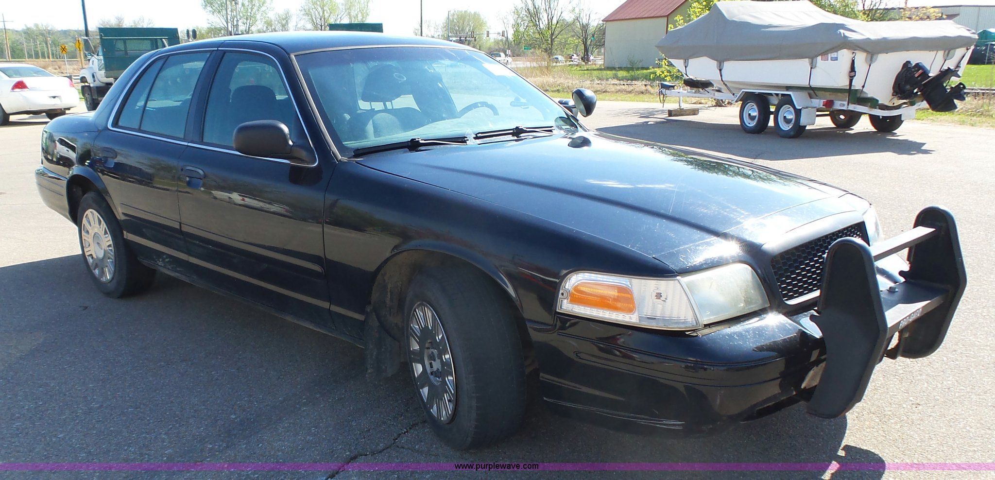 Purple Wave is selling a used Passenger Vehicle in Kansas. This item is a 2003 Ford Crown Victoria Police Interceptor with the following: 133,343 miles on odometer, 4.6L V8 SOHC 16V gas engine, Automatic transmission, AC and heat, Tilt, Cruise, Power windows, locks, mirrors, and seats, Cloth interior, Heated mirrors, Spotlight, Pro-Gard push bar, 225/60R16 tires, Non-operational radio, Hole in headliner, Scratches