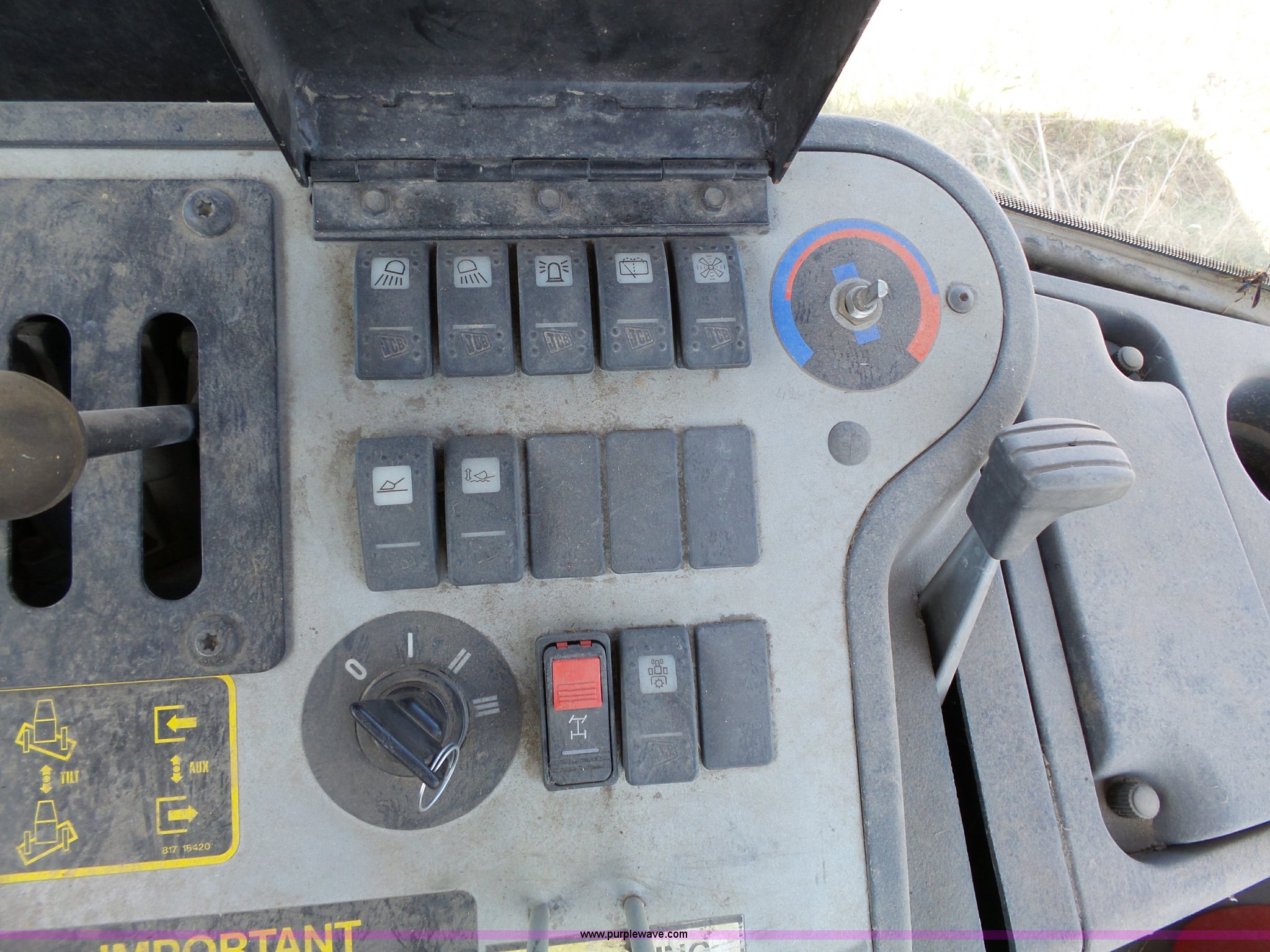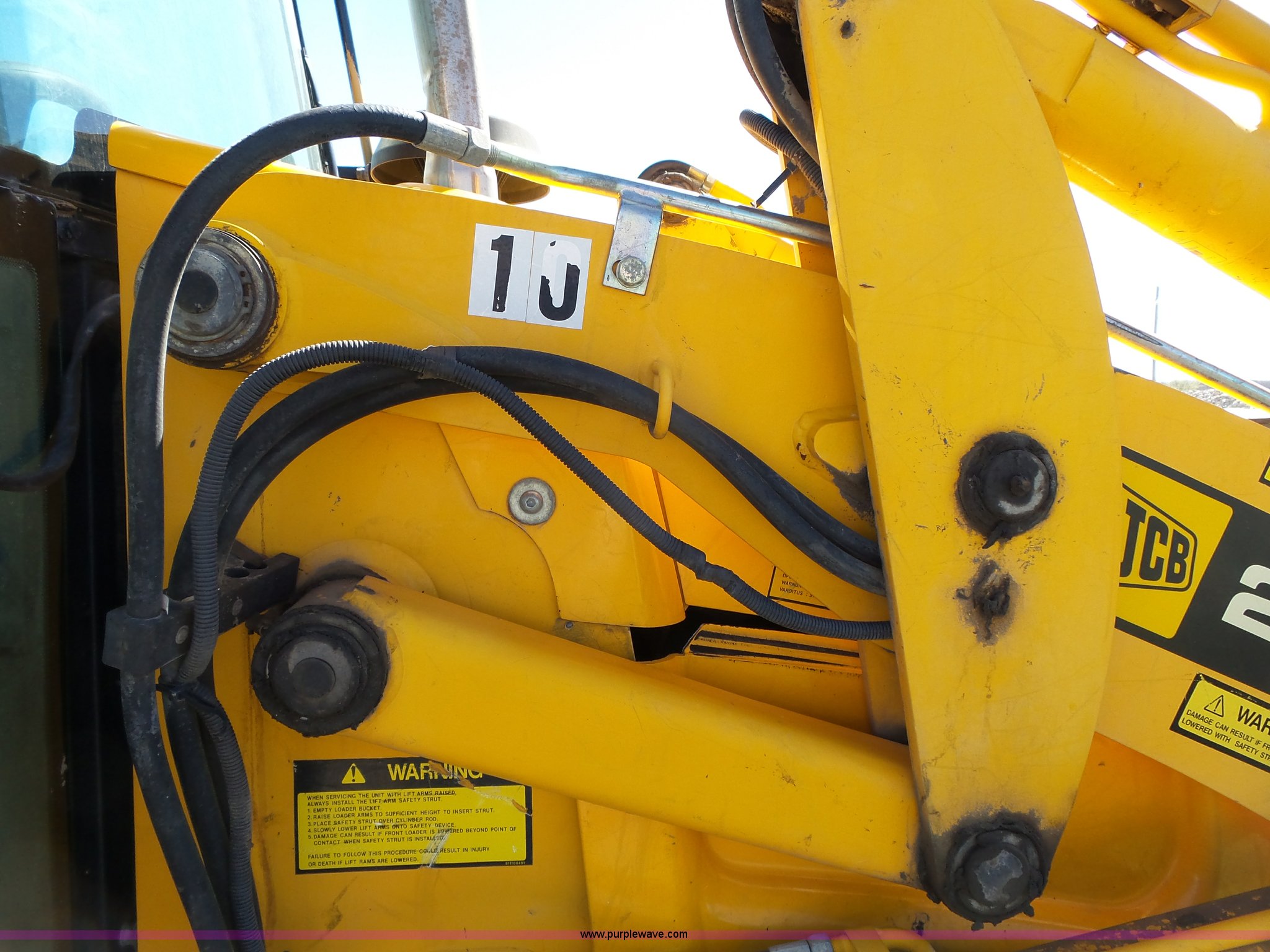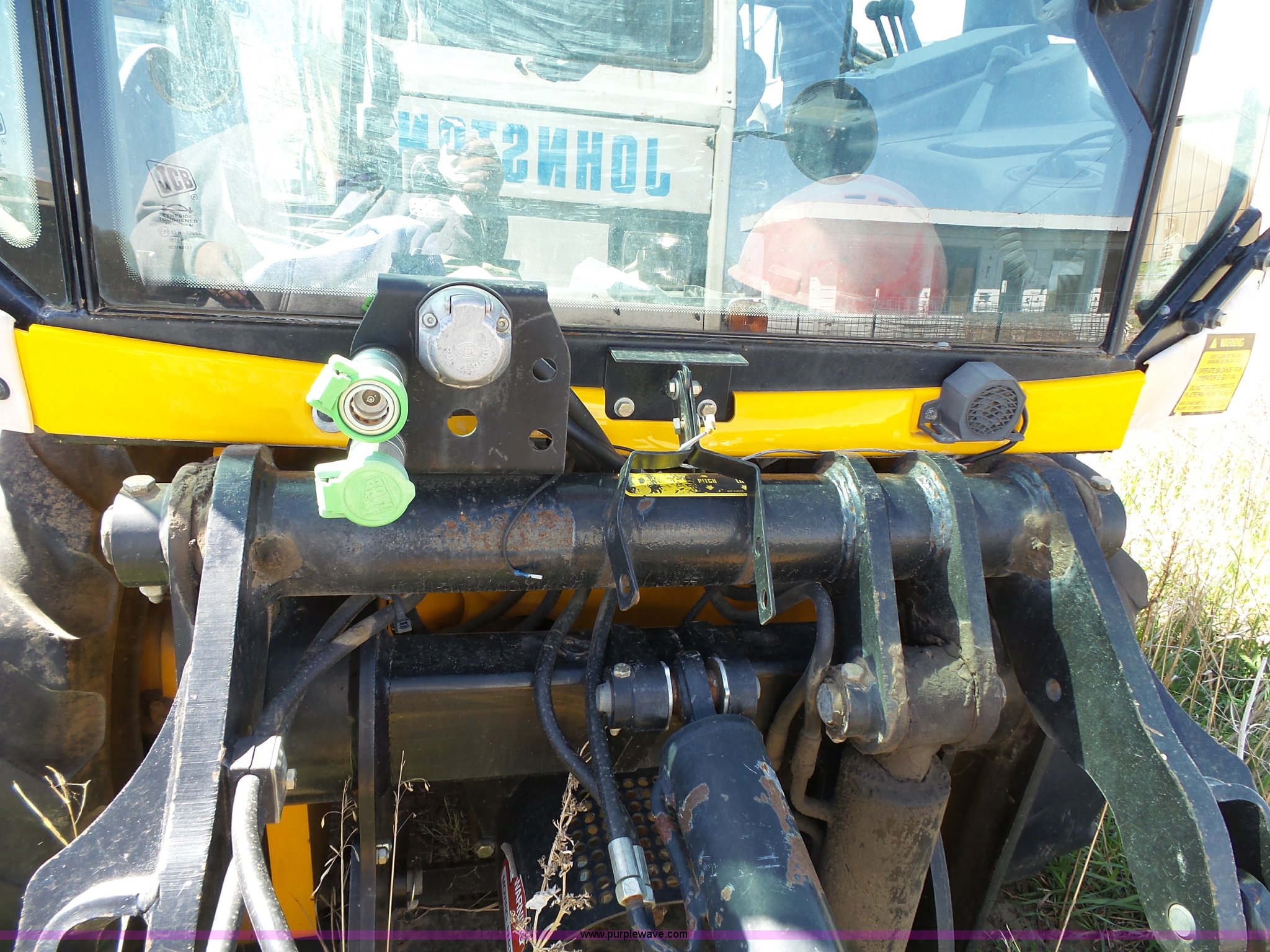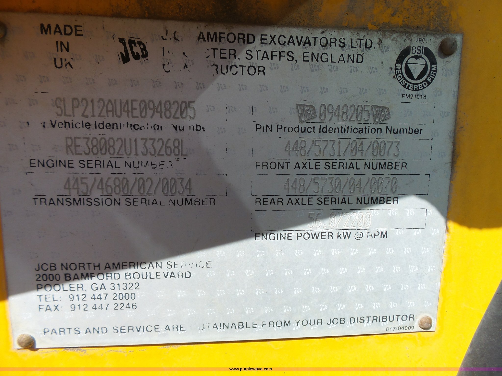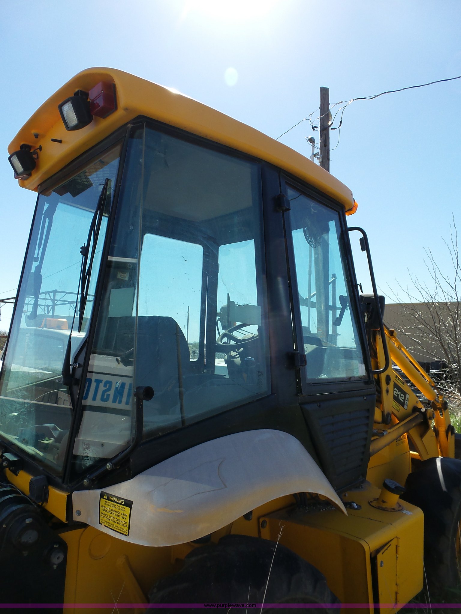 Purple Wave is selling a used Wheel Loader in Kansas. This item is a JCB 212SU wheel loader with the following: Diesel engine, Serial RE38082U133268L, Manual transmission, Enclosed cab, Front and rear work lights, Wipers, Two-lever controls, 76"W loader bucket, Bolt-on cutting edge, 0.7 cu. meter capacity, Rear auxiliary hydraulics, 540 PTO, Three point, Counterweight, Michelin 335/80R18 tires, Worn, Dead battery, Transmission issues, Driver side door will not latch, Last ran one year ago, PIN 0948205, Serial SLP212AU4E0948205, Unit# 10