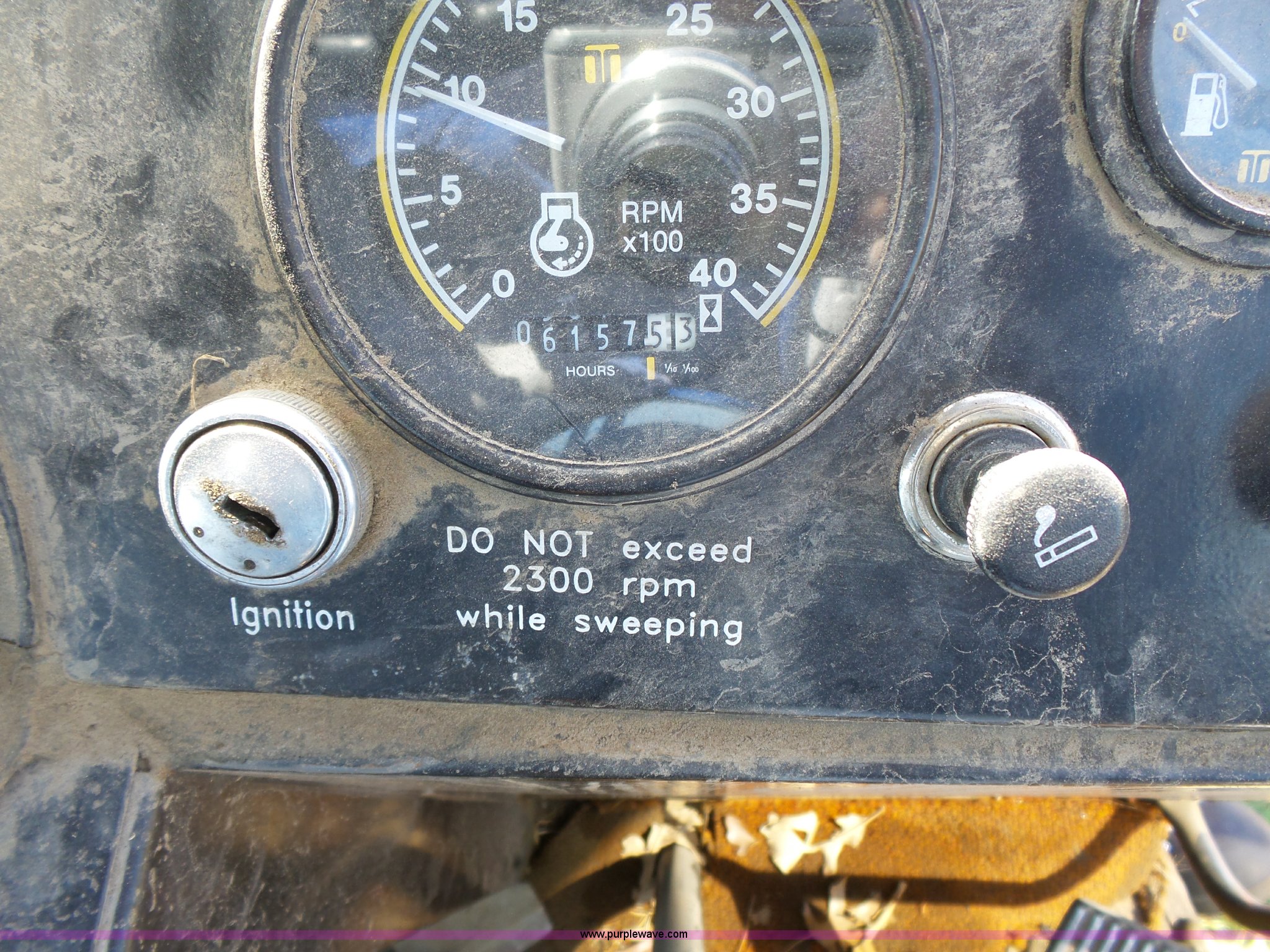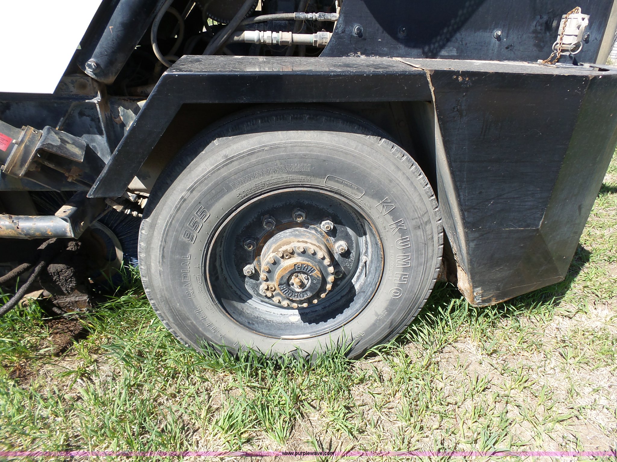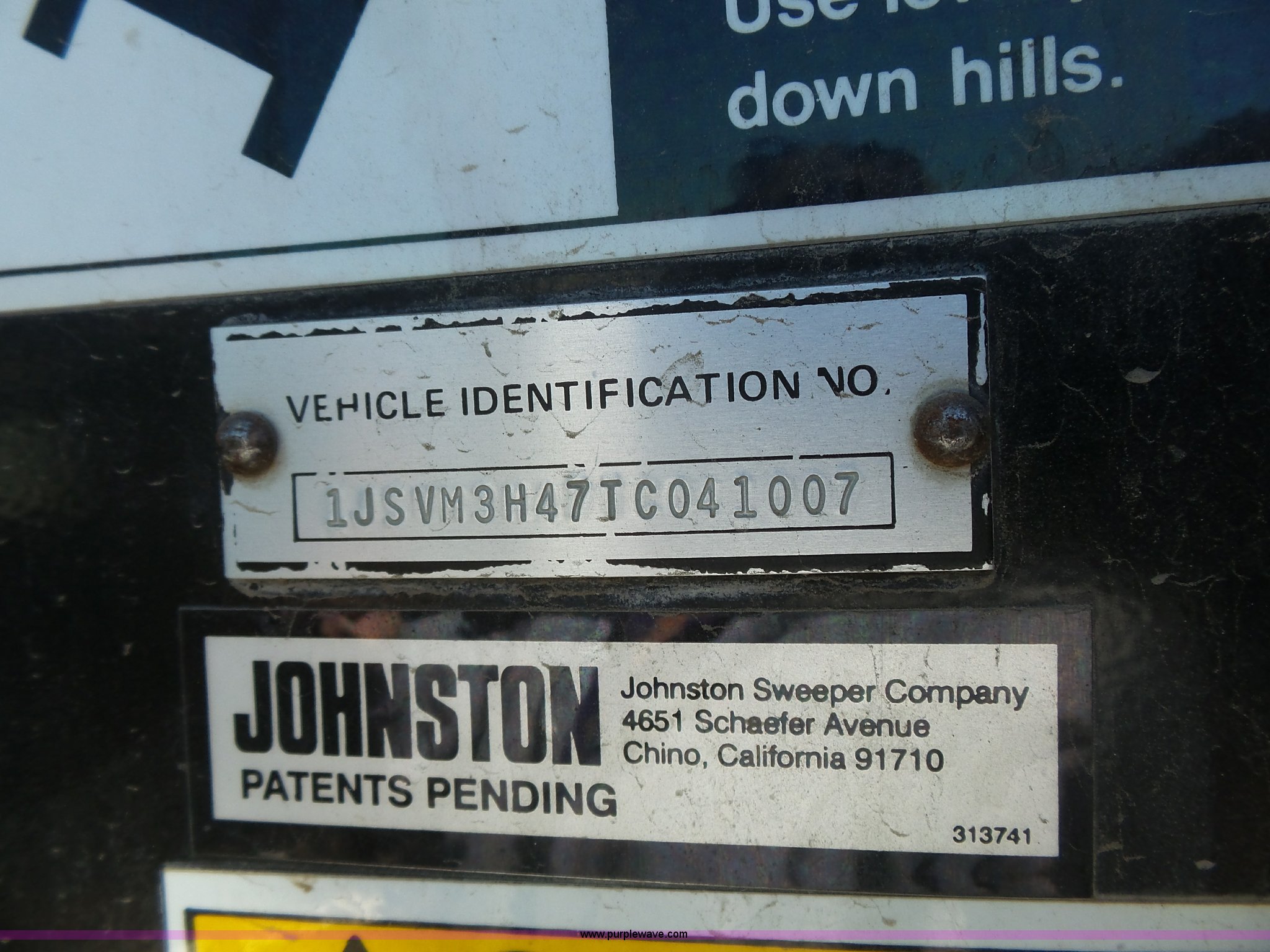 Purple Wave is selling a used Sweeper in Kansas. This item is a 1996 Johnston street sweeper with the following: 25,786 miles on odometer, 6,157 hours on meter, Turbo diesel engine, Three speed transmission, AC and heat, Tilt, Cloth interior, Front and side work lights, Backup alarm, Beacon light, 52" main broom, (2) 34" side gutter brooms, Kumho 11R22.5 rear tires, Shutdown override, Rust, Dead battery, Holes in hopper belt