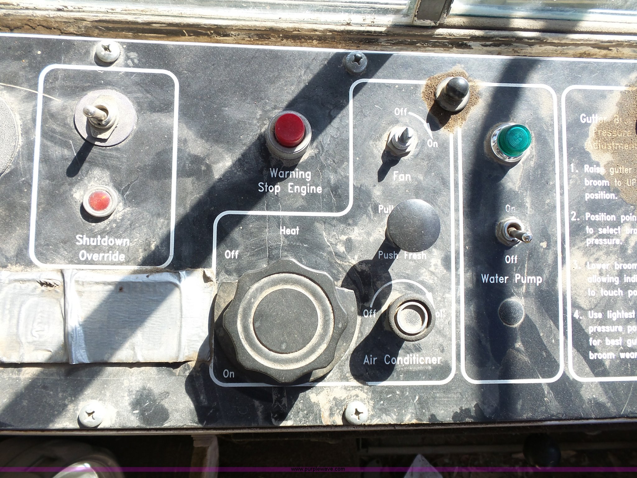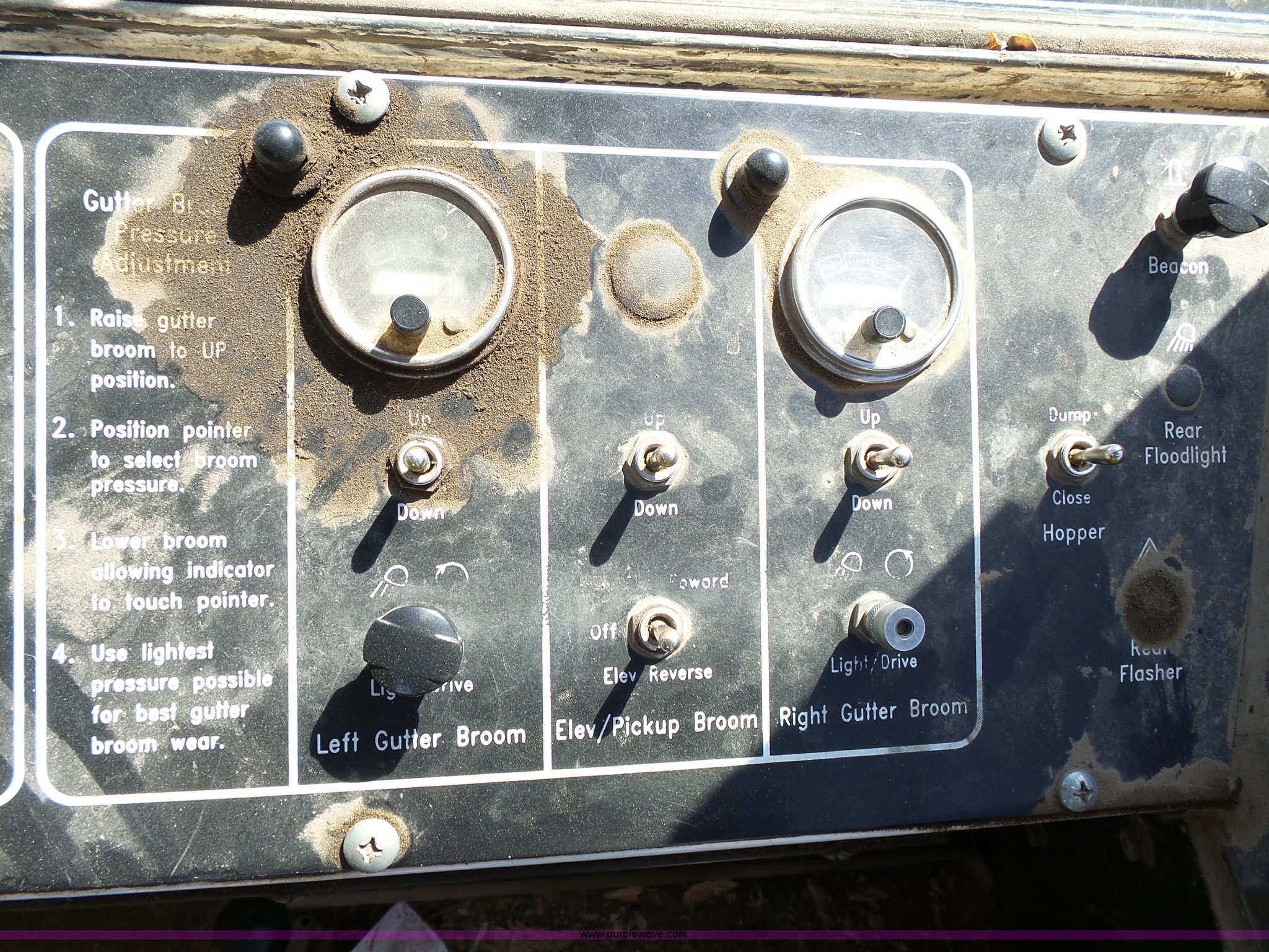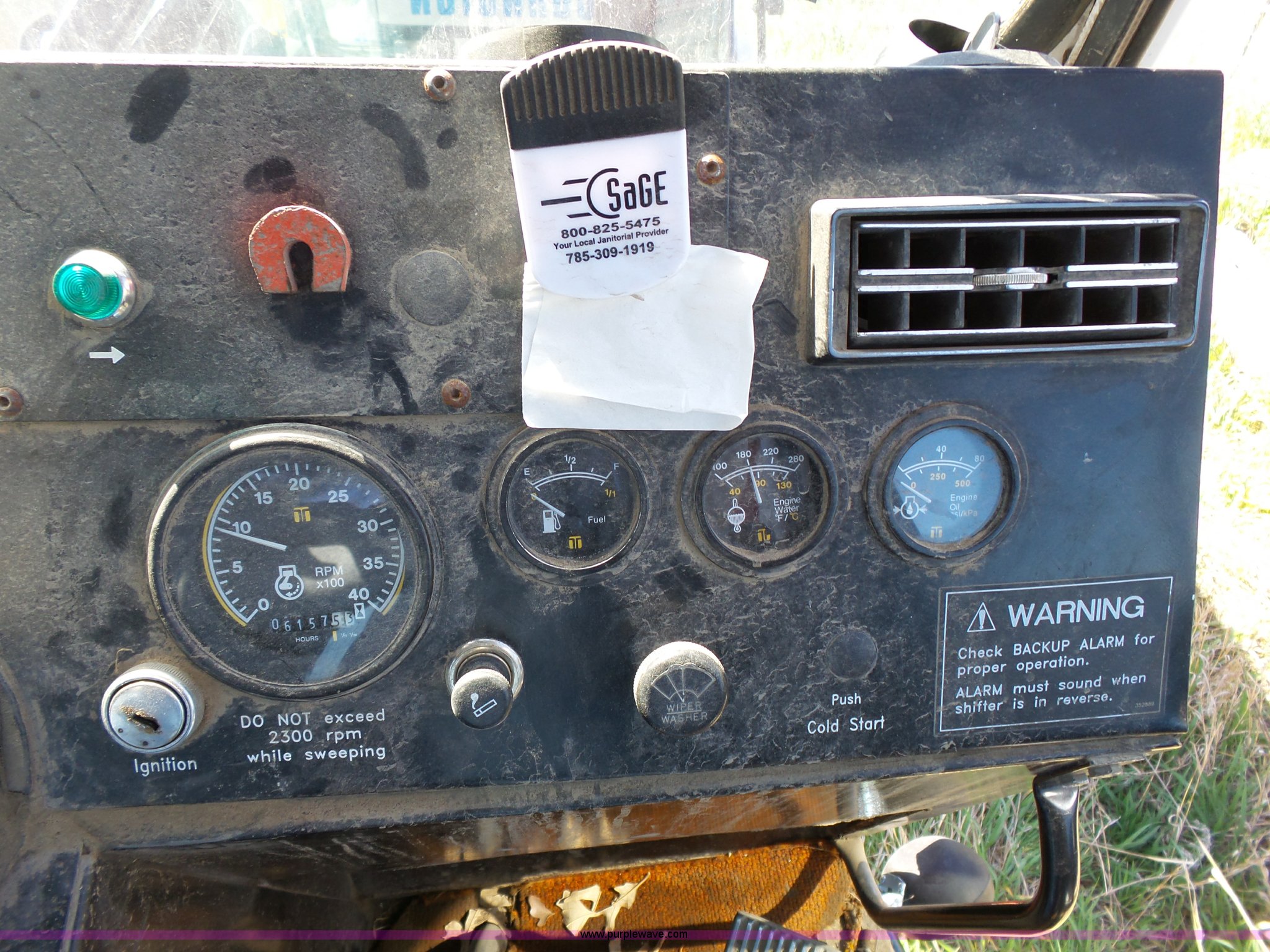 Purple Wave is selling a used Sweeper in Kansas. This item is a 1996 Johnston street sweeper with the following: 25,786 miles on odometer, 6,157 hours on meter, Turbo diesel engine, Three speed transmission, AC and heat, Tilt, Cloth interior, Front and side work lights, Backup alarm, Beacon light, 52" main broom, (2) 34" side gutter brooms, Kumho 11R22.5 rear tires, Shutdown override, Rust, Dead battery, Holes in hopper belt