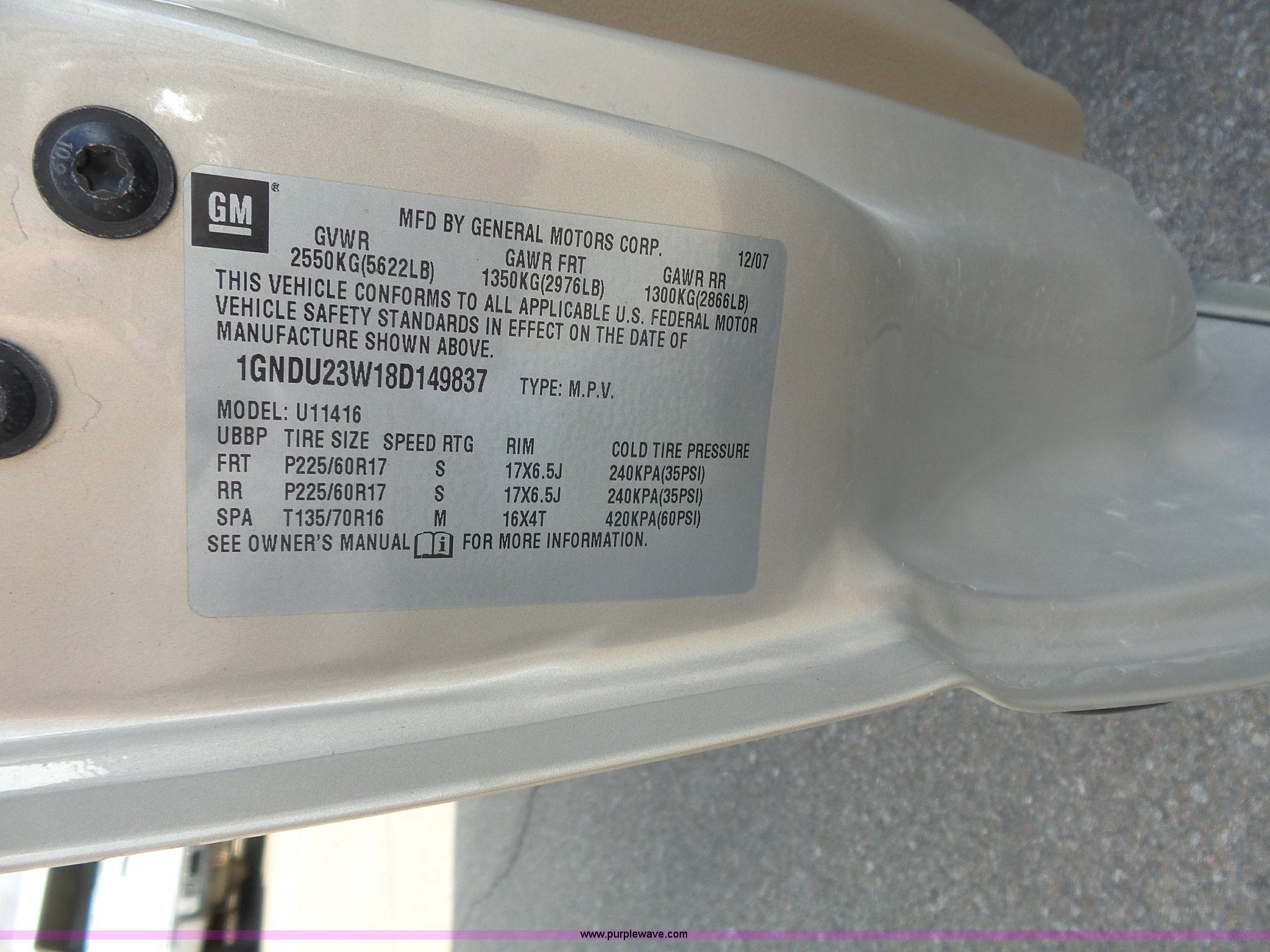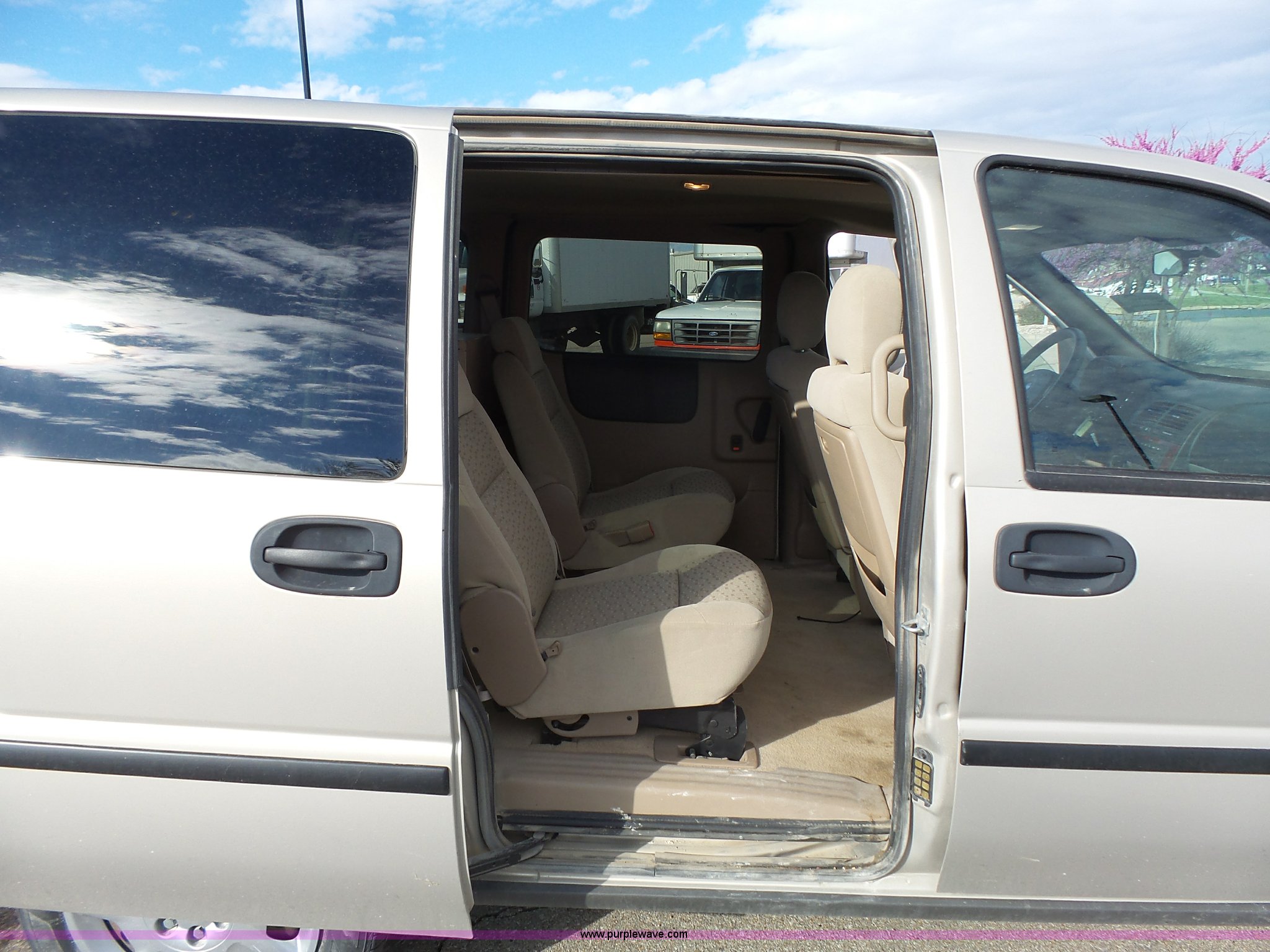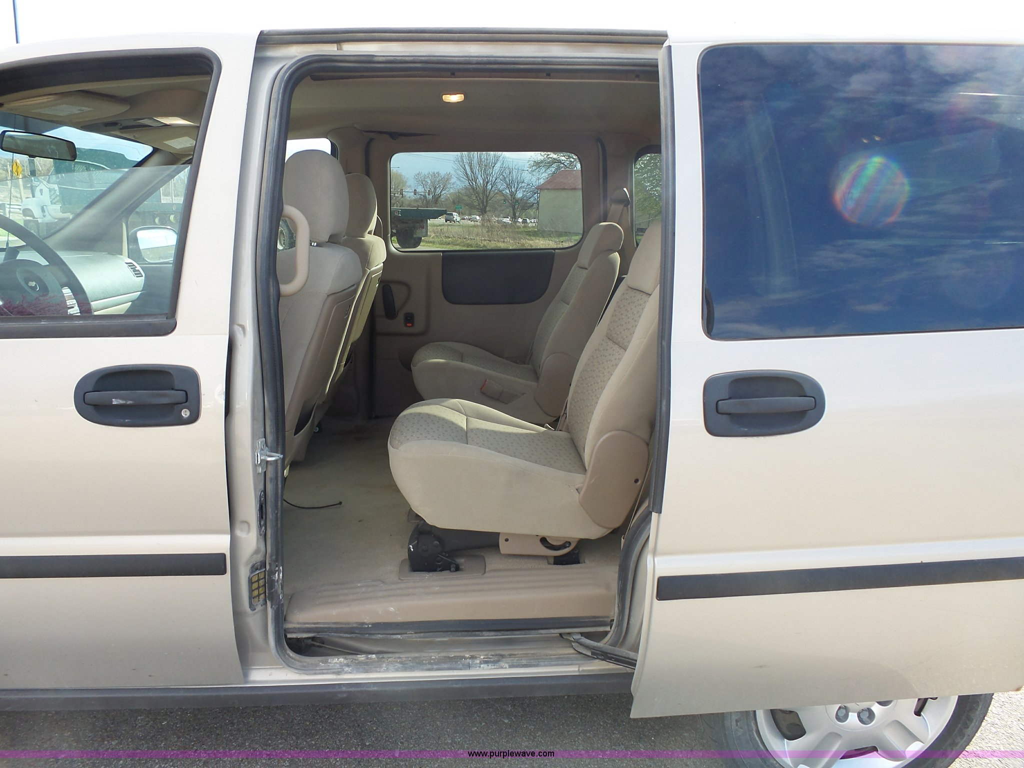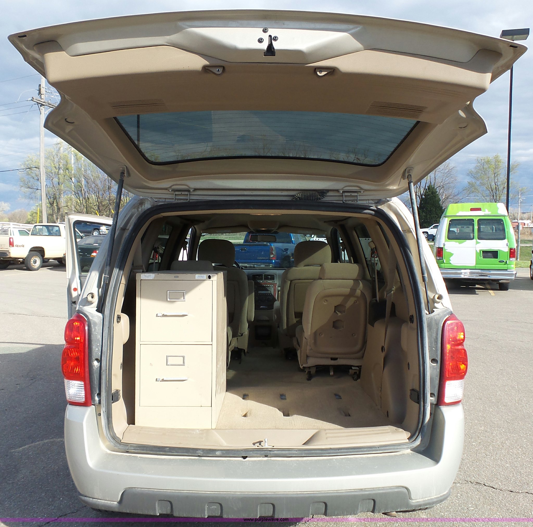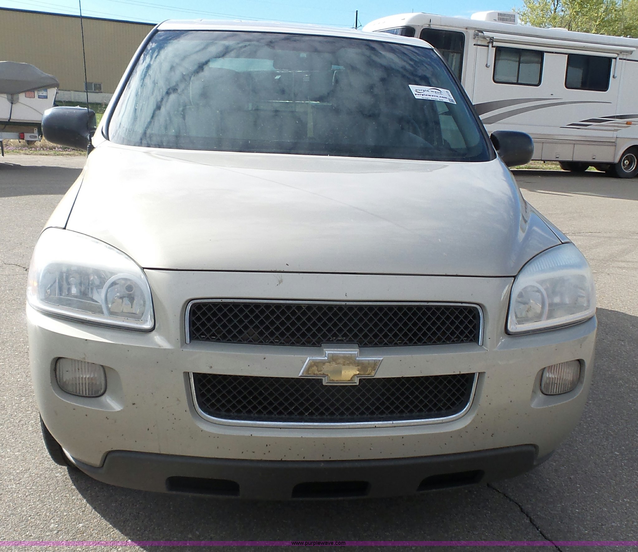 Purple Wave is selling a used Passenger Vehicle in Kansas. This item is a 2008 Chevrolet Uplander LS van with the following: 204,079 miles on odometer, 3.9L V6 OHV 12V FFV gas engine, Automatic transmission, AC and heat, Tilt, Cruise, AM/FM/CD, Power windows, locks, and mirrors, Cloth interior, Fog lights, Two drawer file cabinet, 225/60R17 tires, Third seat missing, Rust, Unit# 12663