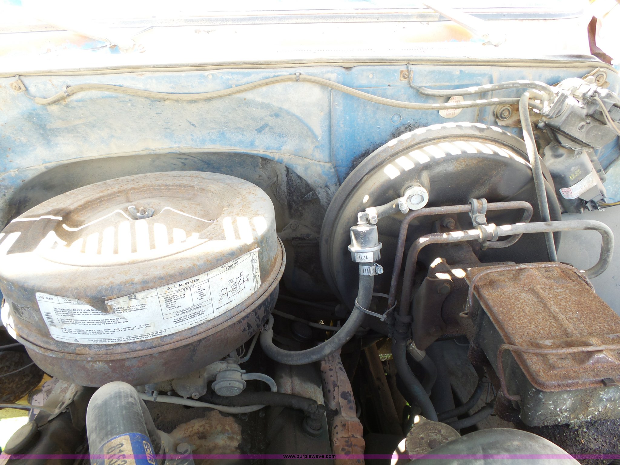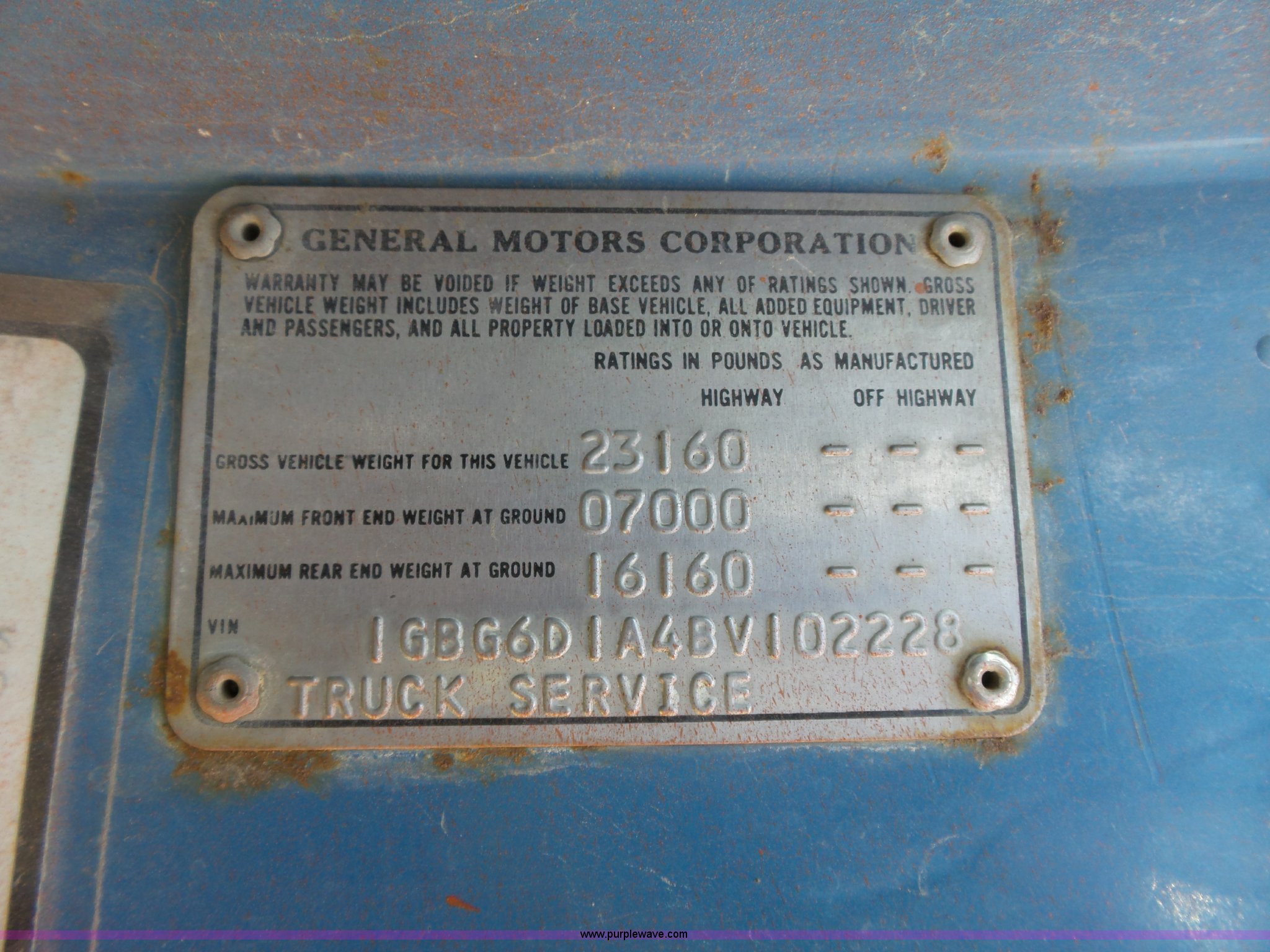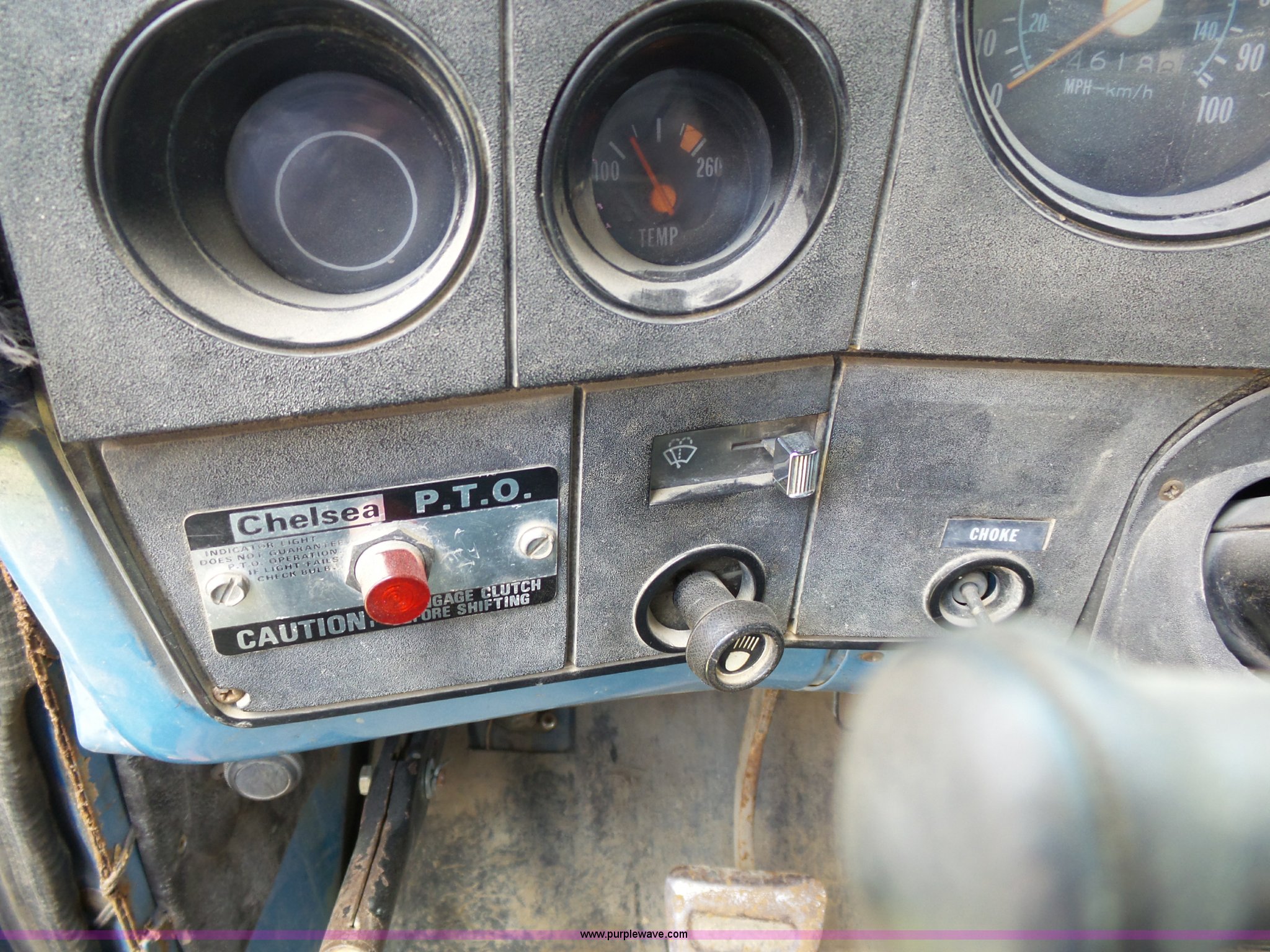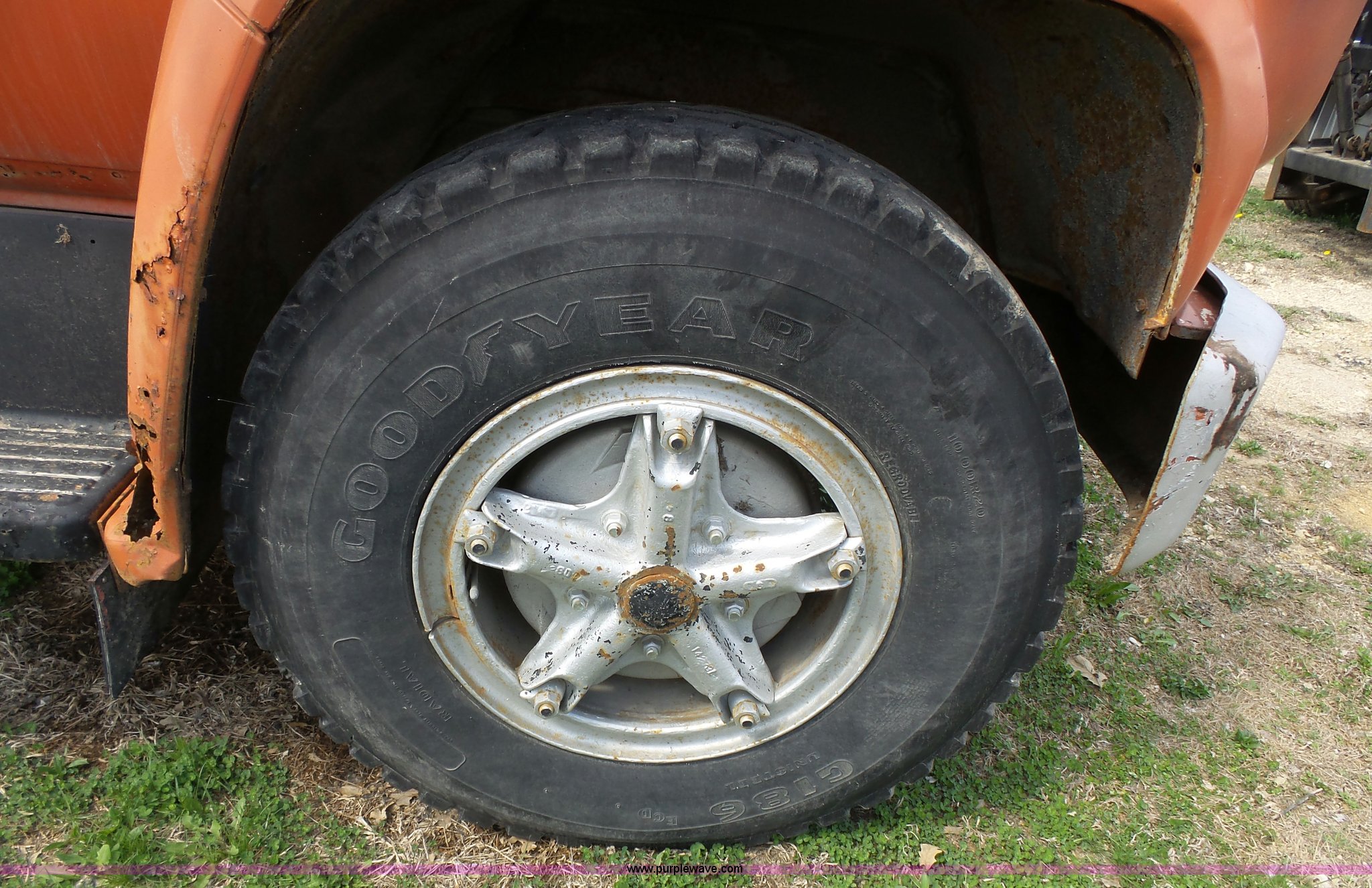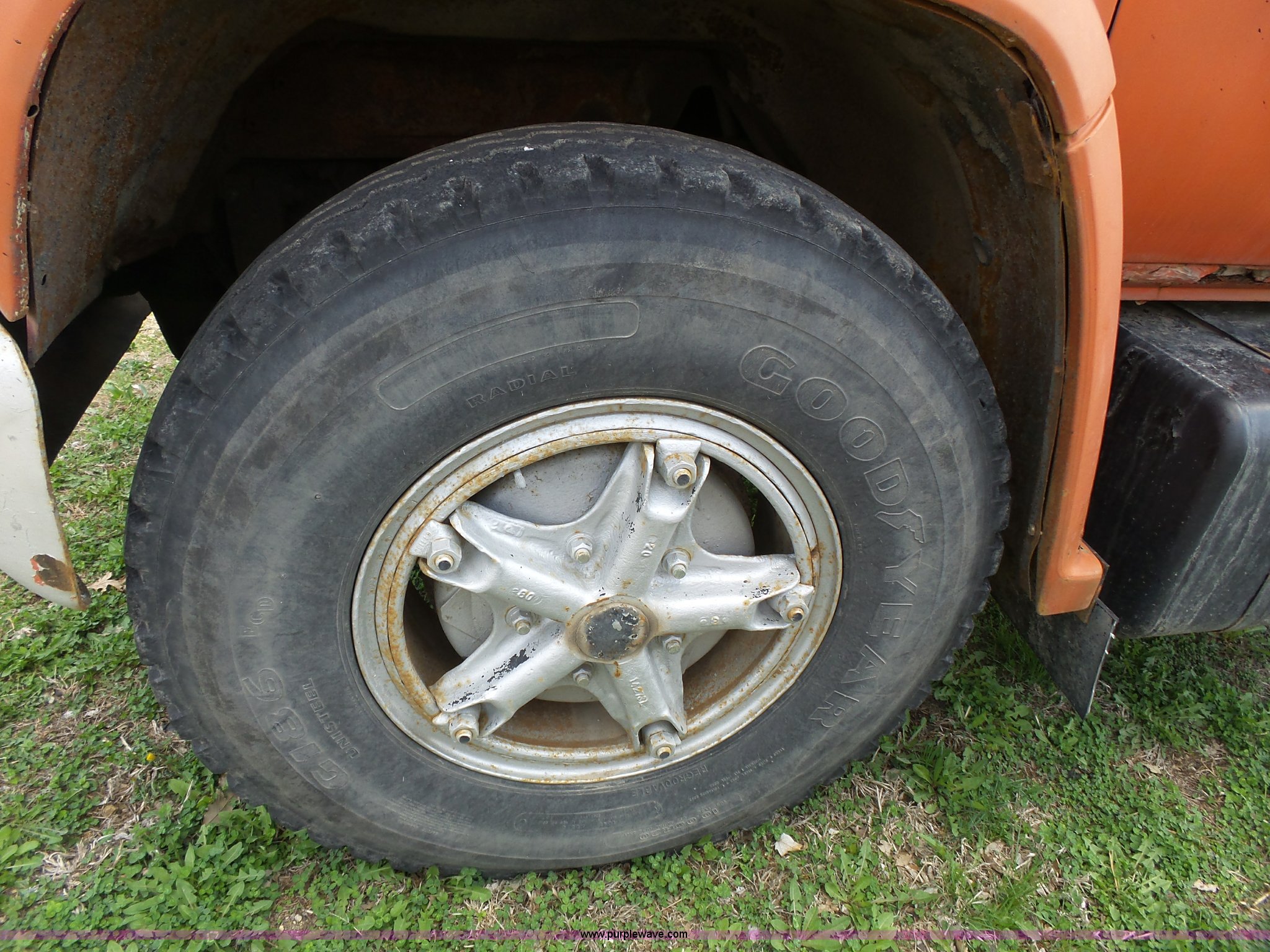 Purple Wave is selling a used Construction Dump Truck in Kansas. This item is a 1981 Chevrolet C60 dump truck with the following: 34,618 miles on odometer, Odometer inoperable, 5.7L V8 gas engine, Four speed manual transmission, Two speed rear end, Single axle, Heat, AM/FM/cassette, Front tow hooks, Chelsea PTO, Garwood GA-2 steel dump bed, 10'L x 7'W, 24" side height, 9" side board height, Four to five yard capacity, Manual end gate, Single ram hoist, Serial 0195047, Spring suspension, 151" wheelbase, 10.00R20 tires, GVWR 23,160 lbs, FAWR 7,000 lbs, RAWR 16,160 lbs, Interior/exterior cosmetic damage, Master cylinder/brake booster inoperable, Rust, Front leaf springs broken, Decals will be painted or removed, Exhaust leaks, Seat damage