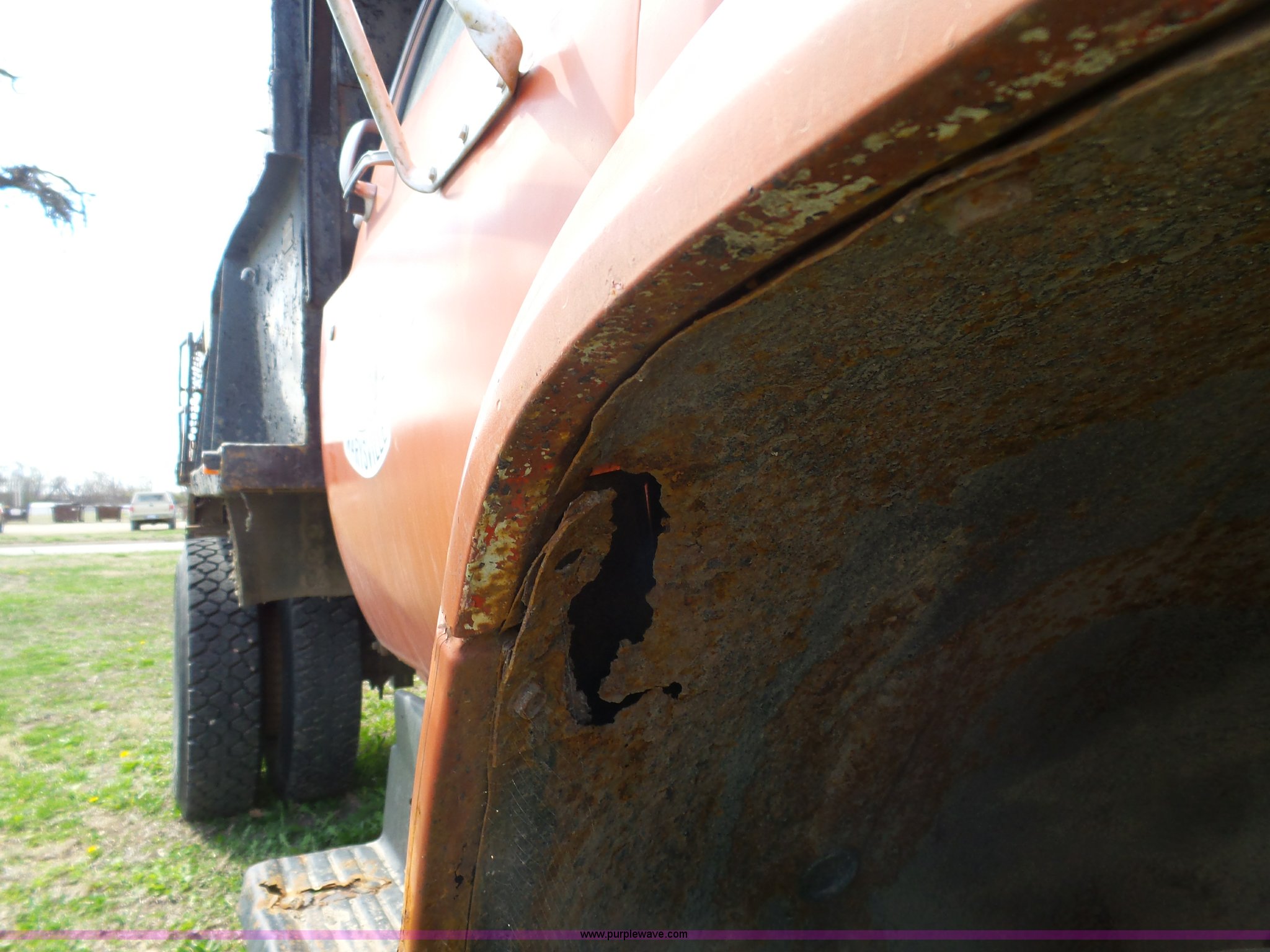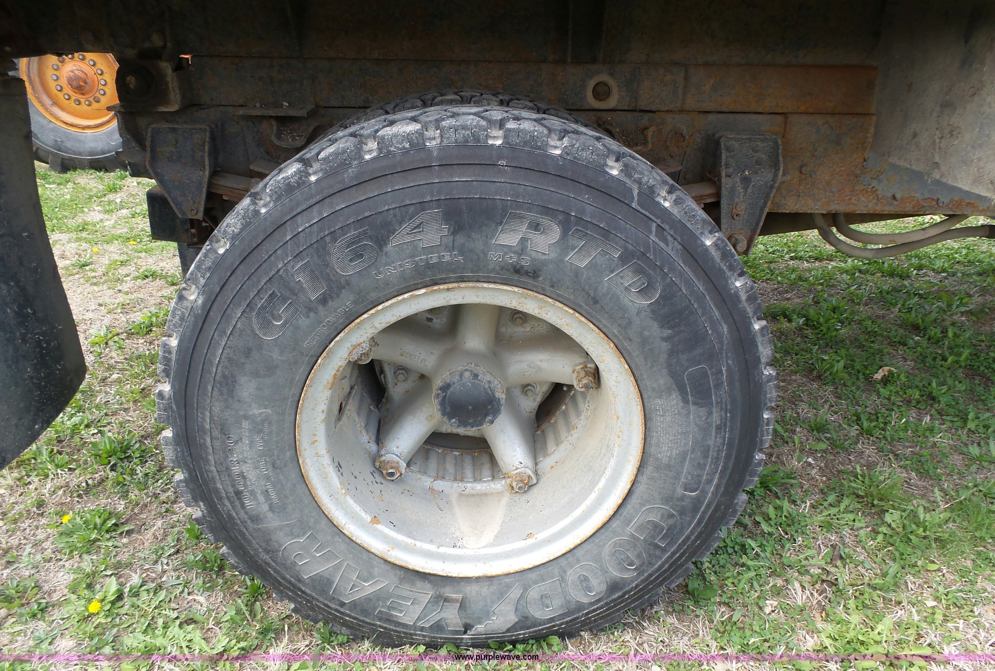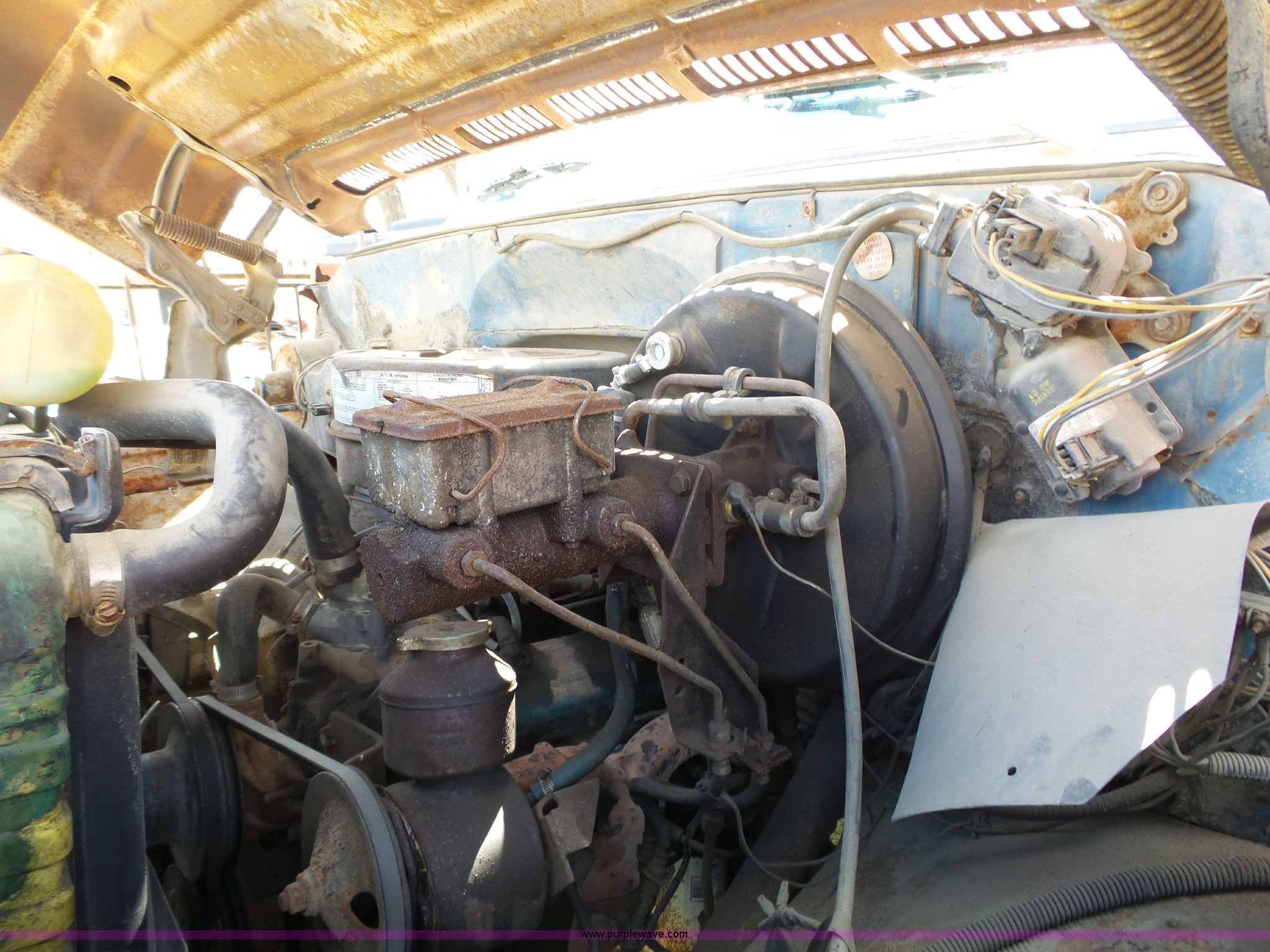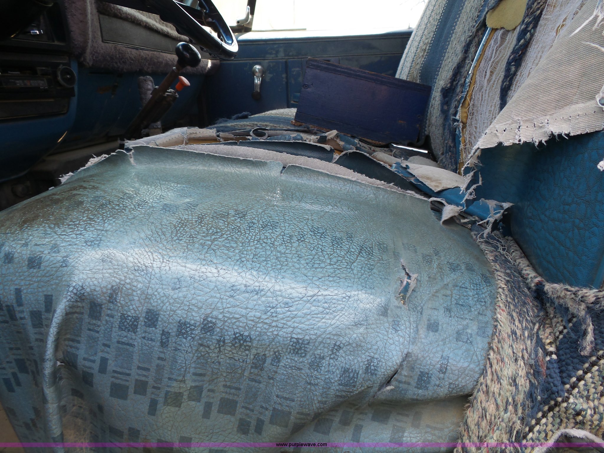 Purple Wave is selling a used Construction Dump Truck in Kansas. This item is a 1981 Chevrolet C60 dump truck with the following: 34,618 miles on odometer, Odometer inoperable, 5.7L V8 gas engine, Four speed manual transmission, Two speed rear end, Single axle, Heat, AM/FM/cassette, Front tow hooks, Chelsea PTO, Garwood GA-2 steel dump bed, 10'L x 7'W, 24" side height, 9" side board height, Four to five yard capacity, Manual end gate, Single ram hoist, Serial 0195047, Spring suspension, 151" wheelbase, 10.00R20 tires, GVWR 23,160 lbs, FAWR 7,000 lbs, RAWR 16,160 lbs, Interior/exterior cosmetic damage, Master cylinder/brake booster inoperable, Rust, Front leaf springs broken, Decals will be painted or removed, Exhaust leaks, Seat damage