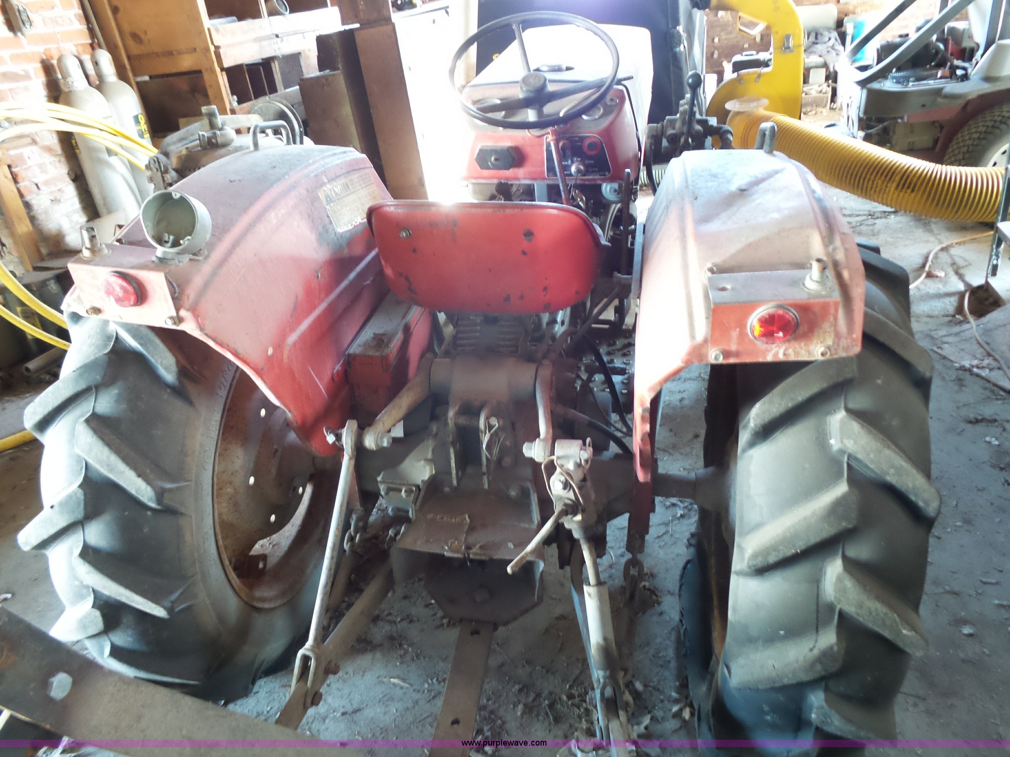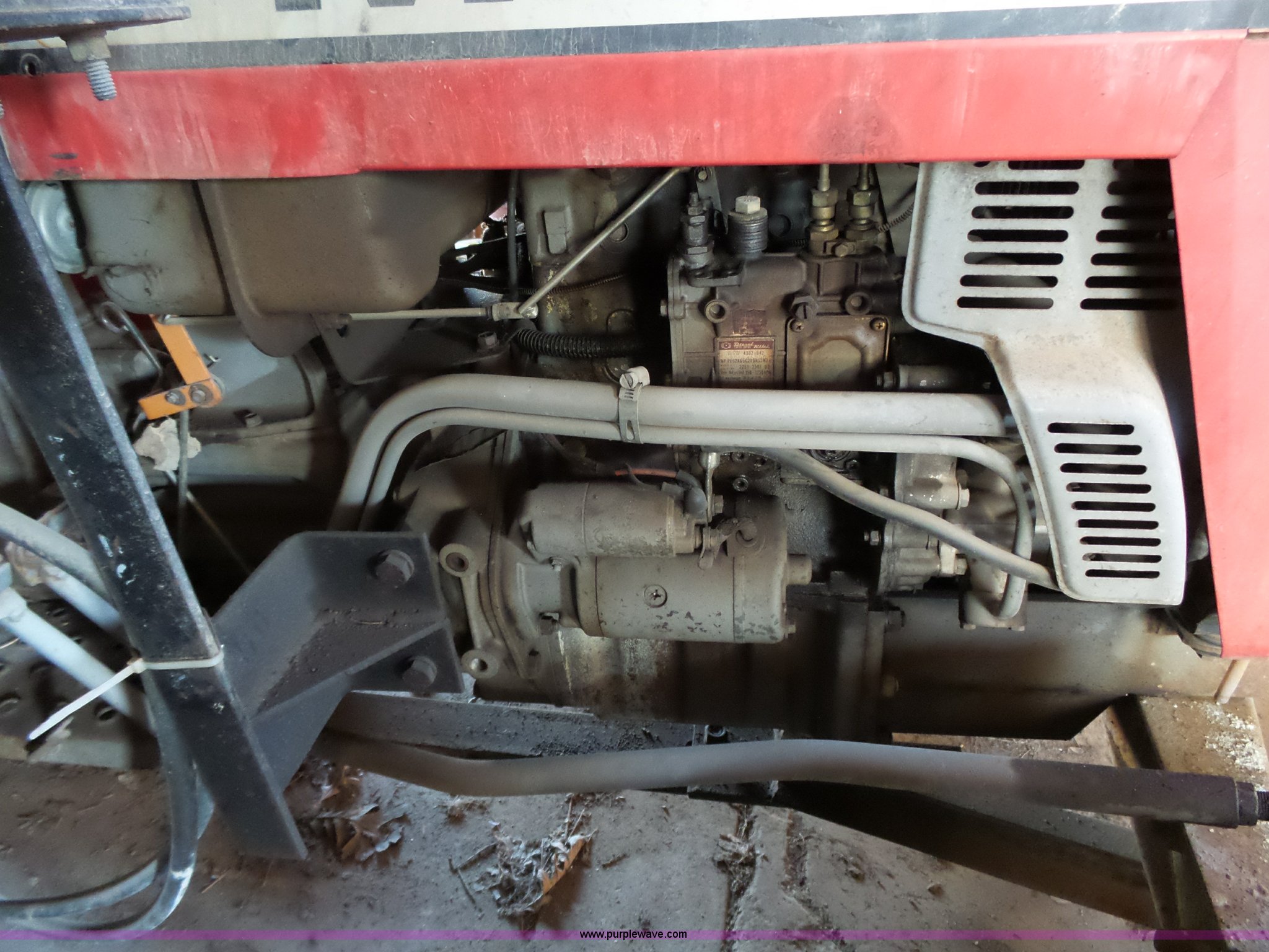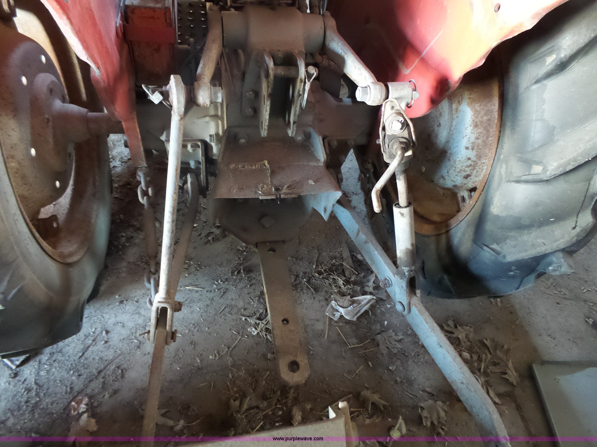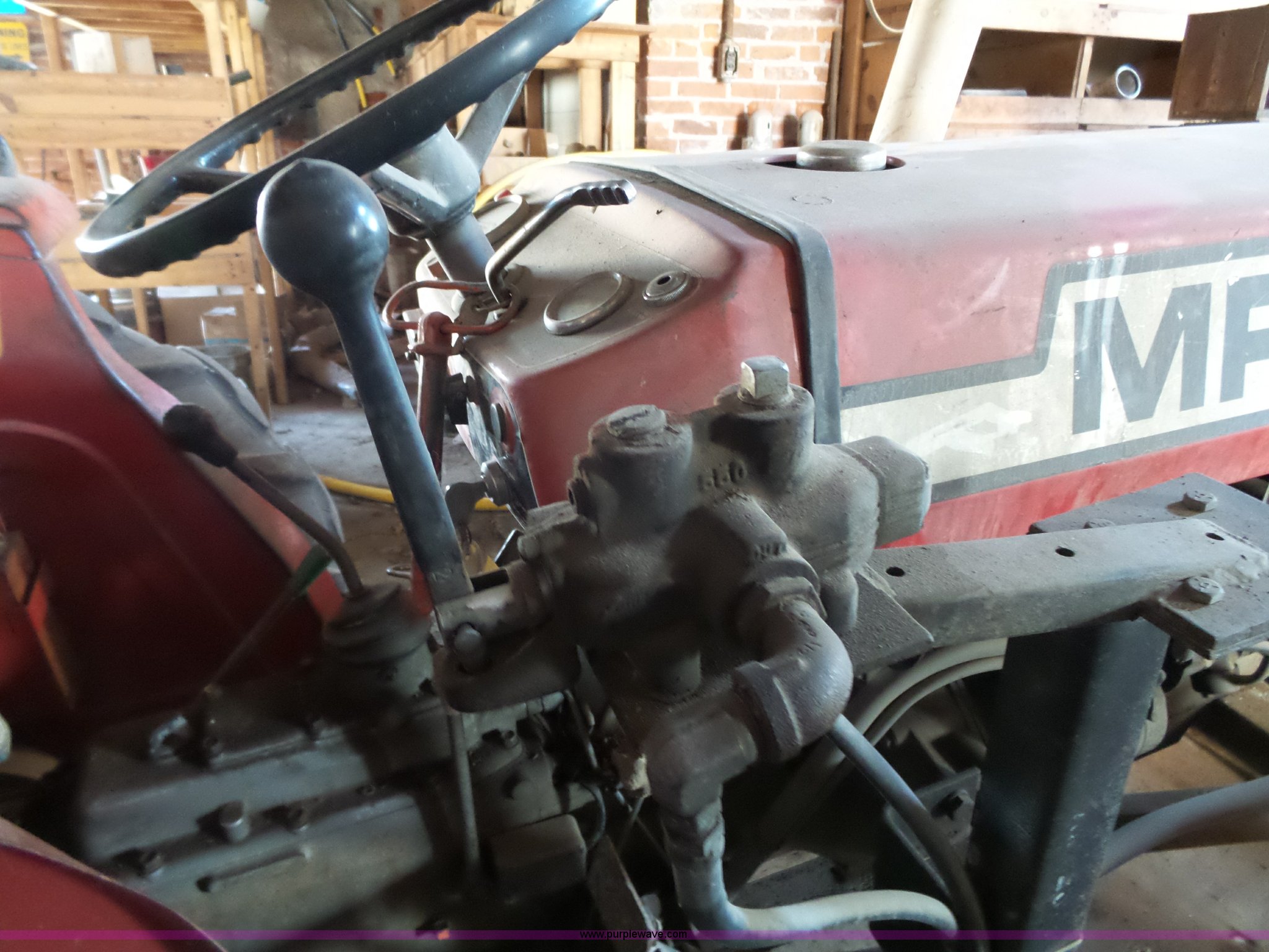 Purple Wave is selling a used Tractor in Kansas. This item is a Massey-Ferguson 210 Series 2746 tractor with the following: 3,530 hours on meter, Four cylinder diesel engine, Manual transmission, 5F-1R gears, Front work lights, Three point, 540 PTO, Draw bar, Titan 5.00-15 front tires, Bridgestone 11.2/10-24 rear tires, One tire flat, Wheel rusted, Seat cushion missing, Dead battery, Last used in fall 2015, Serial 01202