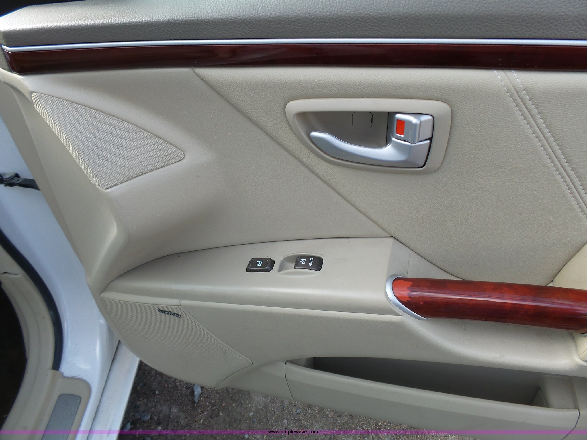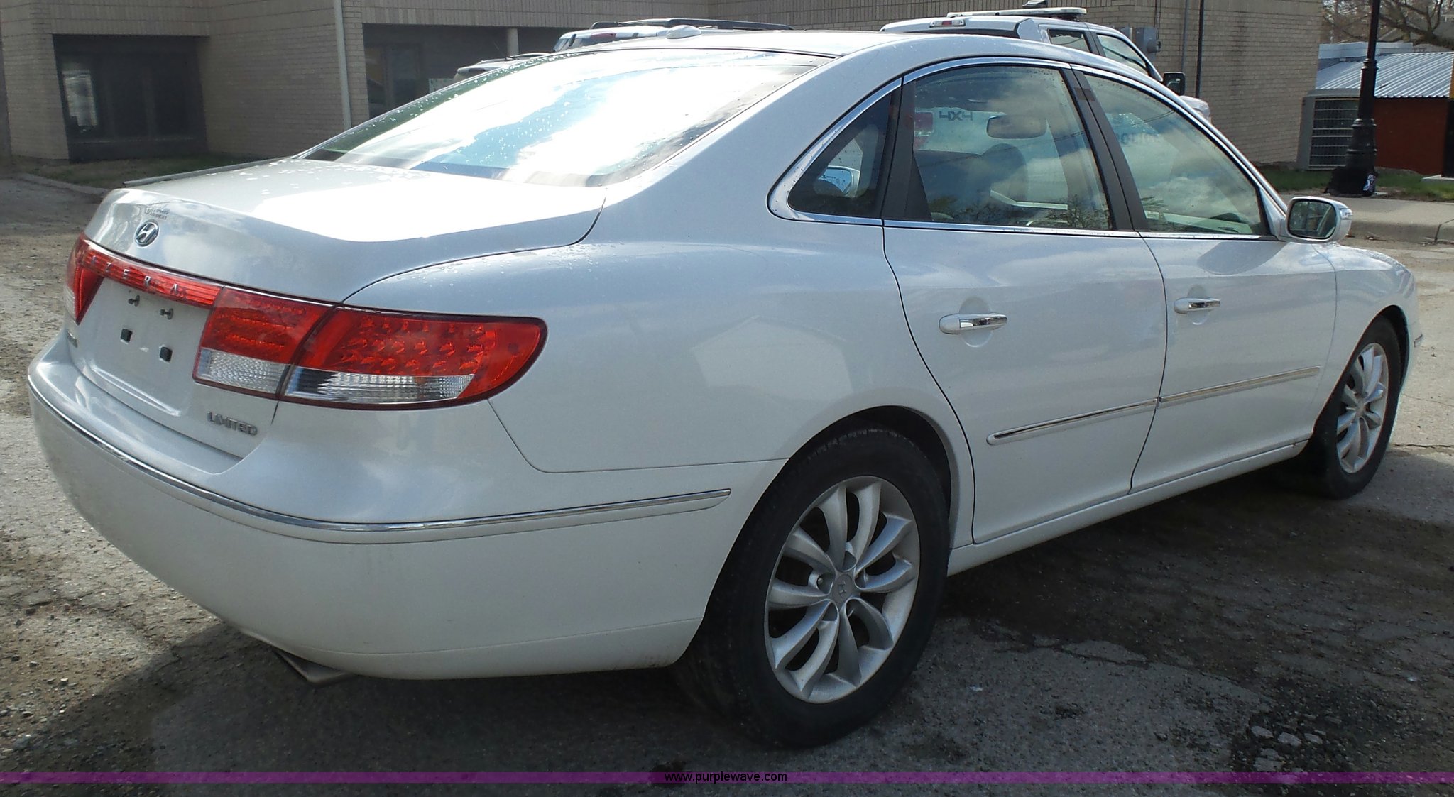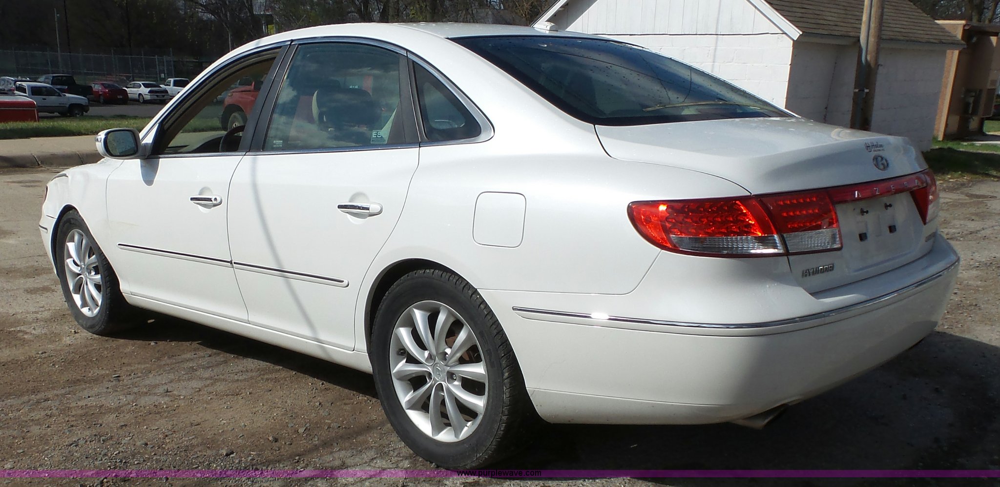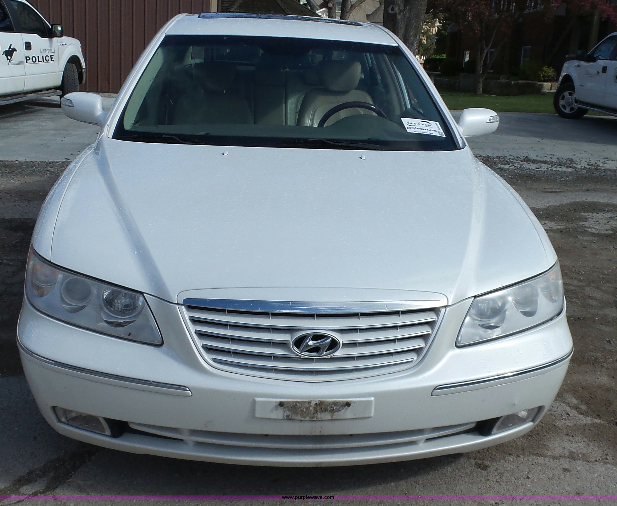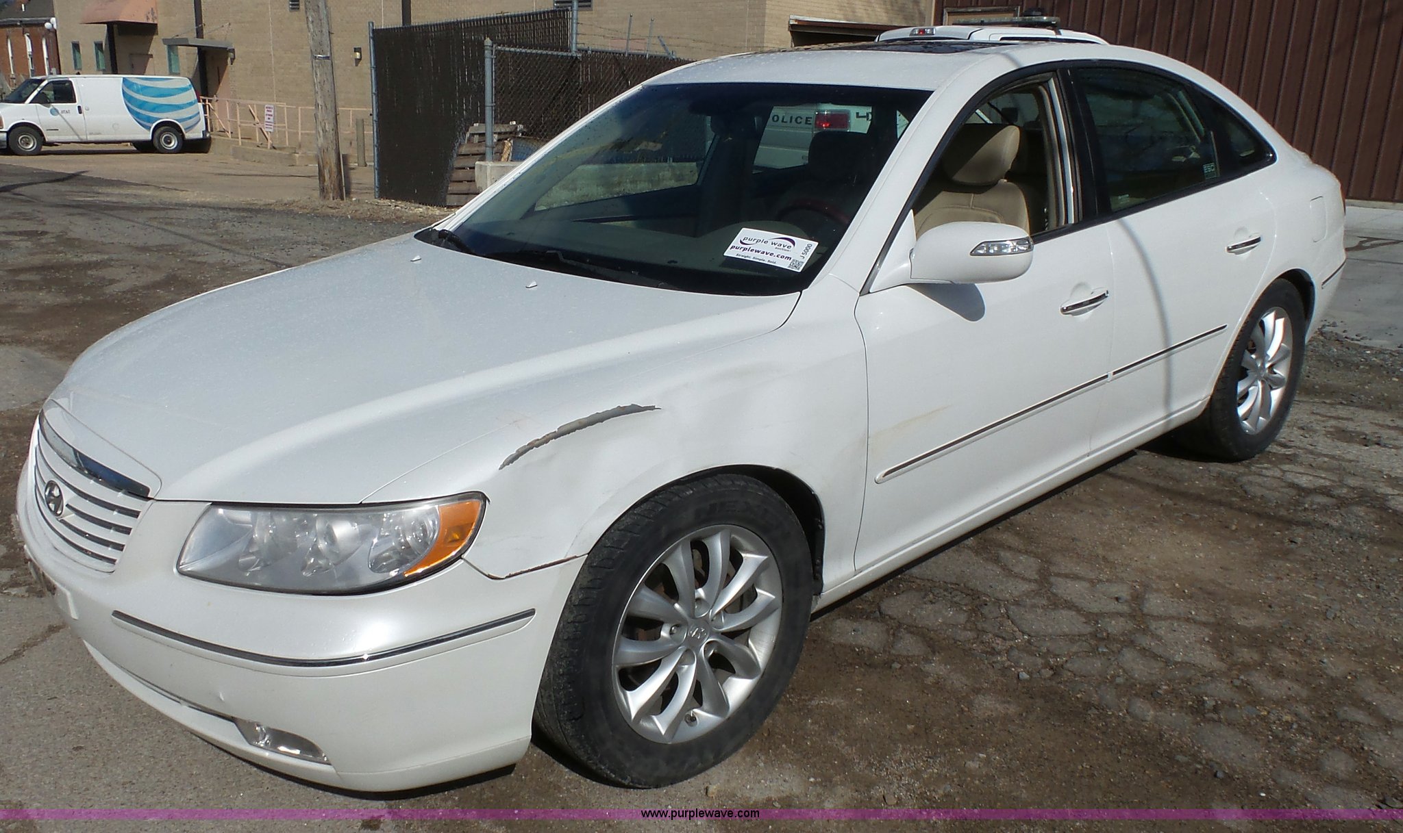 Purple Wave is selling a used Passenger Vehicle in Kansas. This item is a 2008 Hyundai Azera Limited with the following: 70,429 miles on odometer, 3.8L V6 DOHC 24V gas engine, Automatic transmission, AC and heat, Tilt, Cruise, AM/FM/CD, Power windows, locks, mirrors, and seats, Heated seats, Leather interior, Fog lights, Sunroof, 235/55R17 tires, Dead battery, Front fender damage