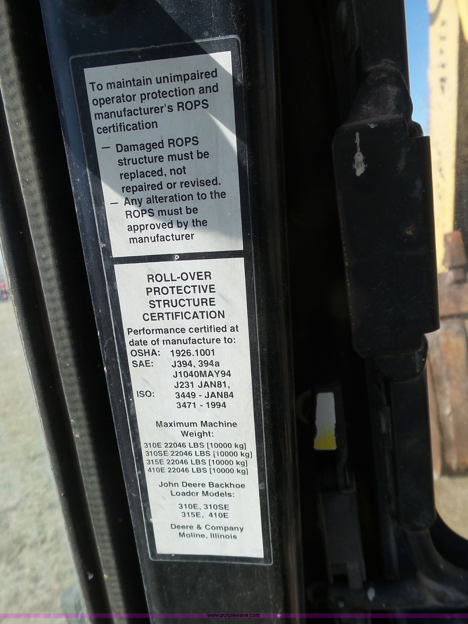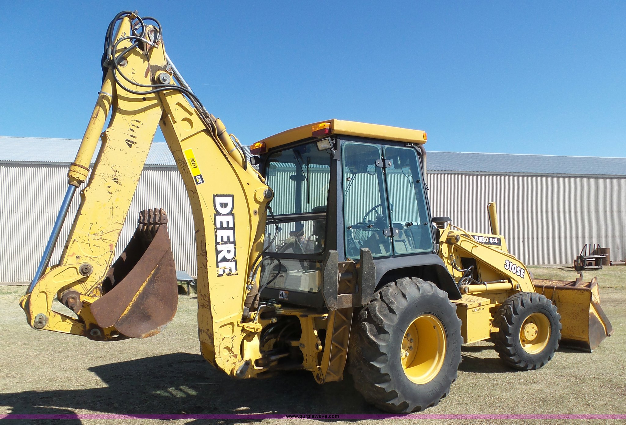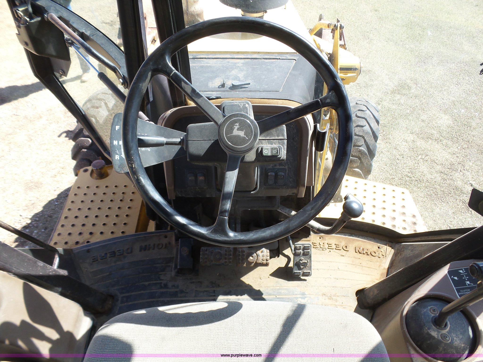 Purple Wave is selling a used Tractor Loader Backhoe in Kansas. This item is a 1998 John Deere 310SE backhoe with the following: 8,234 hours on meter, John Deere 4045TT050 4.5L four cylinder turbo diesel engine, Serial T04045T772646, Shuttle shift transmission, 4F-4R gears, Four wheel drive, EROPS, AC and heat, AM/FM, Suspension seat, Wobble stick backhoe controls, Front work lights, Wipers, John Deere AT174225 loader bucket, 92"W, Bolt-on cutting edge, 1.3 cu. yd. capacity, E-stick, John Deere backhoe bucket, 24"W, Weld-on cutting edge, (5) teeth, 7.5 cu. ft. capacity, Front couterweights, 12.5/80-18 front tires, 19.5L-24 rear tires, 14,790 lbs. base operating weight, Interior/exterior cosmetic damage, Oil leaks, Serial T0310SE848835