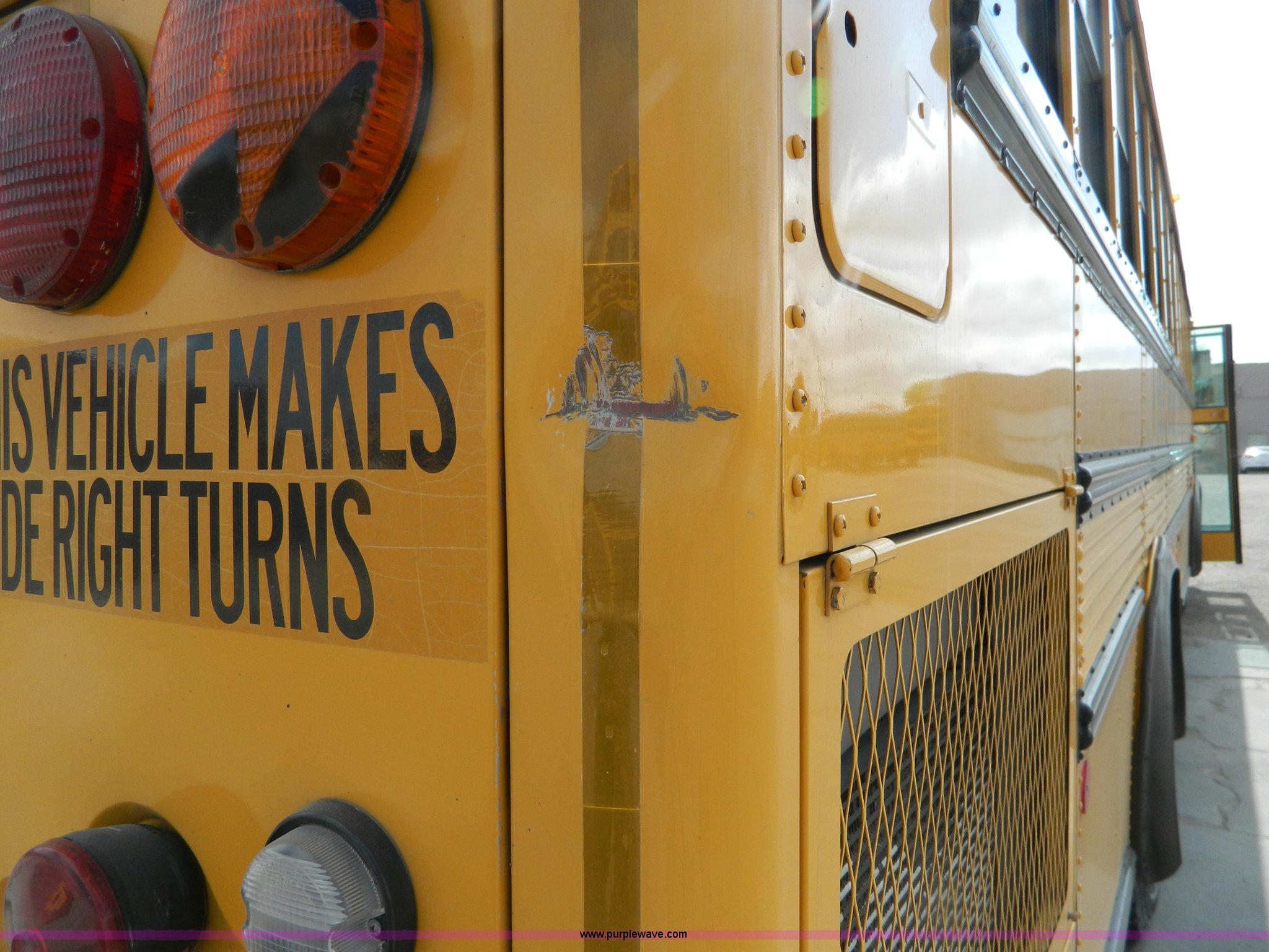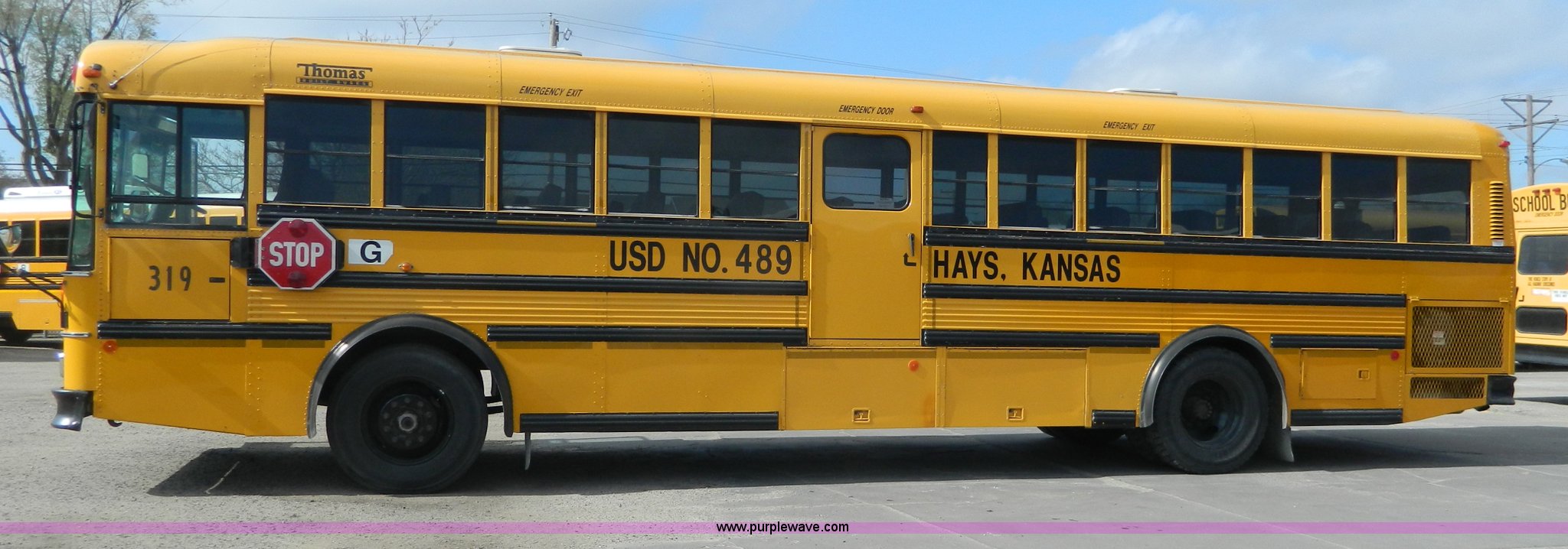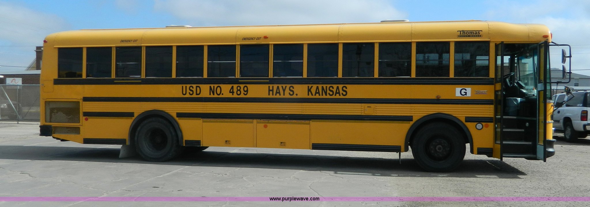 Purple Wave is selling a used Bus in Kansas. This item is a 1996 Thomas Built Saf-T-Liner ER school bus with the following: 240,883 miles on odometer, 9,496 hours on meter, Miles and hours may vary, still in use, Cummins 5.9L diesel engine, Automatic transmission, Heat, AM/FM/cassette, 69 passenger capacity, Spring suspension, Air brakes, 11R22.5 tires, GVWR 30,000 lbs, Cameras and contents not included, Rear brakes need to be replaced