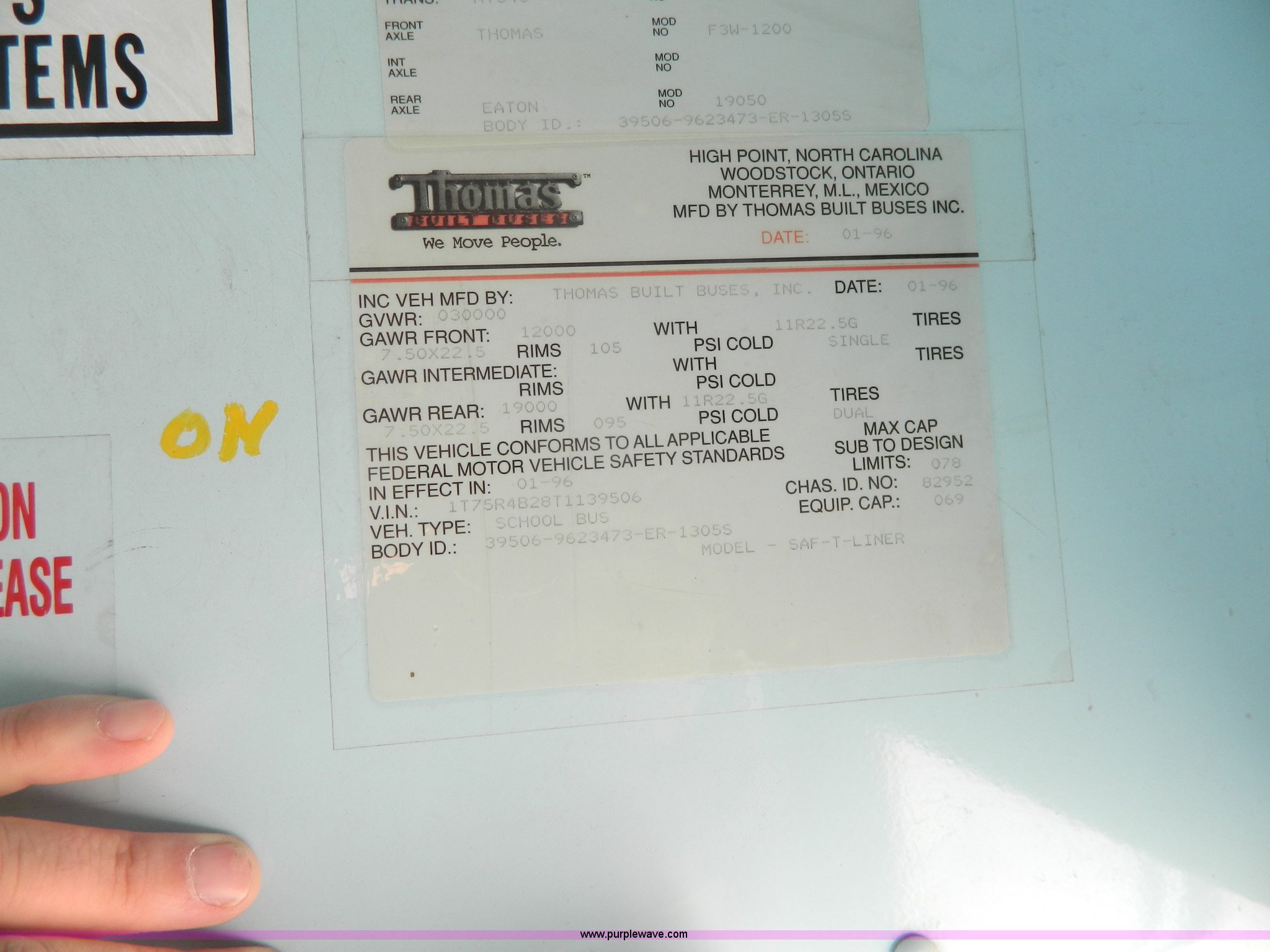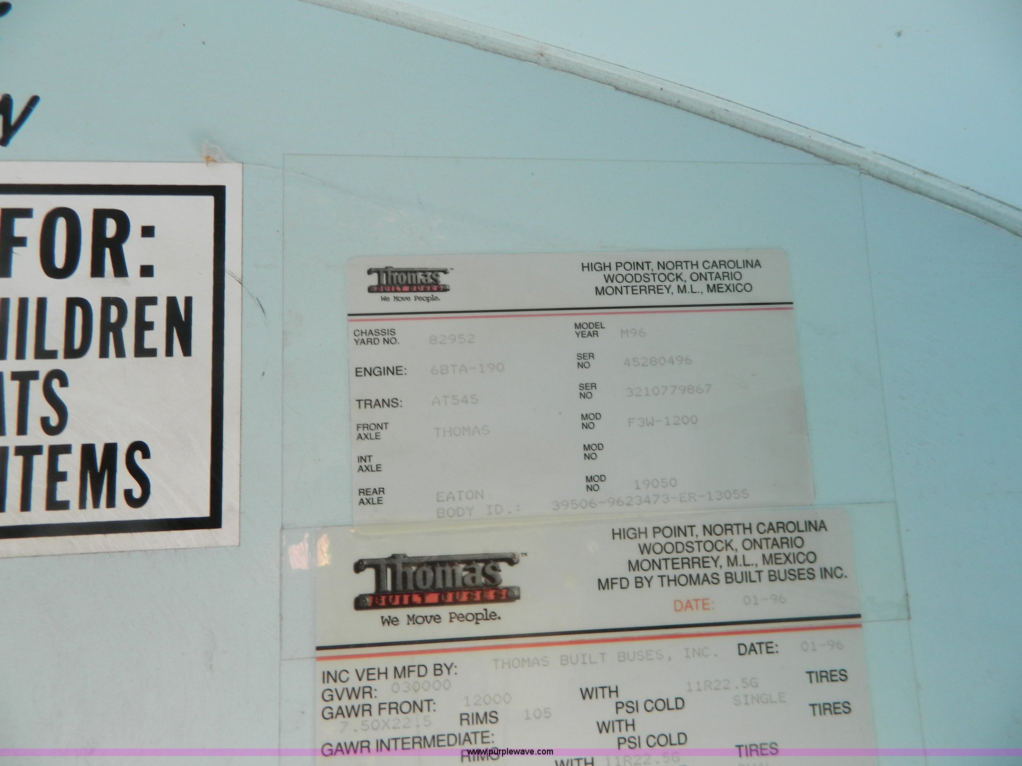 Take a look at this used 1996 Thomas Built Saf-T-Liner ER school bus being sold on May 3rd, 2016 in the SOLD! May 3 Government Auction made by Thomas Built. Take a look at all of the item information below or take a look at similar auctions for Transit Vehicles.