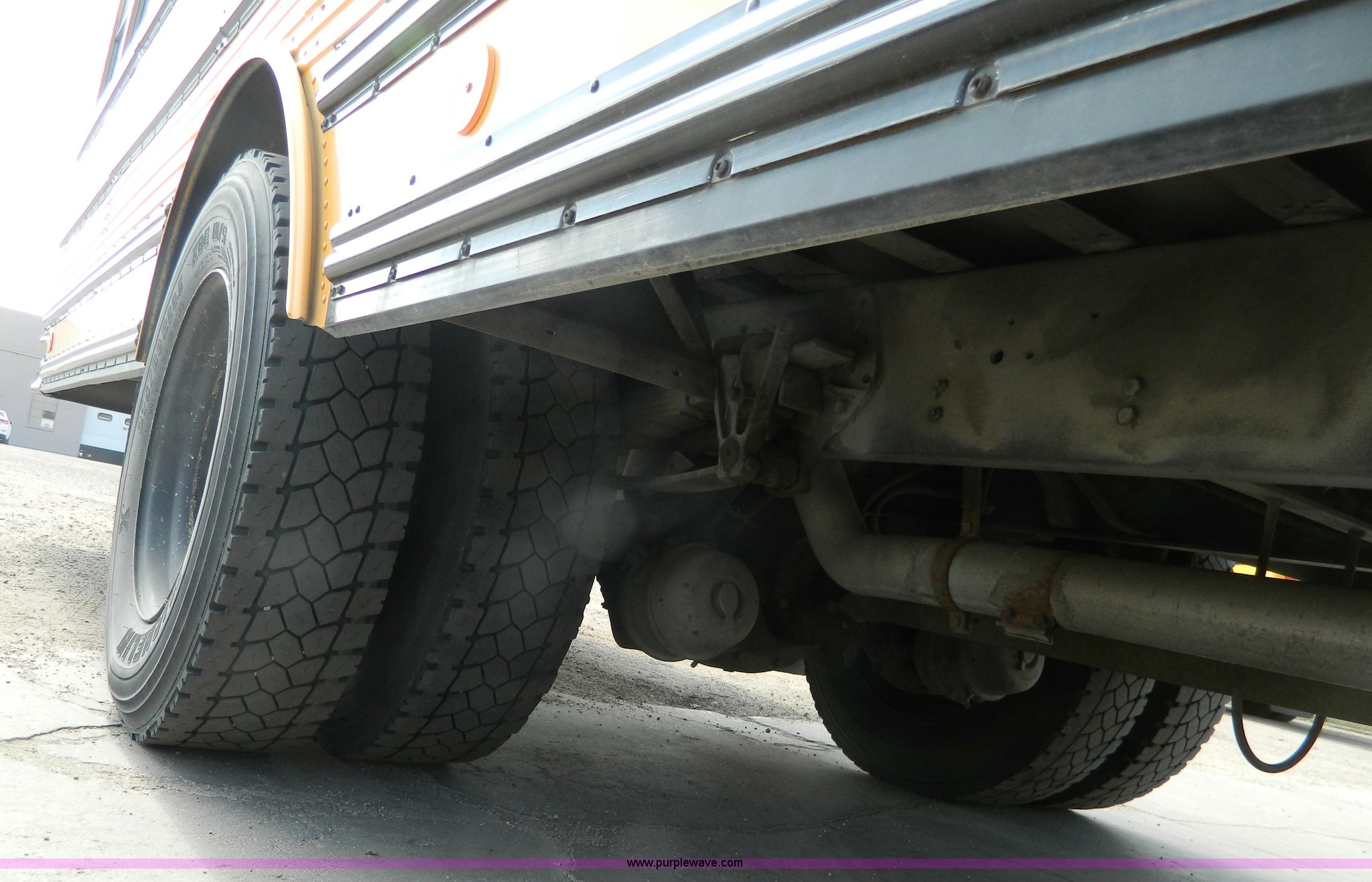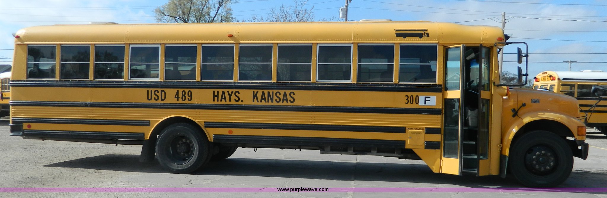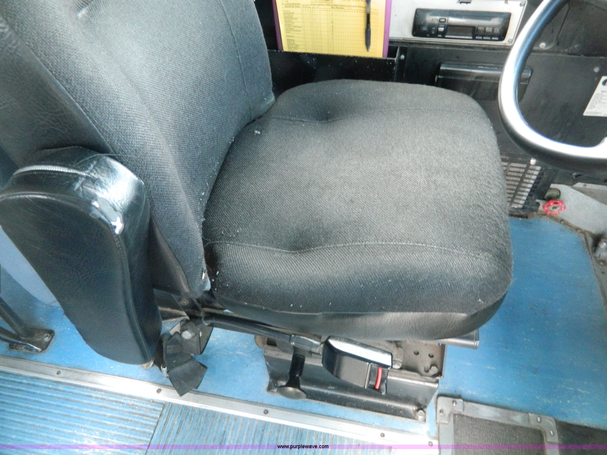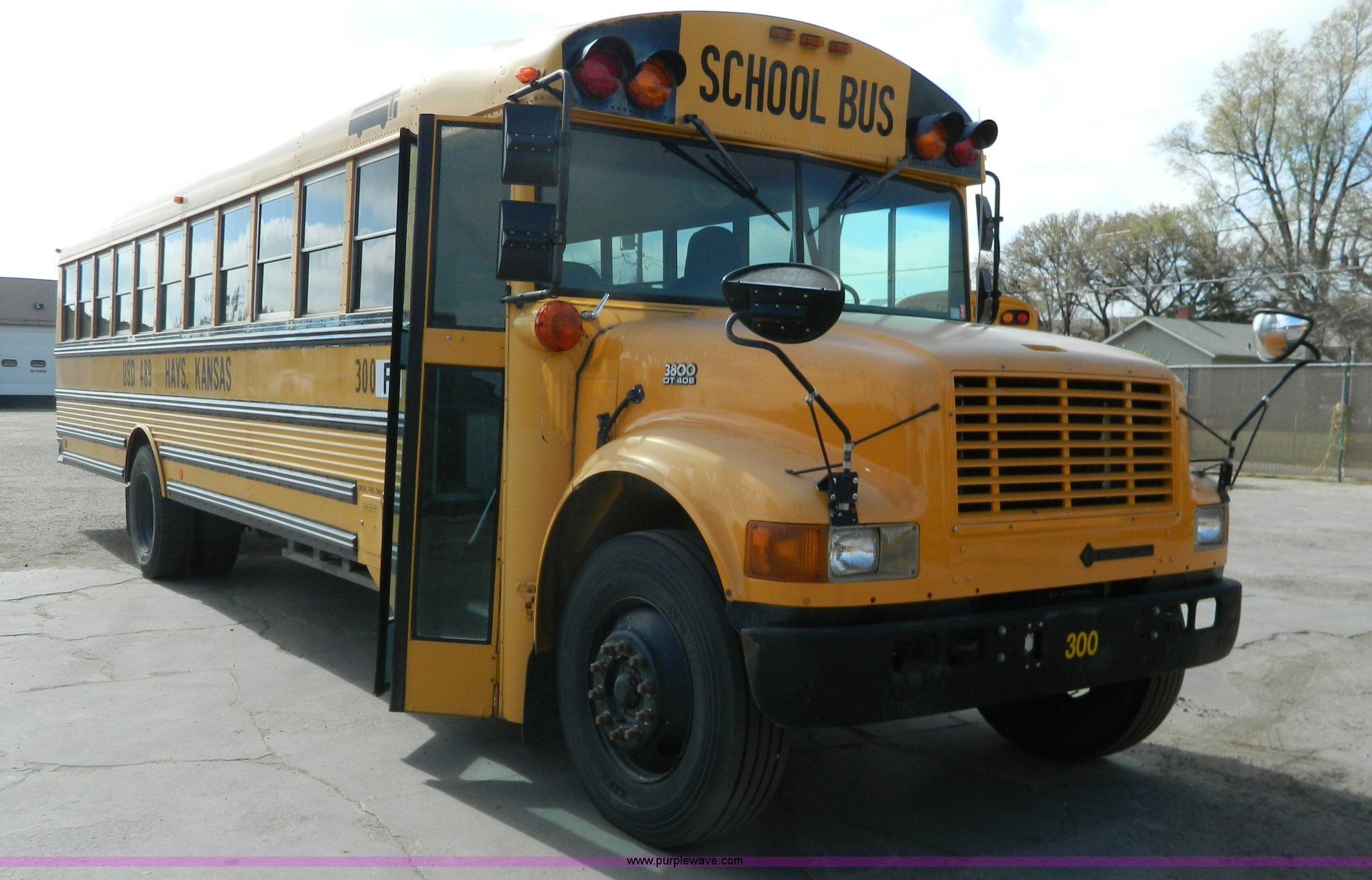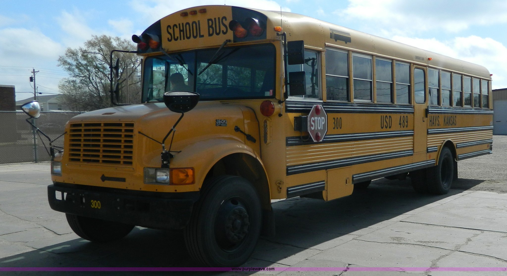 Purple Wave is selling a used Bus in Kansas. This item is a 1994 International 3800 school bus with the following: 191,160 miles on odometer, Miles may vary, still in use, International DT408 6.7L L6 diesel engine, Automatic transmission, Heat, AM/FM/cassette, 62 passenger capacity, Spring suspension, Air brakes, 275/80R22.5 tires, GVWR 29,960 lbs, Cameras and contents not included