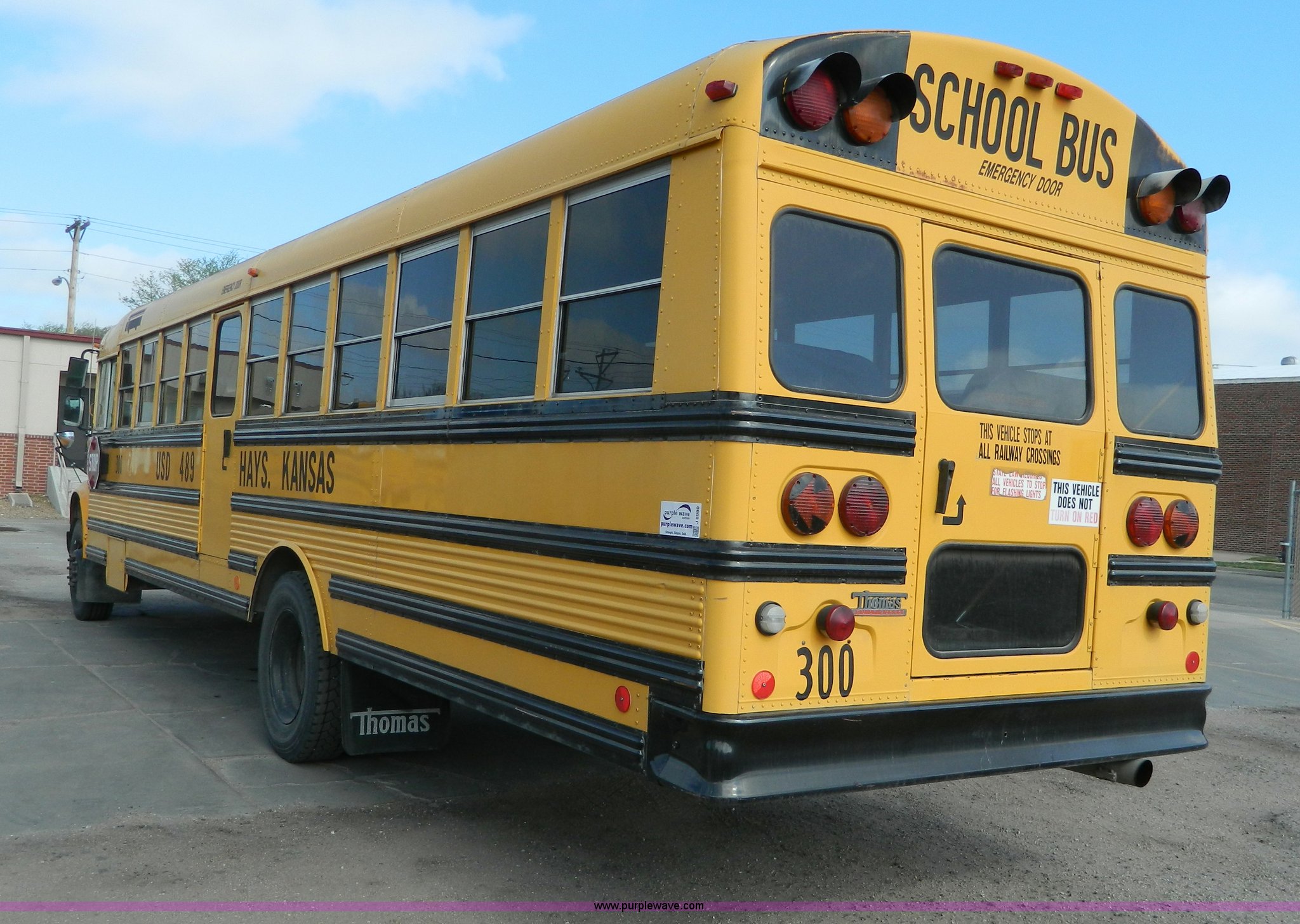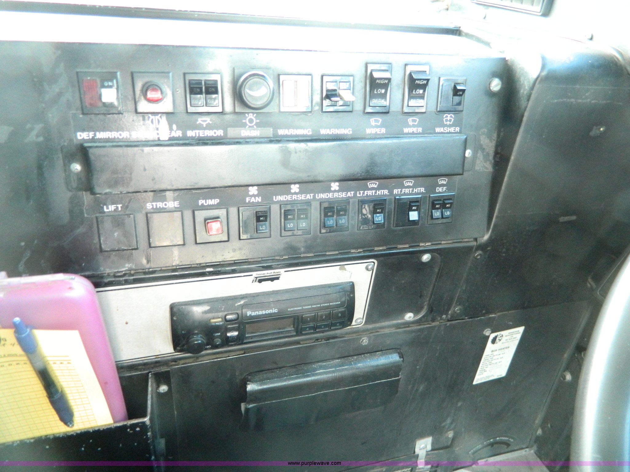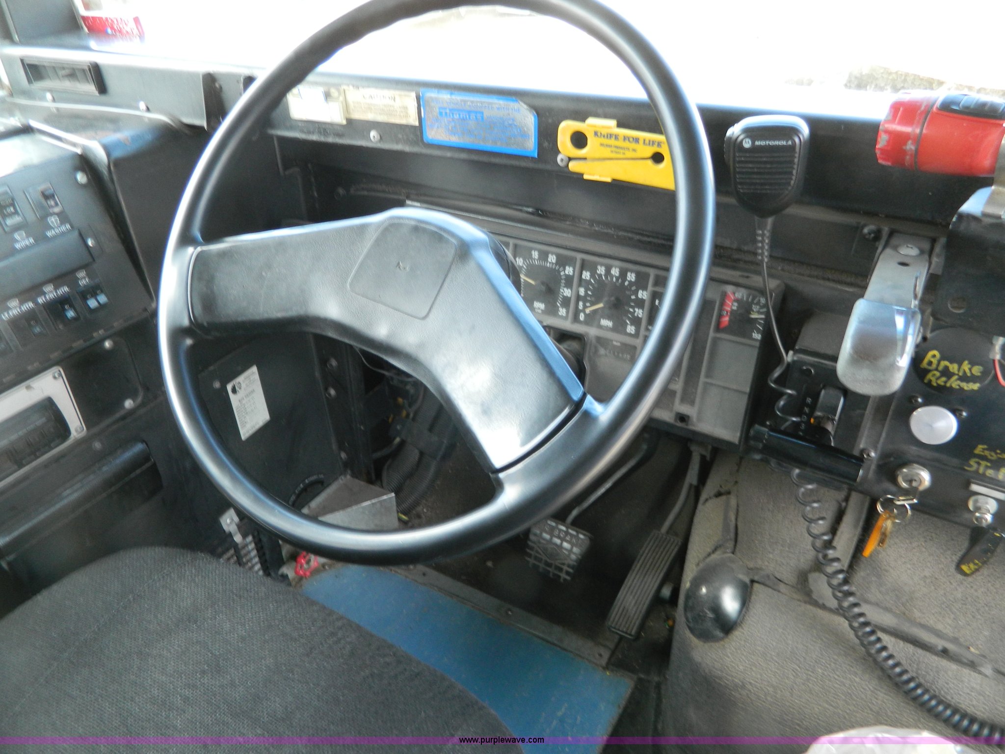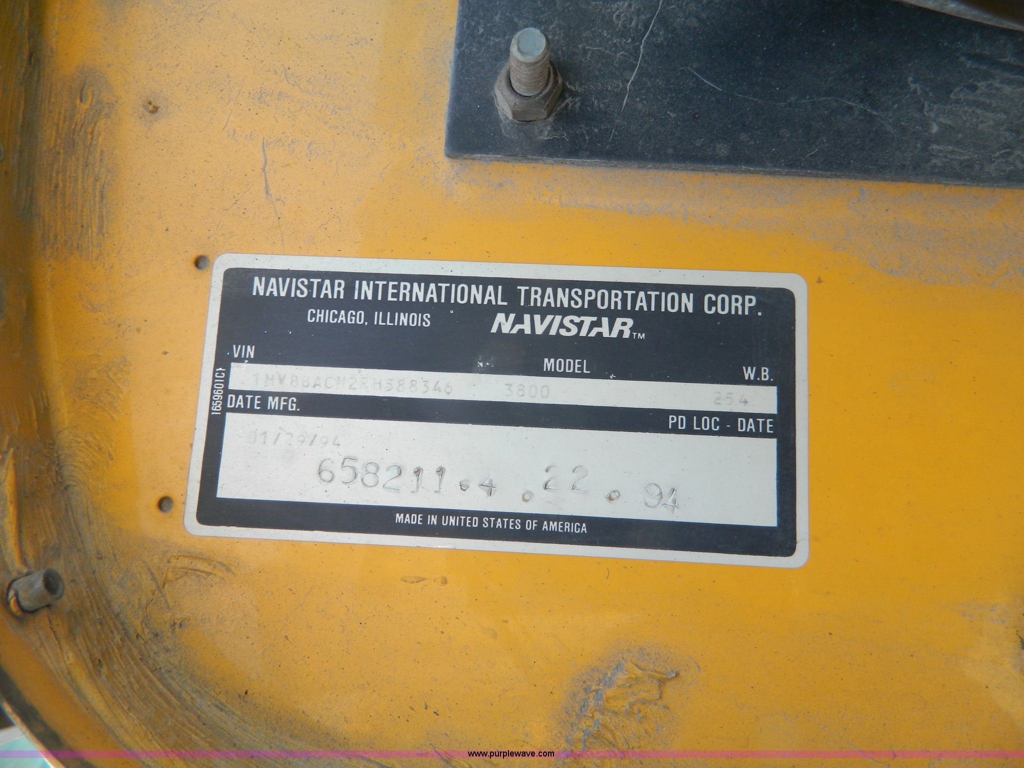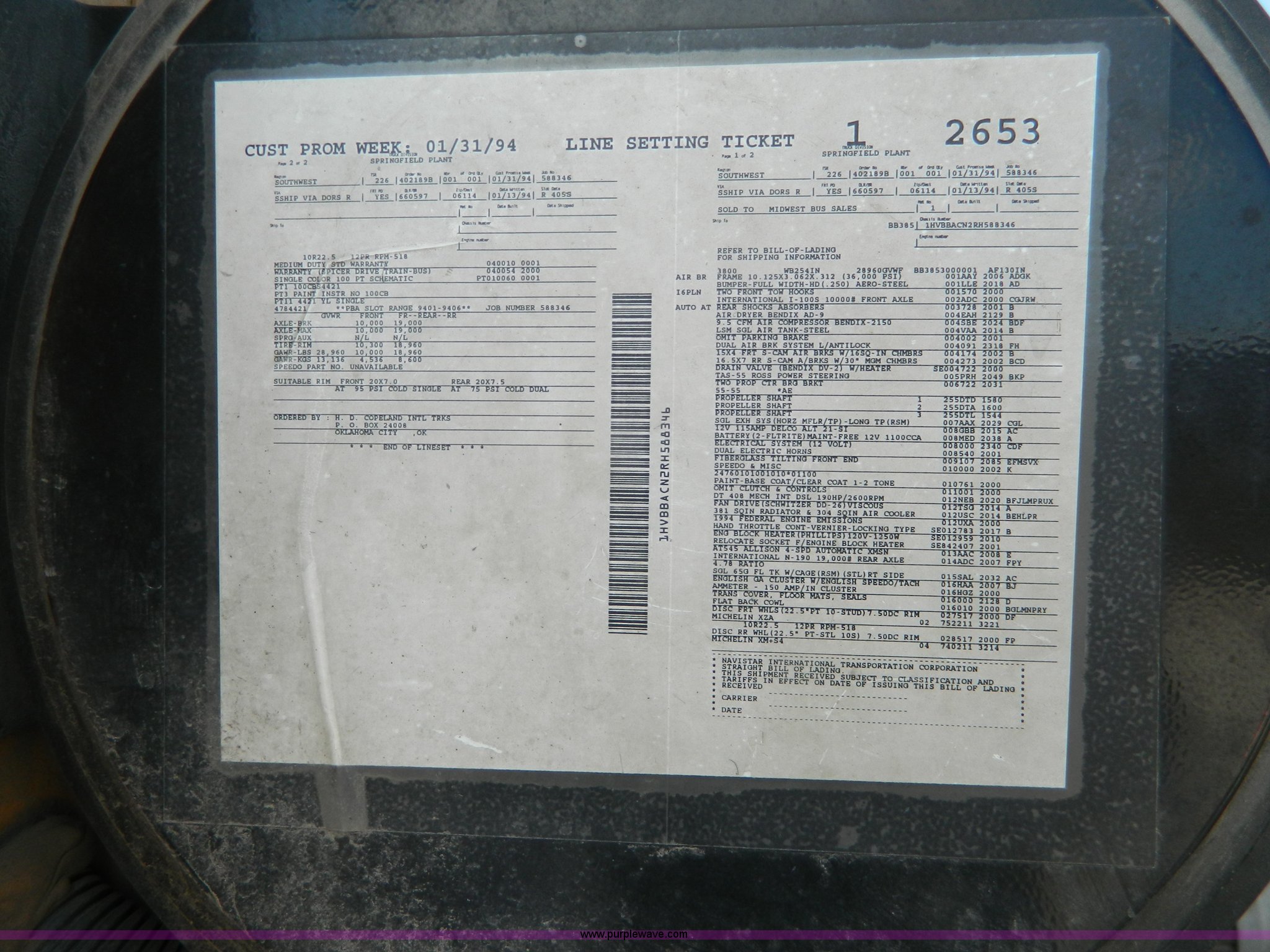 Purple Wave is selling a used Bus in Kansas. This item is a 1994 International 3800 school bus with the following: 191,160 miles on odometer, Miles may vary, still in use, International DT408 6.7L L6 diesel engine, Automatic transmission, Heat, AM/FM/cassette, 62 passenger capacity, Spring suspension, Air brakes, 275/80R22.5 tires, GVWR 29,960 lbs, Cameras and contents not included