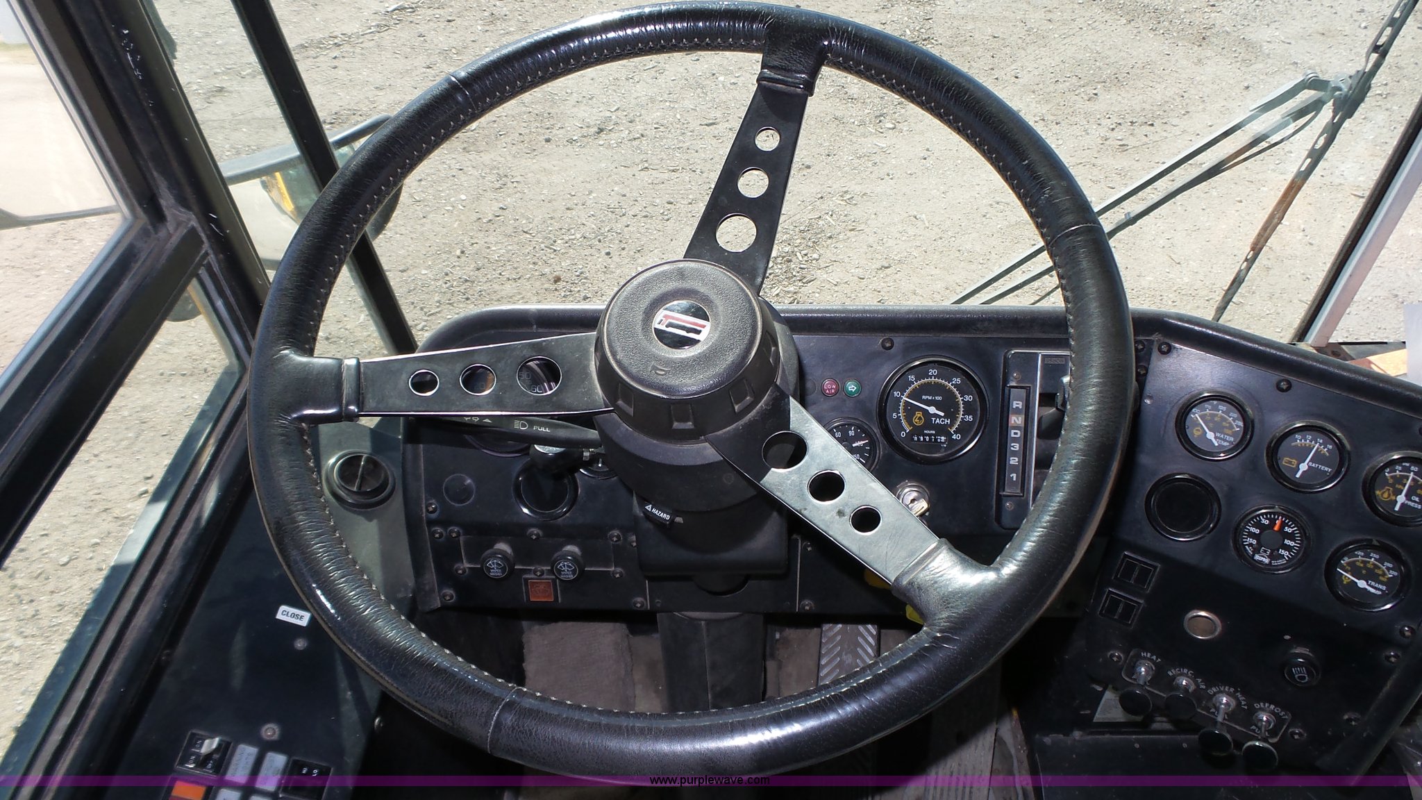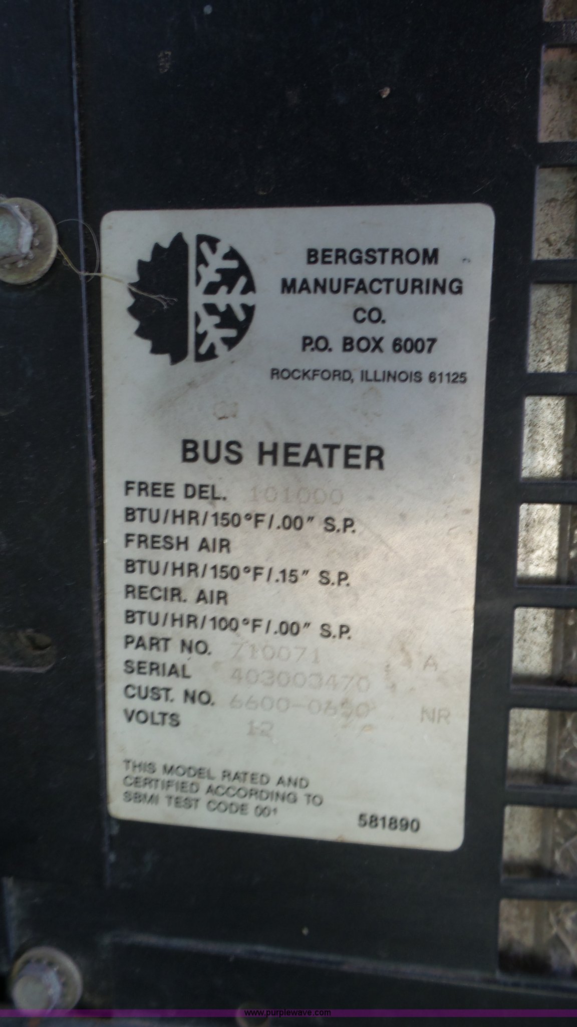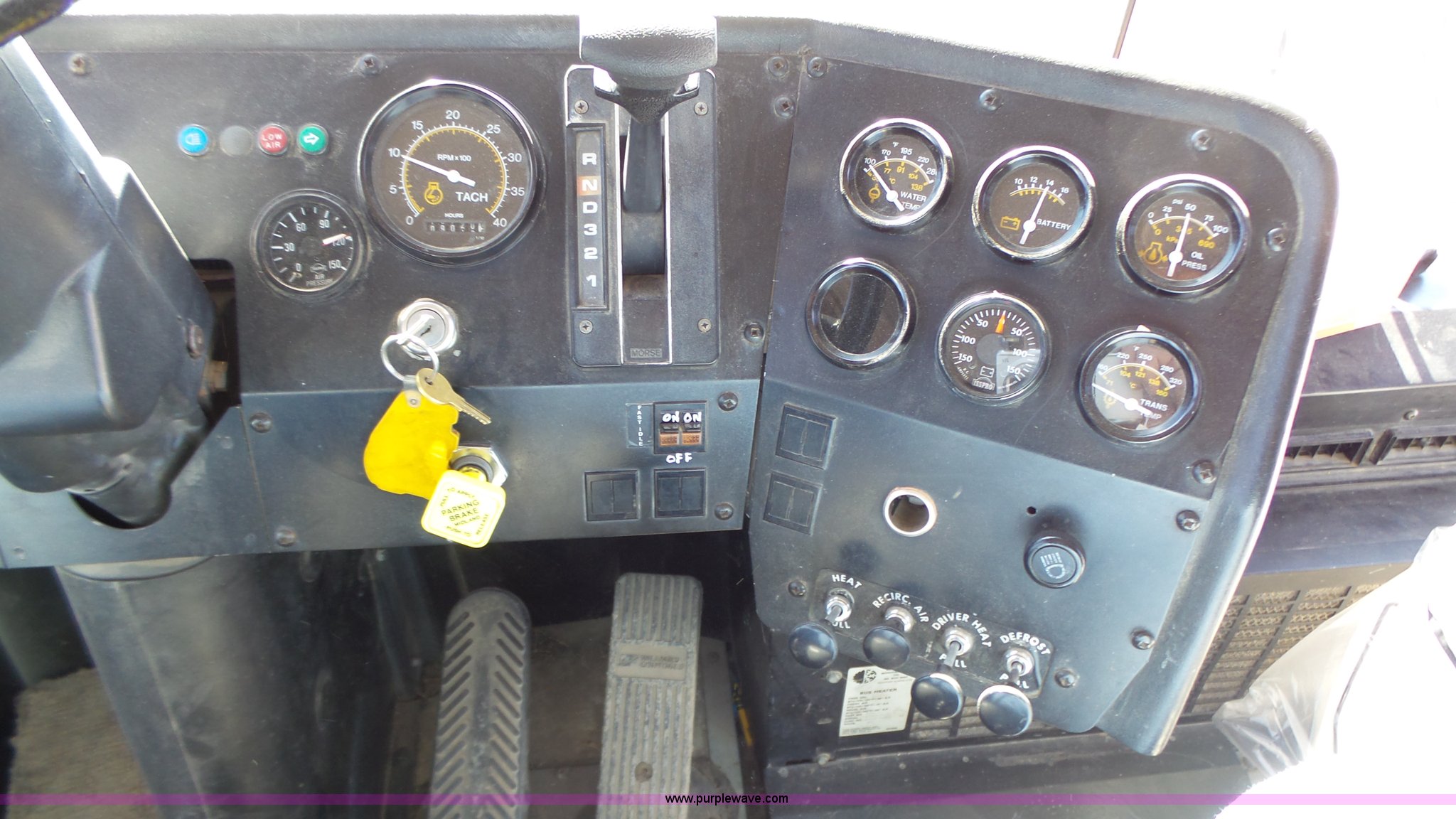 1995 Thomas Built Saf-T-Liner MVP school bus. 259,716 miles on odometer 9,020 hours on meter, Miles and hours may vary, sill in use, Caterpillar 6BTA-210 six cylinder turbo diesel engine, Automatic transmission Model MT643, Single axle, Heat, AM/FM/cassette, Heated mirrors, Air suspension seat, Overhead storage, 66 passenger capacity, Ceiling, rear, and side emergency egress, Beacon light, Stop sign, Radio Engineering Industries radio, microphone, and speakers, Block heater, First aid kits, Eaton body Serial 24769-9408777-ER-1309S, Underside luggage storage, Air brakes, Goodyear 11R22.5 tires, GVWR 30,000 lbs, FAWR 12,000 lbs, RAWR 20,000 lbs, Chassis# 81913, Unit# 95. Nebraska title. 1T79R4B29S1124769. Holdrege Community Schools. 505 14th Ave. Holdrege, NE 68949