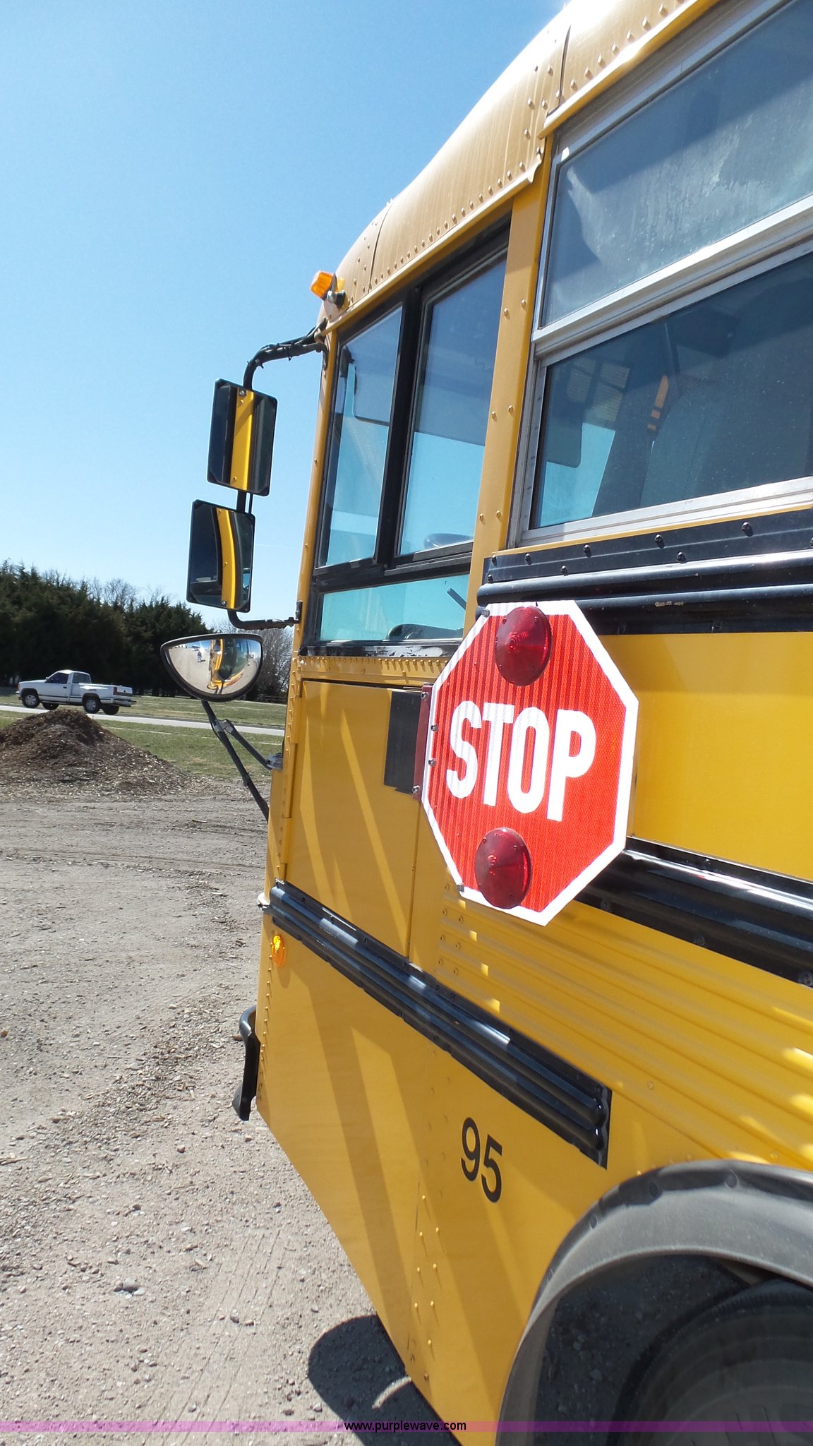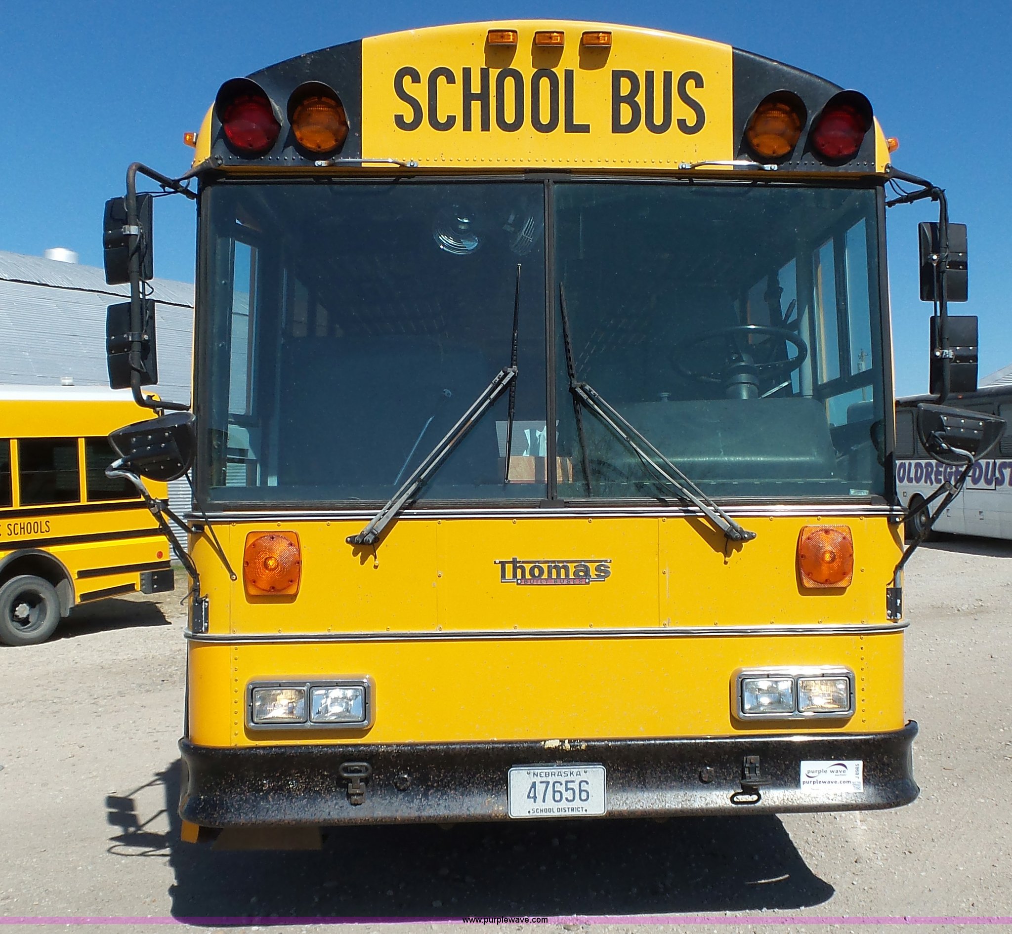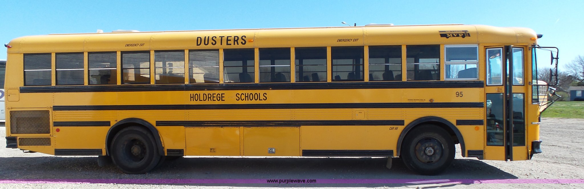 Purple Wave is selling a used Bus in Nebraska. This item is a 1995 Thomas Built Saf-T-Liner MVP school bus with the following: 259,716 miles on odometer, 9,020 hours on meter, Miles and hours may vary, sill in use, Caterpillar 6BTA-210 six cylinder turbo diesel engine, Automatic transmission, Model MT643, Single axle, Heat, AM/FM/cassette, Heated mirrors, Air suspension seat, Overhead storage, 66 passenger capacity, Ceiling, rear, and side emergency egress, Beacon light, Stop sign, Radio Engineering Industries radio, microphone, and speakers, Block heater, First aid kits, Eaton body, Serial 24769-9408777-ER-1309S, Underside luggage storage, Air brakes, Goodyear 11R22.5 tires, GVWR 30,000 lbs, FAWR 12,000 lbs, RAWR 20,000 lbs, Chassis# 81913, Unit# 95