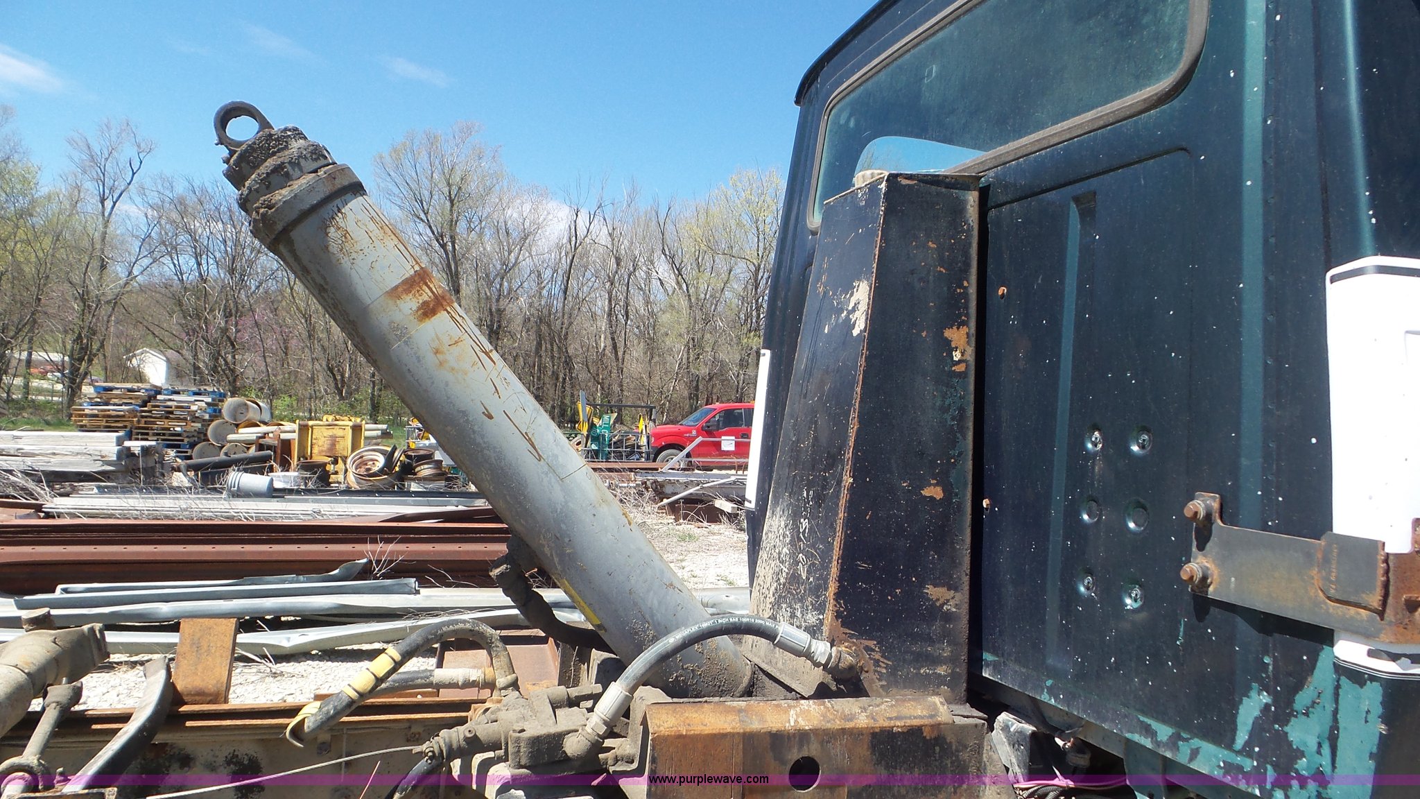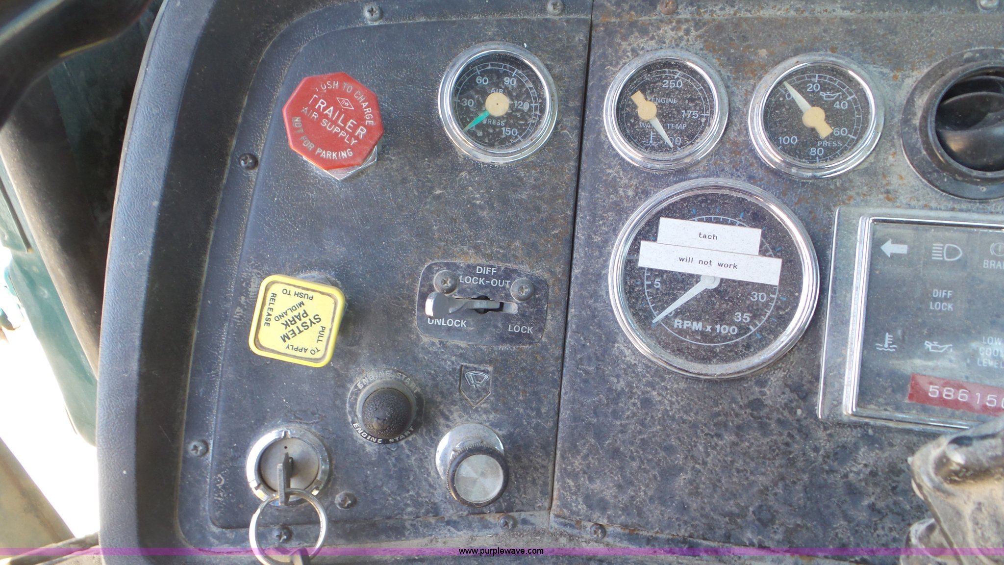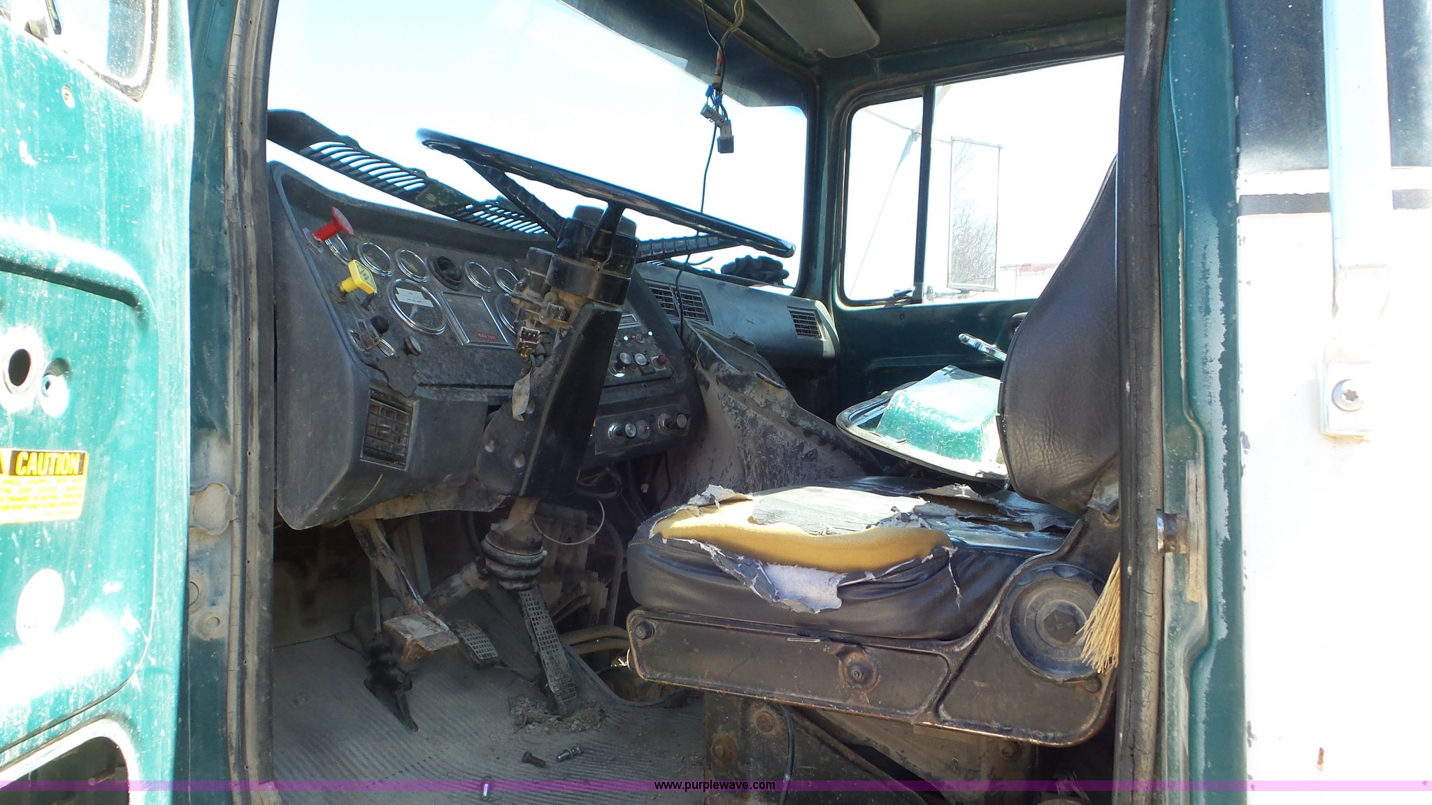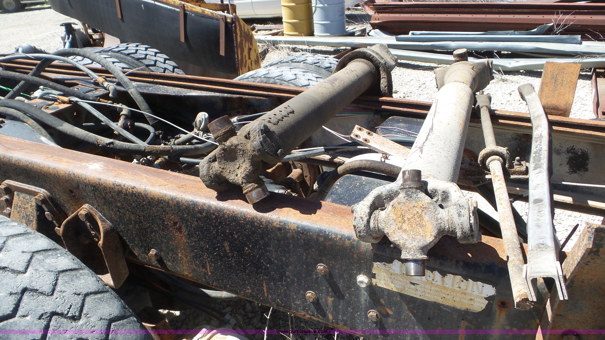 Purple Wave is selling a used Truck Chassis in Kansas. This item is a 1989 Ford LTL9000 truck cab and chassis with the following: 585,457 miles on odometer, Cummins NCT-315 six cylinder diesel engine, Eaton Fuller 13 speed manual transmission, Tandem axle, Heat, Air suspension seat, PTO, Exterior visor, Single exhaust stack, Single ram hoist, Dual fuel tanks, Spring over walking beam suspension, Air brakes, 214" wheelbase, 11R22.5 tires, GVWR 53,100 lbs, Transmission housing cracked, Frame cracked