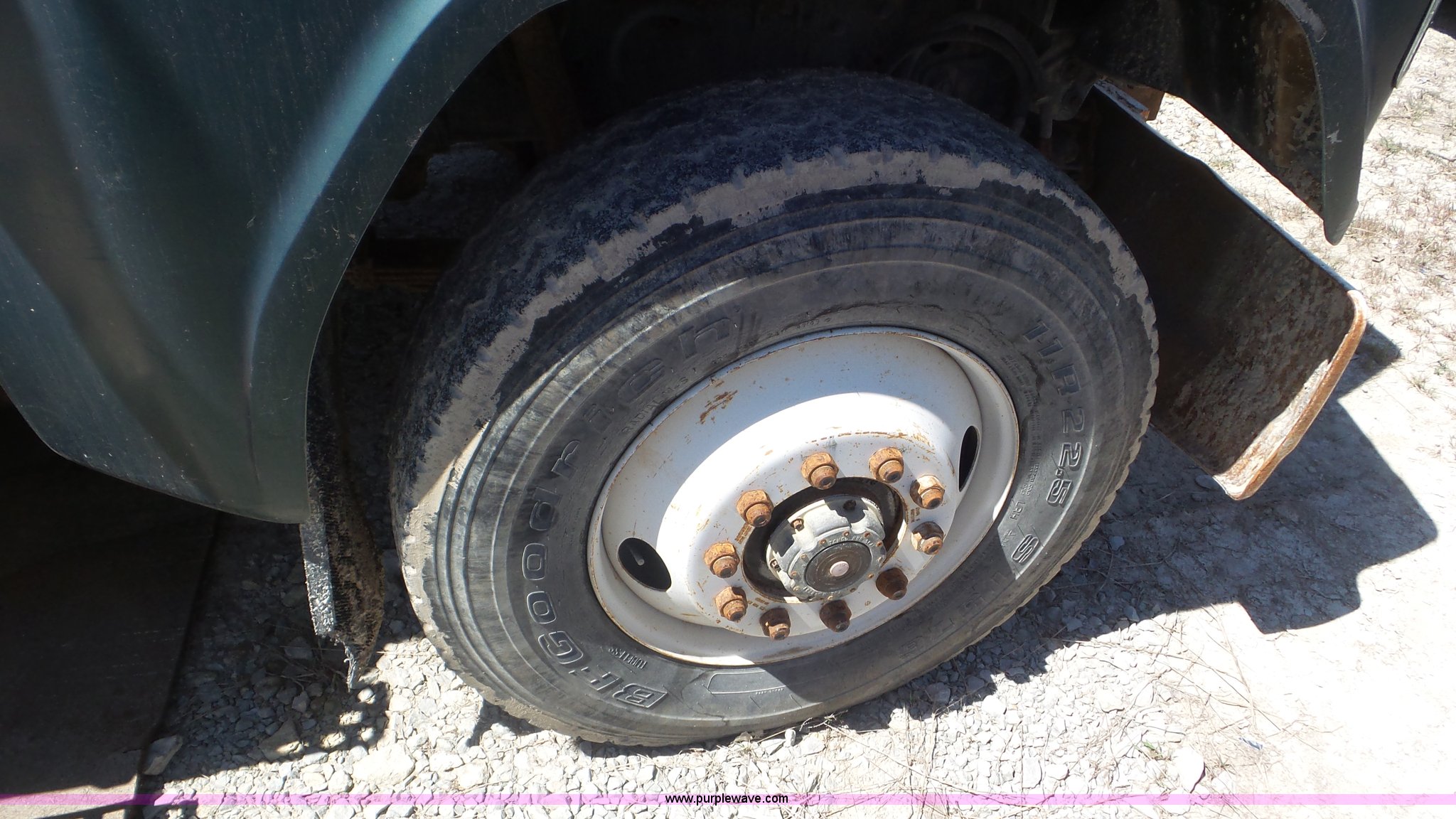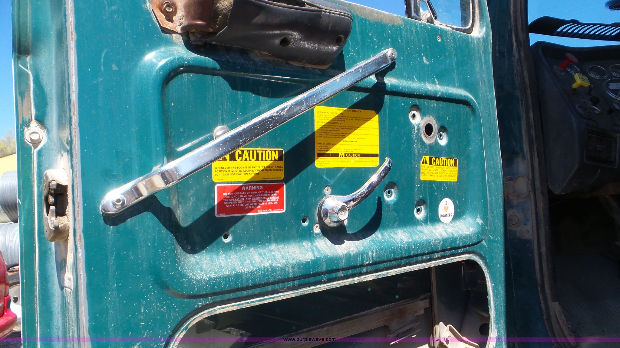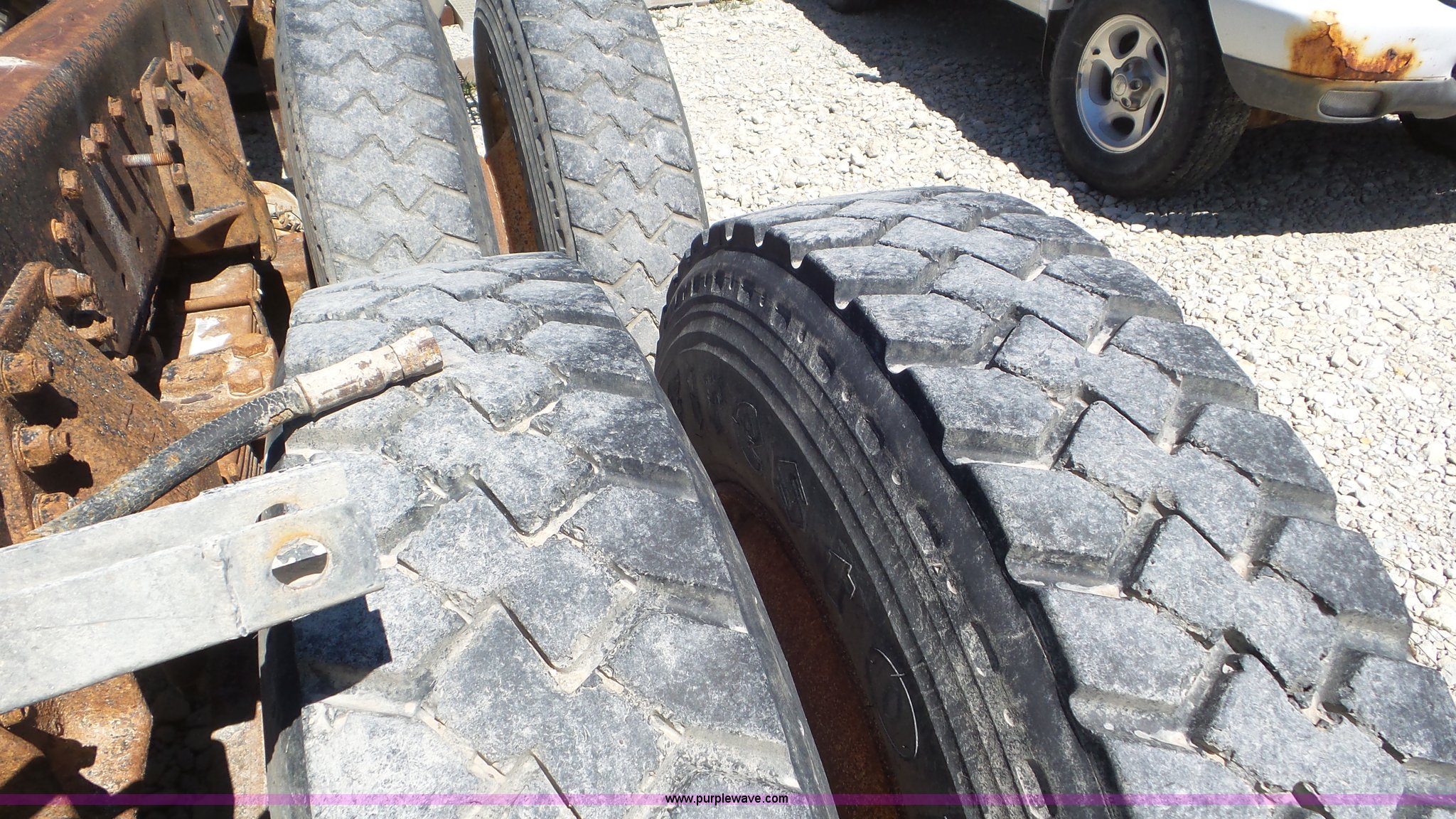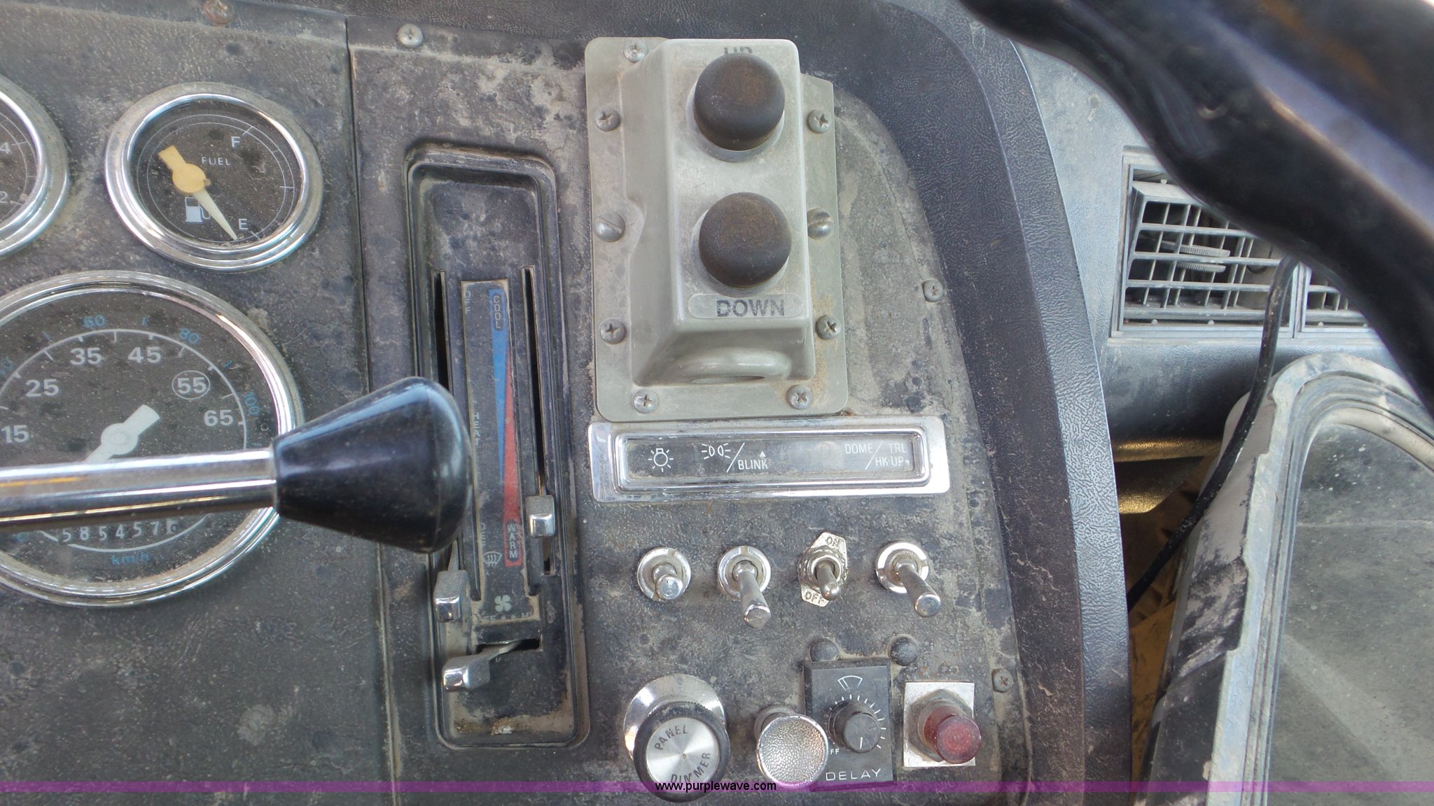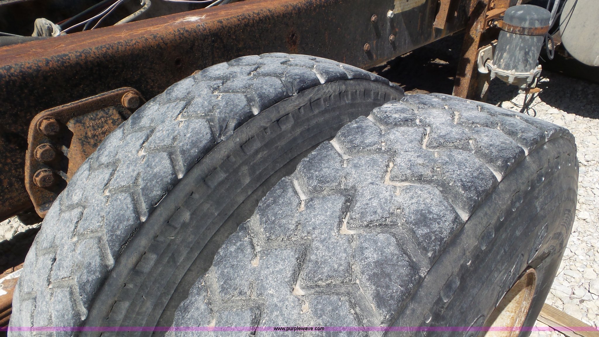 Purple Wave is selling a used Truck Chassis in Kansas. This item is a 1989 Ford LTL9000 truck cab and chassis with the following: 585,457 miles on odometer, Cummins NCT-315 six cylinder diesel engine, Eaton Fuller 13 speed manual transmission, Tandem axle, Heat, Air suspension seat, PTO, Exterior visor, Single exhaust stack, Single ram hoist, Dual fuel tanks, Spring over walking beam suspension, Air brakes, 214" wheelbase, 11R22.5 tires, GVWR 53,100 lbs, Transmission housing cracked, Frame cracked