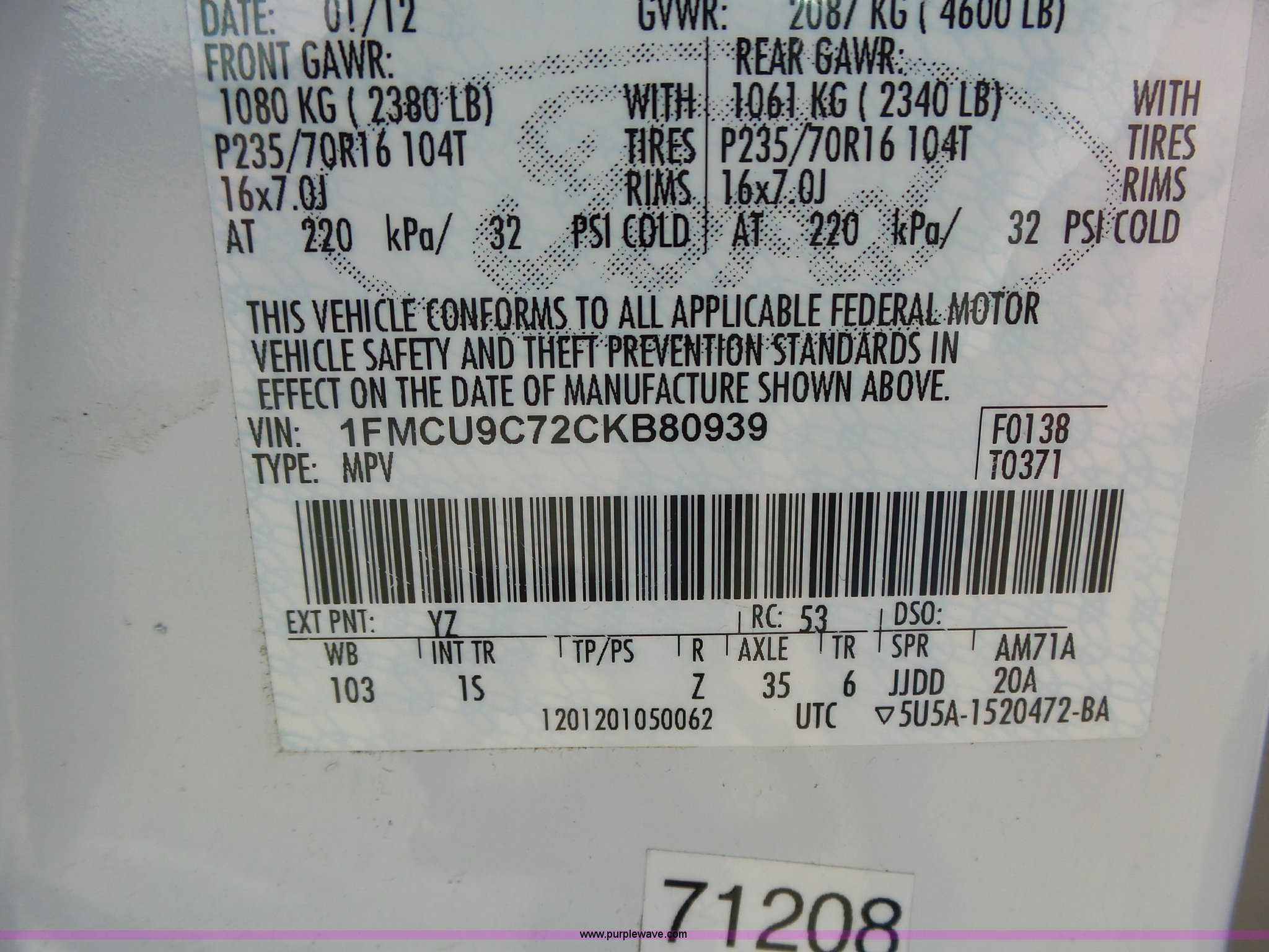 Purple Wave is selling a used Passenger Vehicle in Iowa. This item is a 2012 Ford Escape SUV with the following: Approx. 124,000 miles, 2.5L L4 DOHC 16V gas engine, Automatic transmission, Four wheel drive, AC and heat, Tilt, Cruise, AM/FM/CD, Power windows, locks, and mirrors, Cloth interior, P235/70R16 tires, Interior/exterior cosmetic damage, Dead battery, Left front damage, Non-operational unit, Must be towed or hauled, Unit# 12154