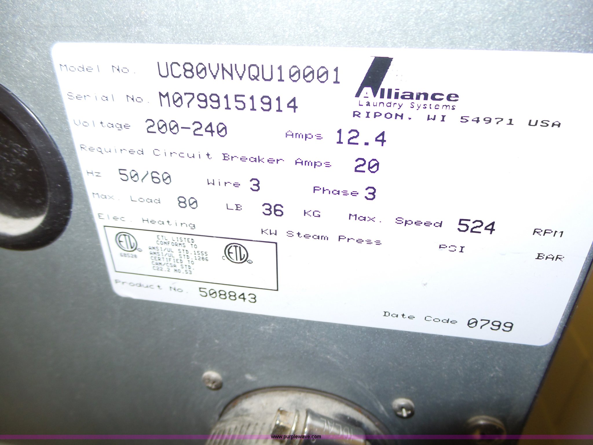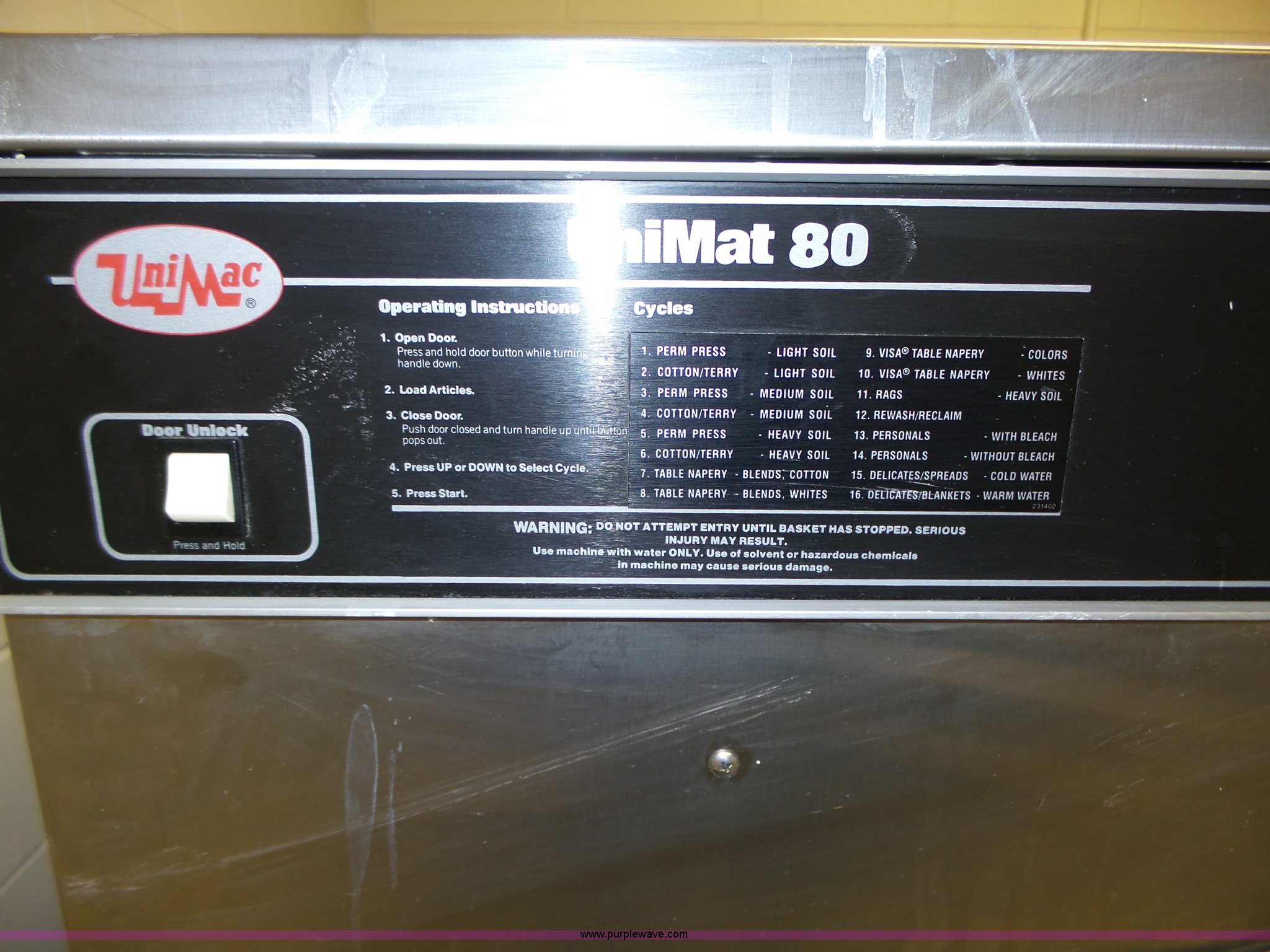 Purple Wave is selling a used Appliances in Iowa. This item is a (2) washer and dryer sets with the following: (2) Unimac Unimat 80 washers, Model UC80VNQU10001, 200/240V, 12.4 amp, Three wire three phase, Approx. 41.5"W x 56.25"H x 48"D, Manual, Serials M0799151916, M0799151914, (2) Unimac DTB50G dryers, Natural gas, 208/240V, Single phase, 120,000 BTU per hours, Approx. 39"W x 77"H x 44"D, Serials STCK9802022559, STCK0005008182, Units will be disconnected prior to auciton