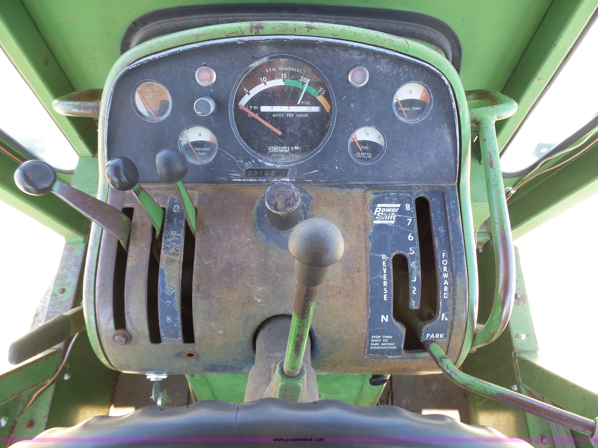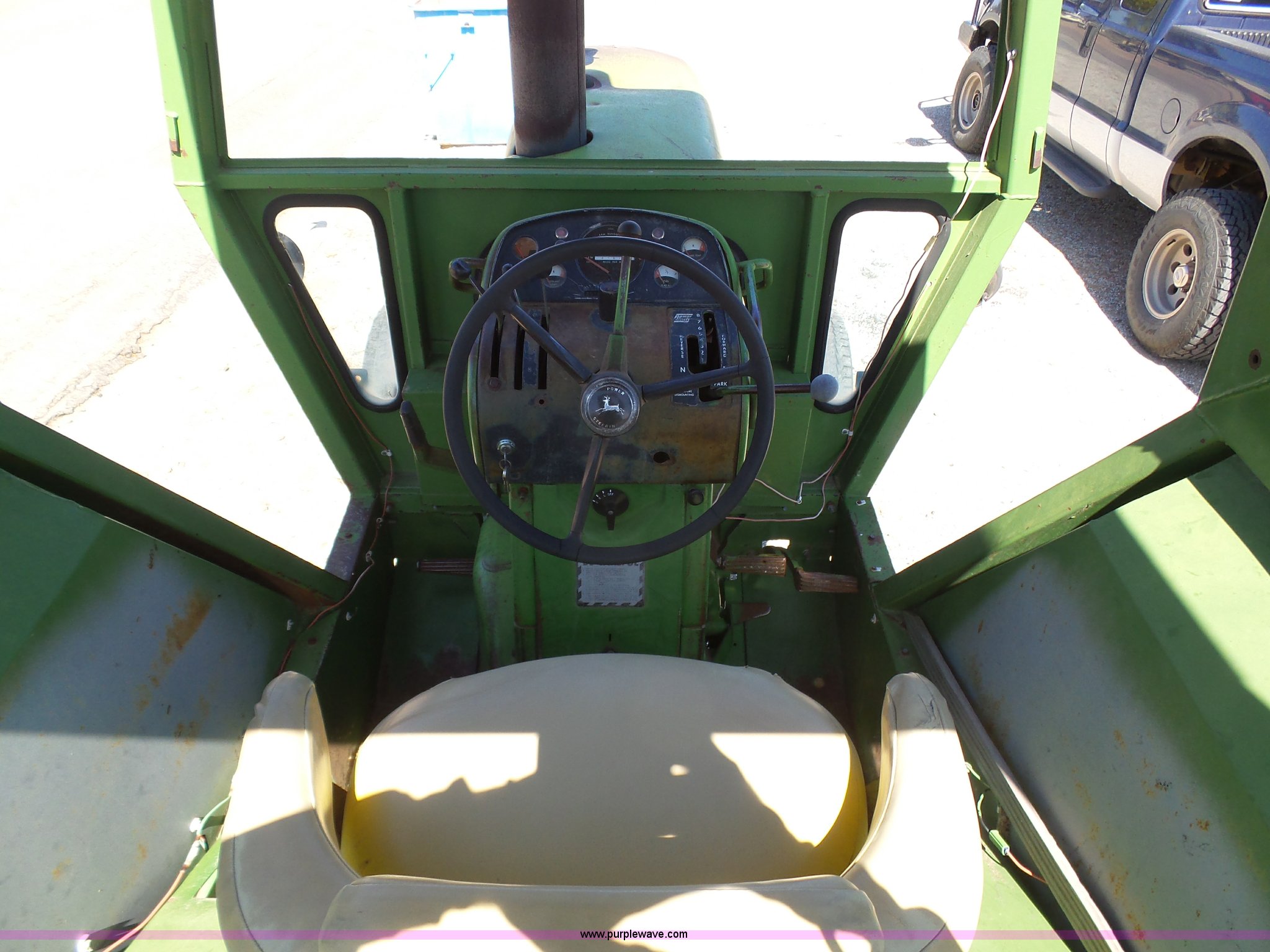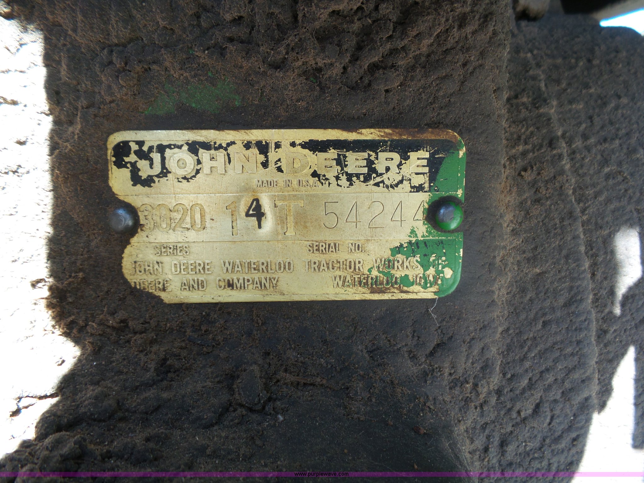 Purple Wave is selling a used Tractor in Kansas. This item is a John Deere 3020 tractor with the following: 3,064 hours on meter, John Deere four cylinder gas engine, Powershift transmission, 8F-1R gears, Suspension seat, Three point, Front PTO, 540/1000 PTO, Front hydraulic remote sets, Rear hydraulic remote sets, (5) suitcase weights, 92" wheelbase, LT215/85R16 front tires, 16.9-28 rear tires, Unattached cab window kit included, Non-operational PTO, Interior/exterior cosmetic damage, Broken glass, Serial 14T54244