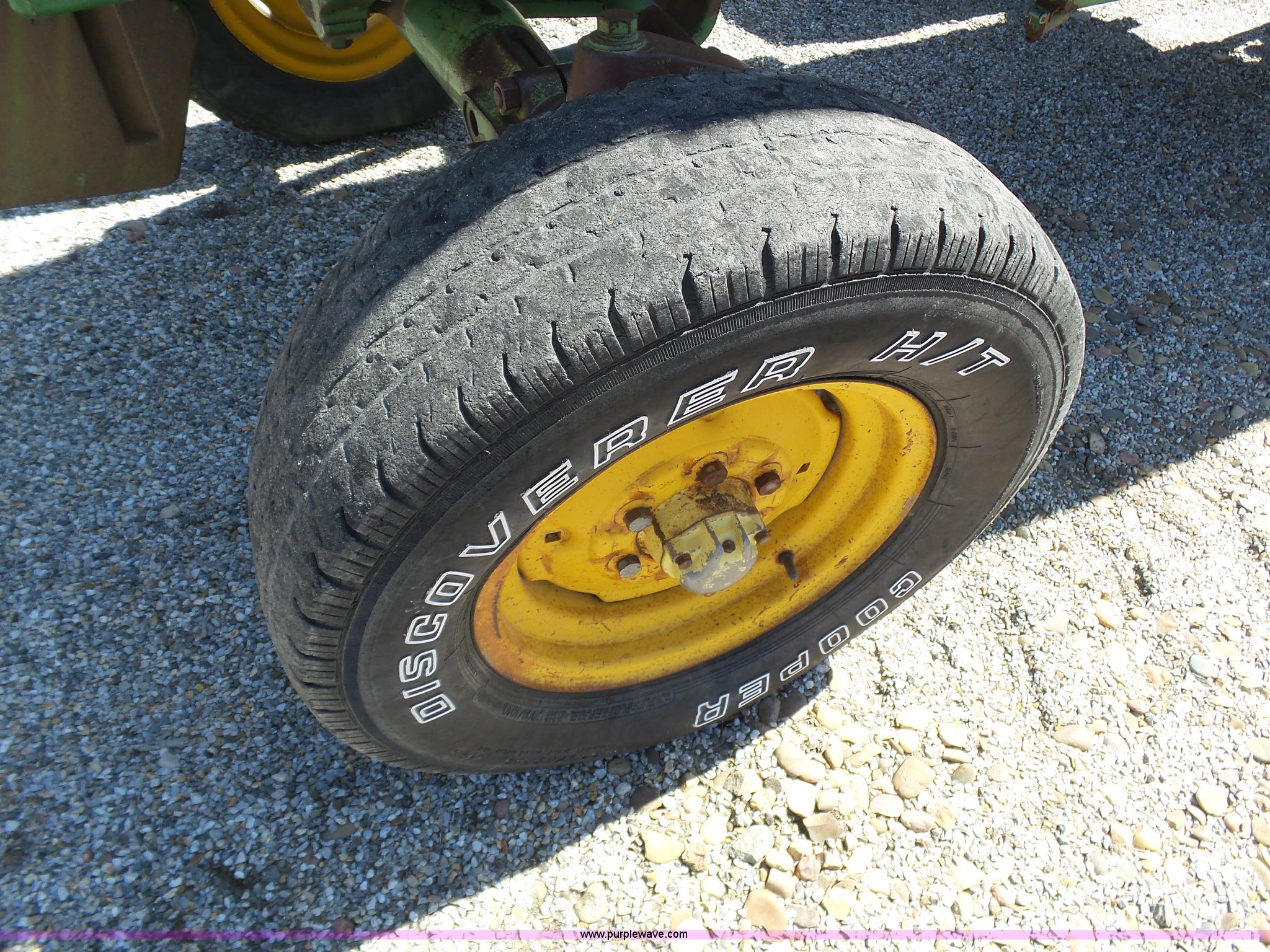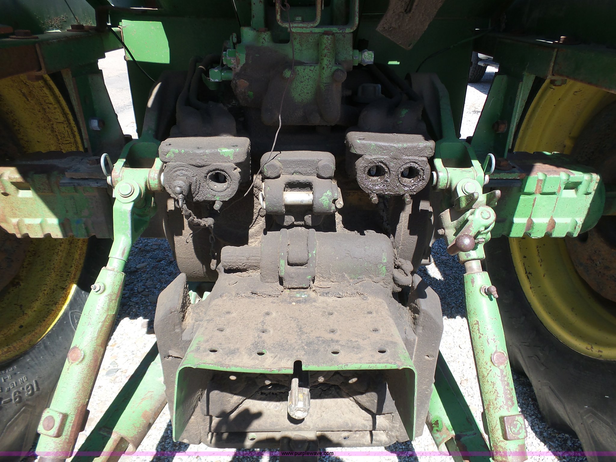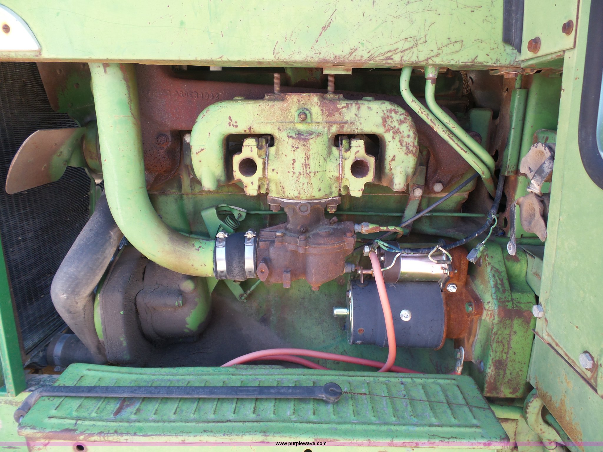 Purple Wave is selling a used Tractor in Kansas. This item is a John Deere 3020 tractor with the following: 3,064 hours on meter, John Deere four cylinder gas engine, Powershift transmission, 8F-1R gears, Suspension seat, Three point, Front PTO, 540/1000 PTO, Front hydraulic remote sets, Rear hydraulic remote sets, (5) suitcase weights, 92" wheelbase, LT215/85R16 front tires, 16.9-28 rear tires, Unattached cab window kit included, Non-operational PTO, Interior/exterior cosmetic damage, Broken glass, Serial 14T54244