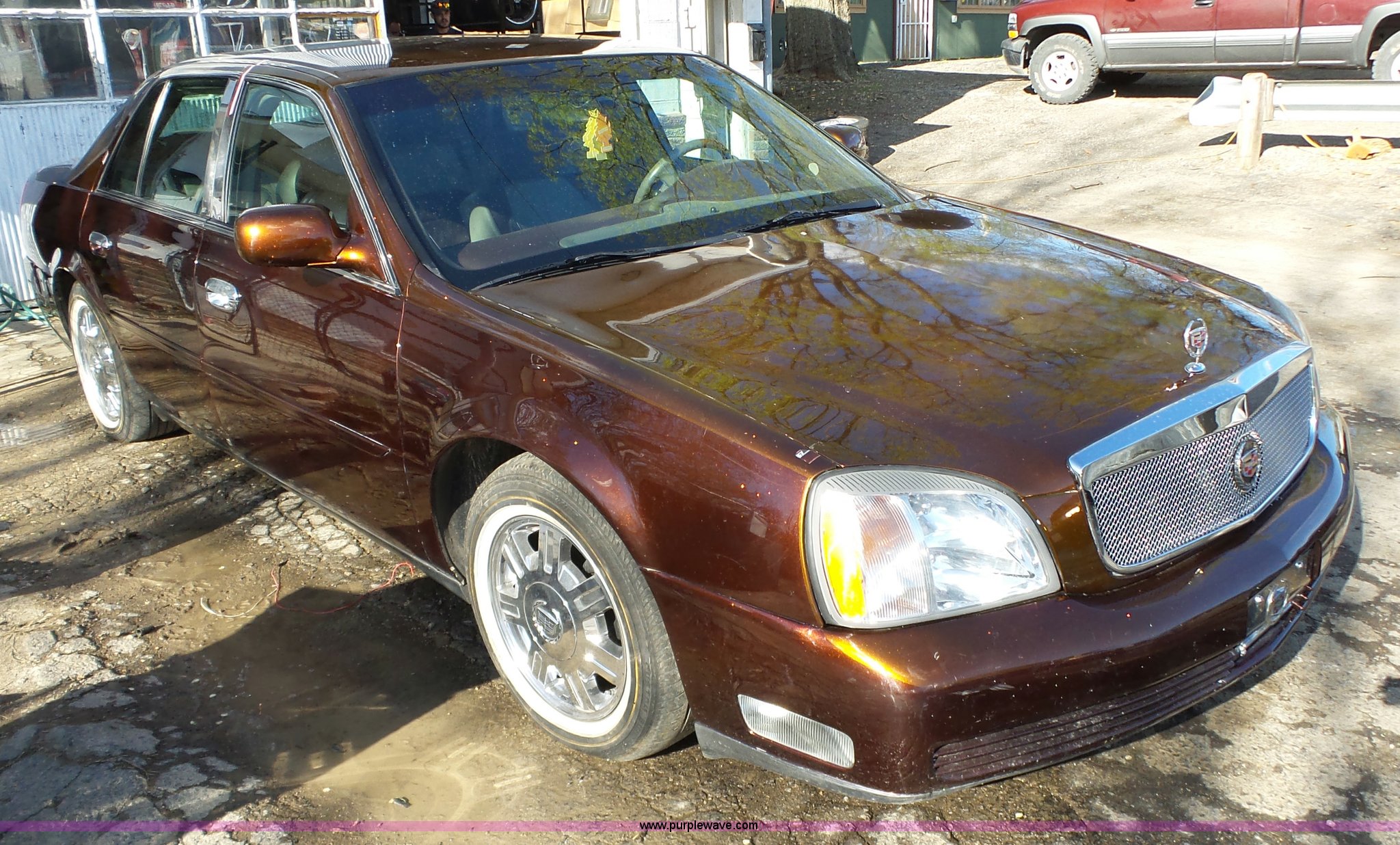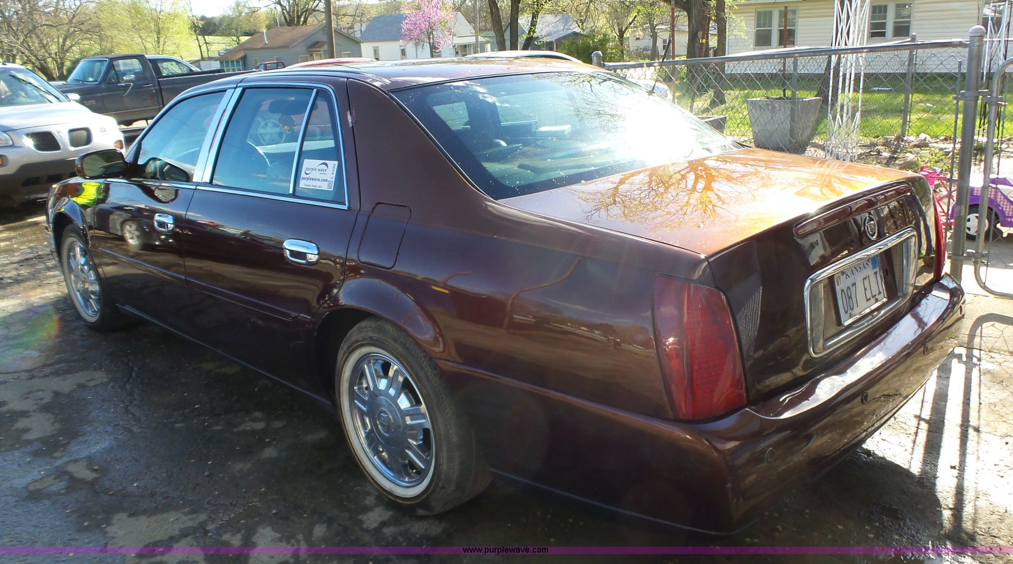 Purple Wave is selling a used Passenger Vehicle in Kansas. This item is a 2001 Cadillac DeVille DHS with the following: 180,626 miles on odometer, 4.6L V8 DOHC 32V gas engine, Automatic transmission, AC and heat, Tilt, Cruise, Clarion AM/FM/CD, Bluetooth capabilities, Power windows, locks, mirrors, and seats, Leather interior, (2) Treo amps, (2) Hifonics amps, (2) Treo 15" rear speakers, (2) batteries in trunk, P225/60R16 tires