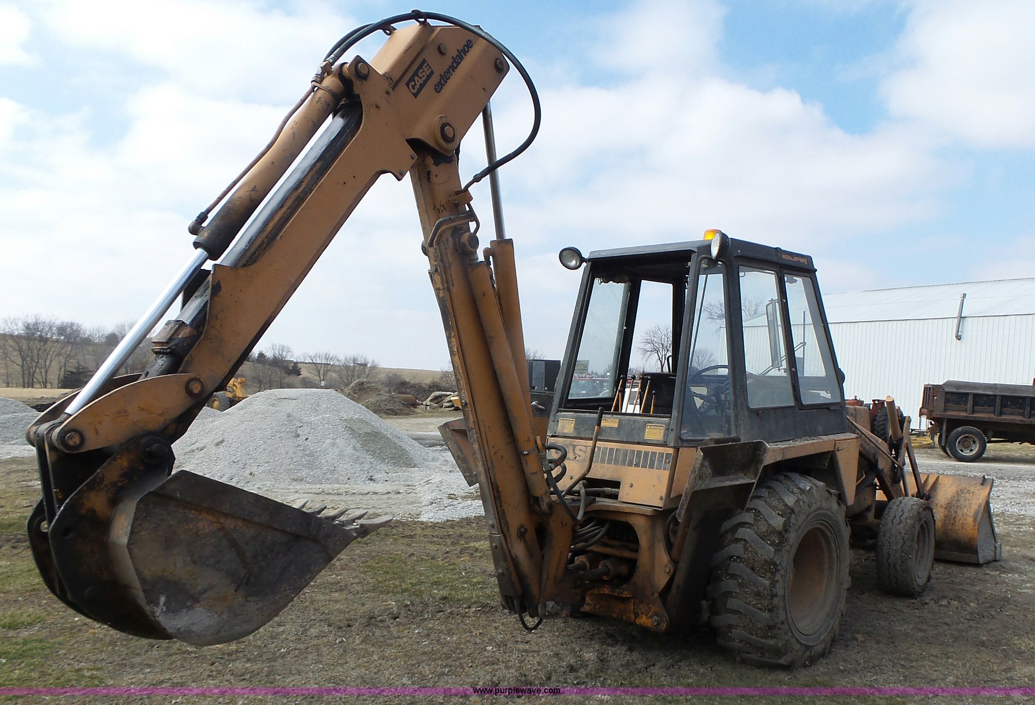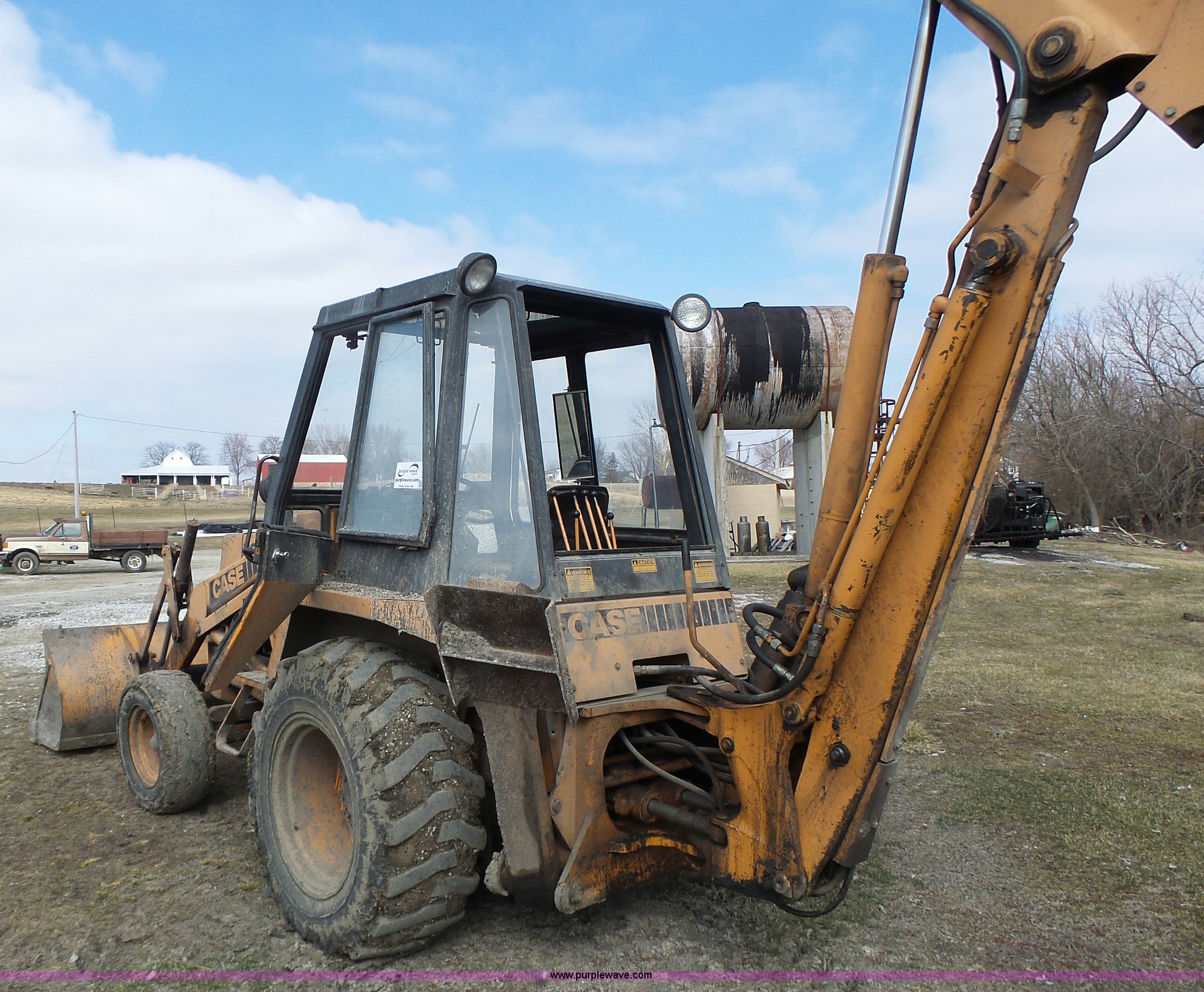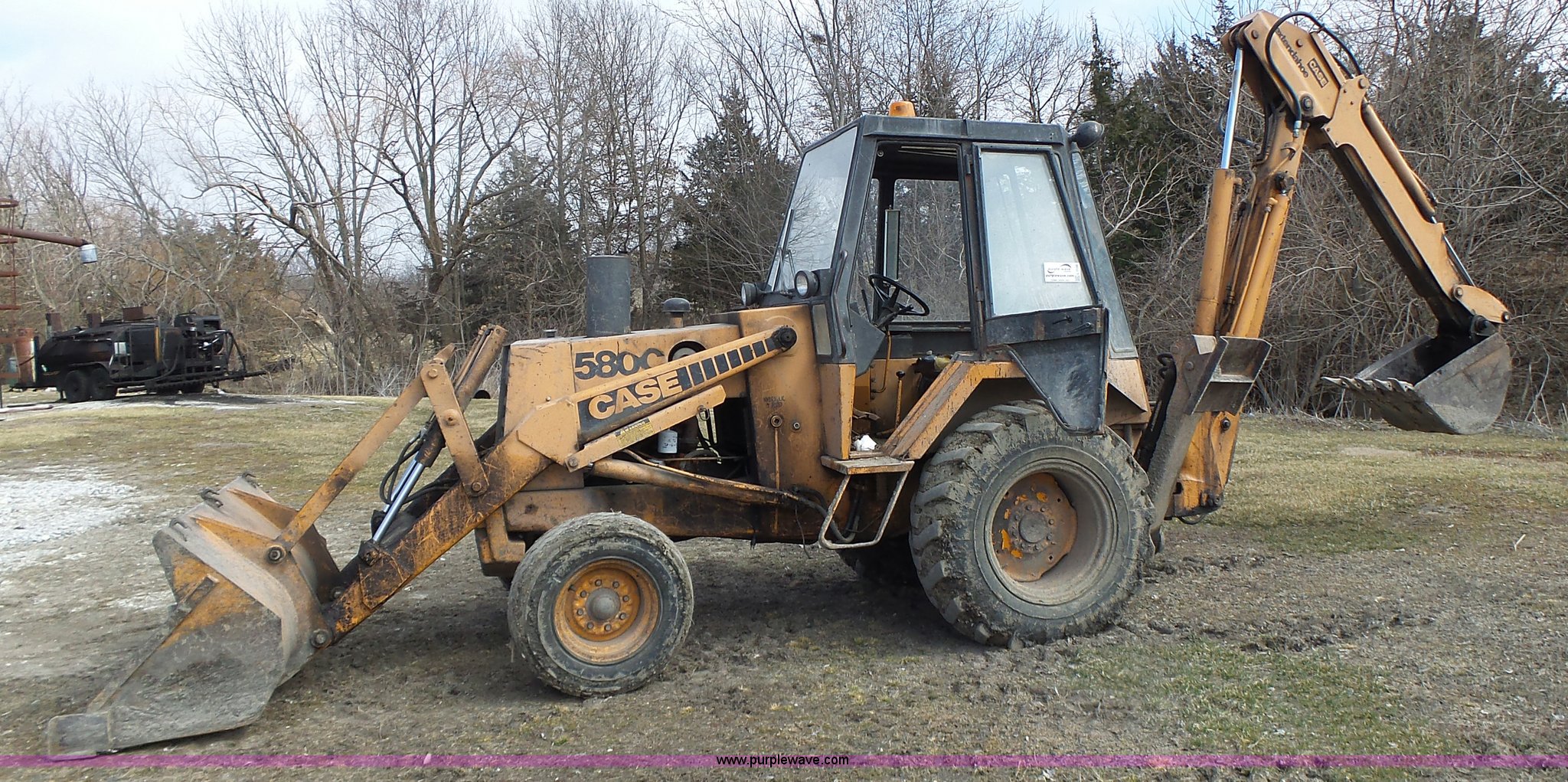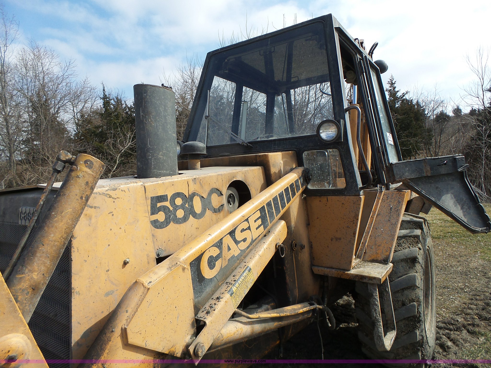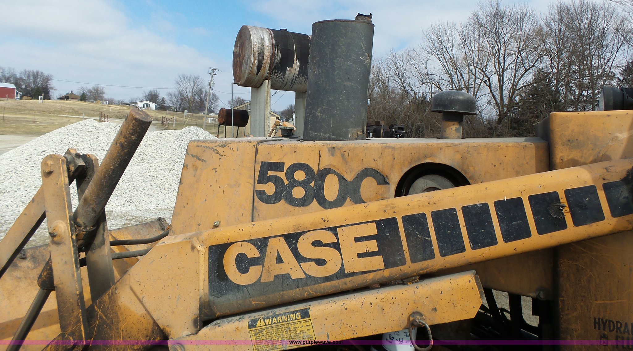 Purple Wave is selling a used Tractor Loader Backhoe in Missouri. This item is a 1979 Case 580C backhoe with the following: 7,570 hours on meter, Case four cylinder diesel engine, Shuttle shift transmission, 4F-4R gears, Enclosed cab, Heat, Suspension seat, Wipers, Front and rear work lights, Three stick backhoe controls, Foot swing, 82"W loader bucket, Weld-on cutting edge, Extendable stick, 24"W backhoe bucket, (5) teeth, 11L-16 front tires, 17.5L-24 rear tires, 10,192 lbs. base operating weight, Drive-train locked up, unit will not move, Serial 8984584