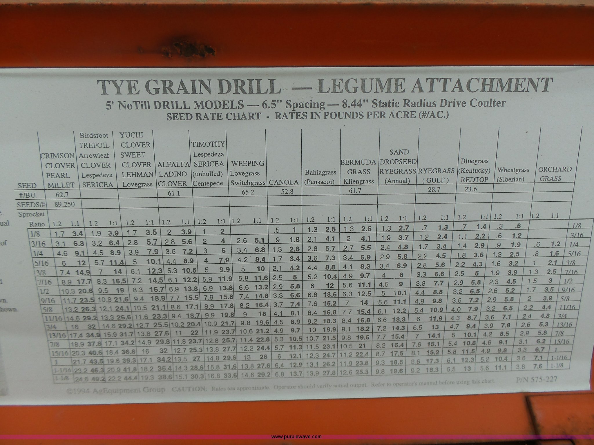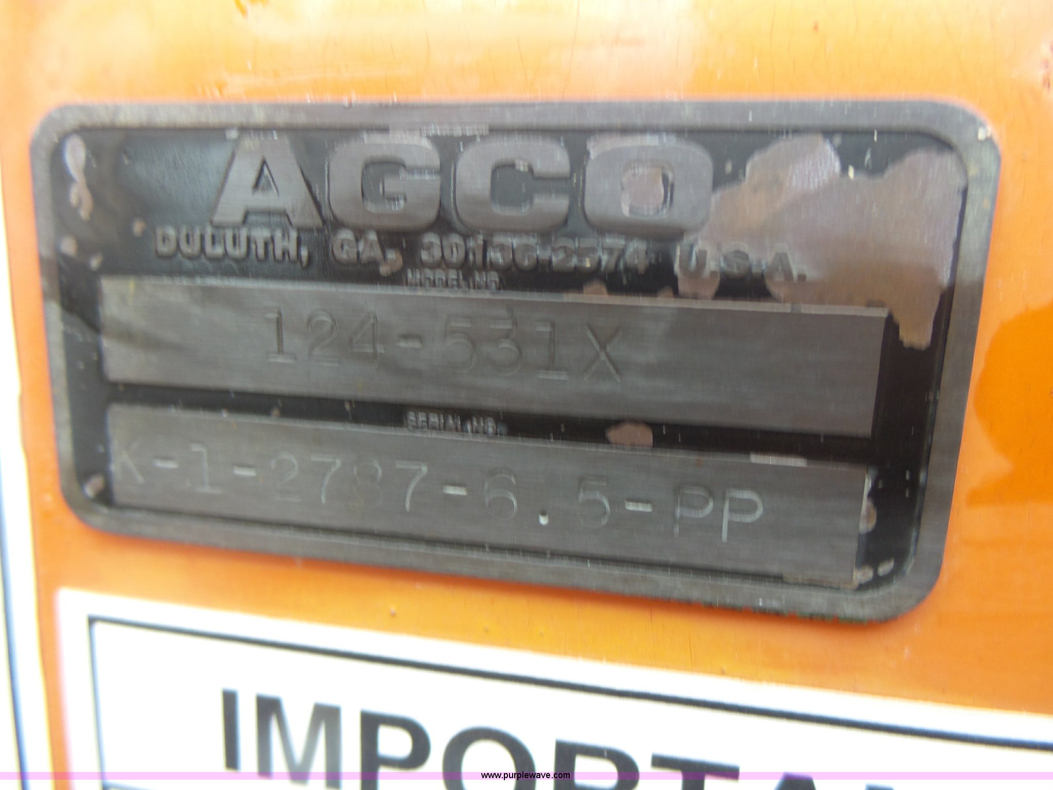 Purple Wave is selling a used Grain Drill or Seeder in Missouri. This item is a AGCO seed drill with the following: Model 124-531X, 60"W, Hydraulic drive, Quick attach, Three point, Serial K-1-2787-6.5-PP, MODOT ID 2-A-08046