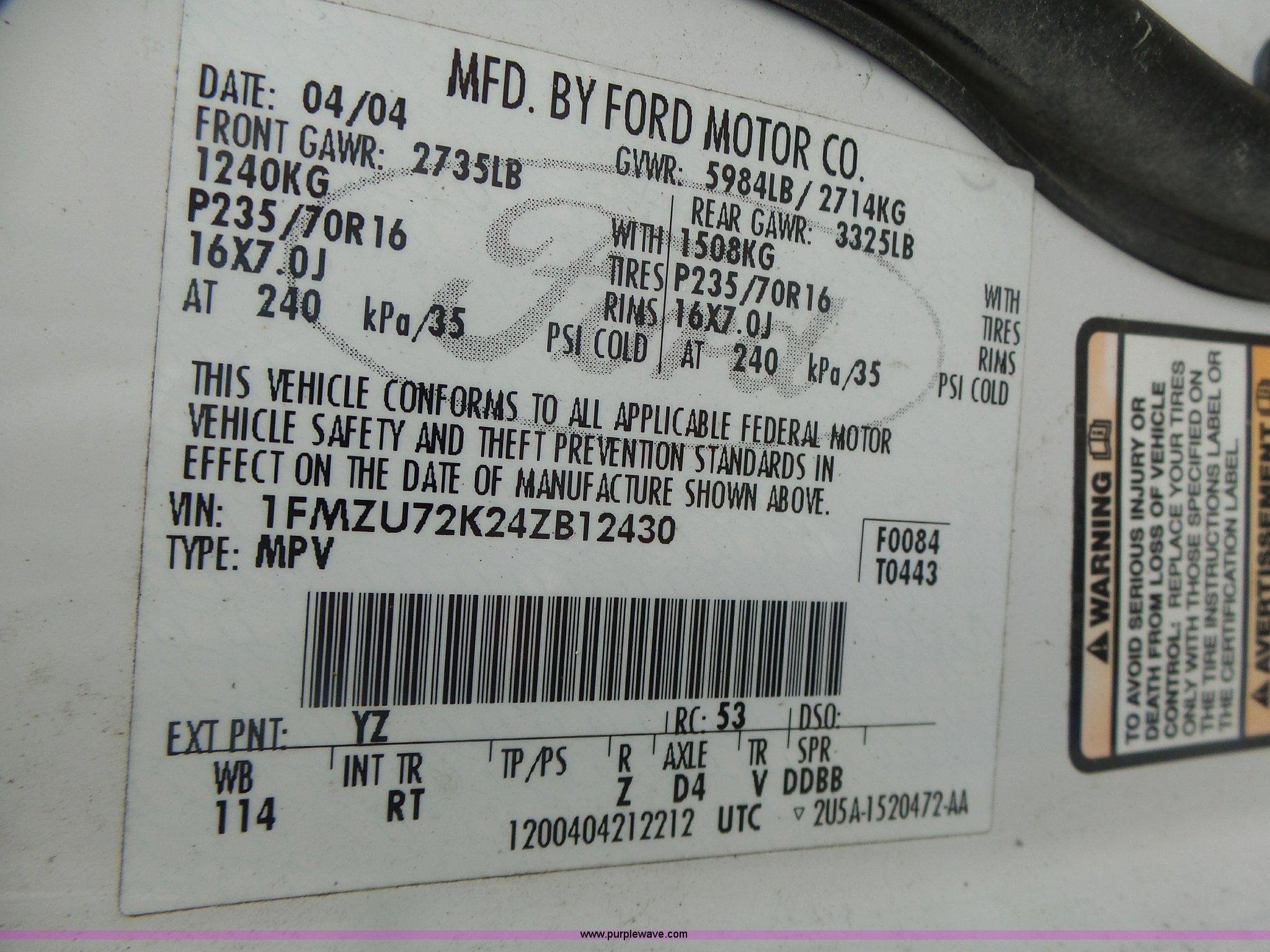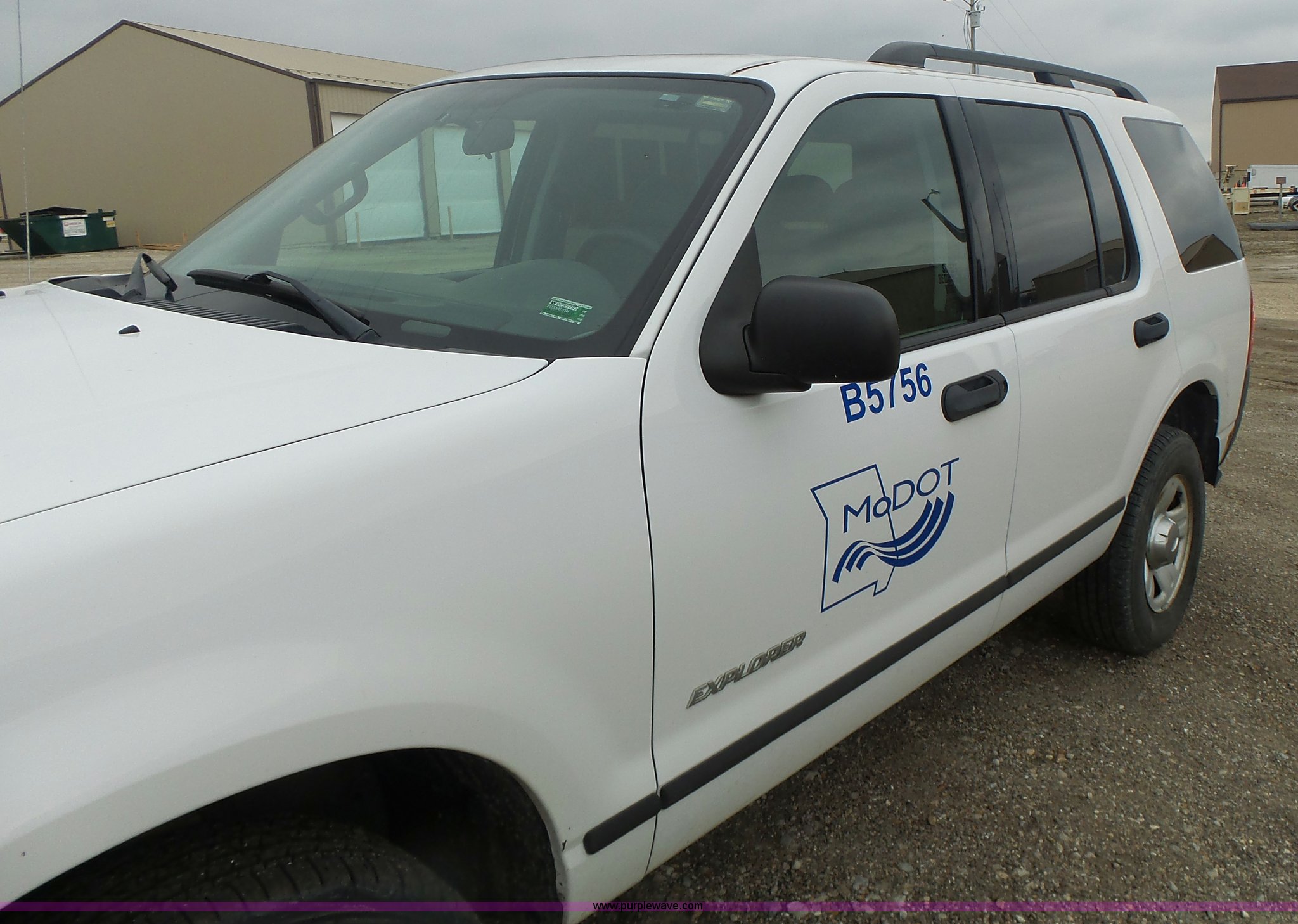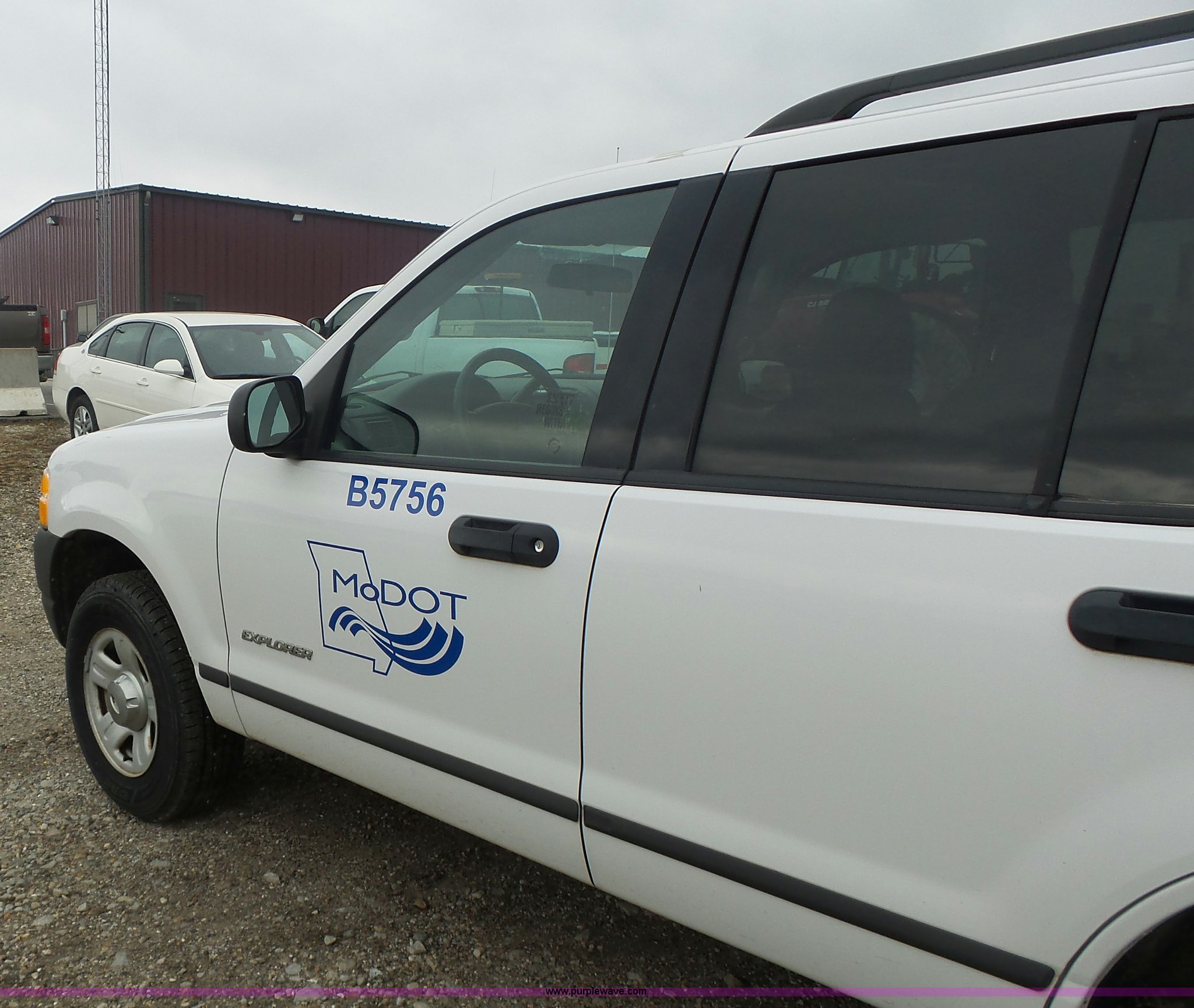 2004 Ford Explorer XLS SUV. 167,385 miles on odometer, 4.0L V6 SOHC 12V FFV gas engine, Automatic transmission, Four wheel drive, AC and heat, Tilt, Cruise, AM/FM/CD, Power windows, locks, and mirrors, Cloth interior, Receiver hitch, Trailer wiring, MODOT ID B5756. Missouri title. 1FMZU72K24ZB12430. Missouri Department of Transportation (MODOT). 26826 US Hwy 63. Macon, MO 63552