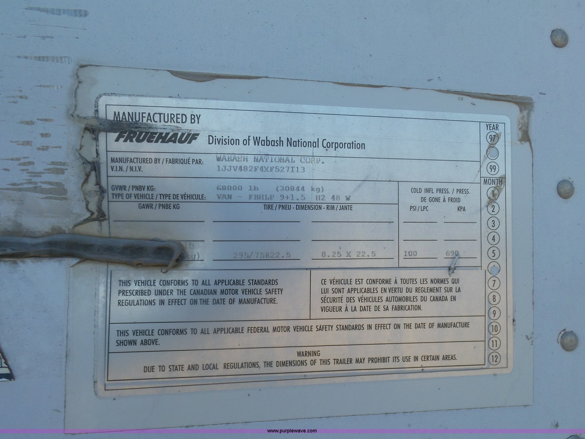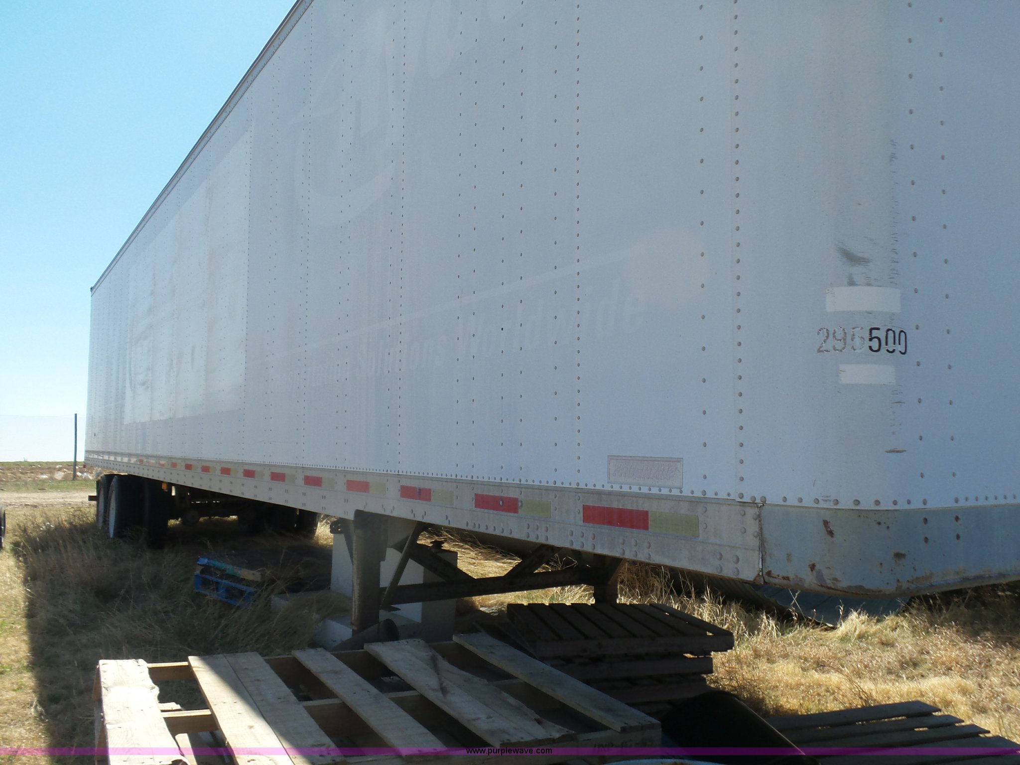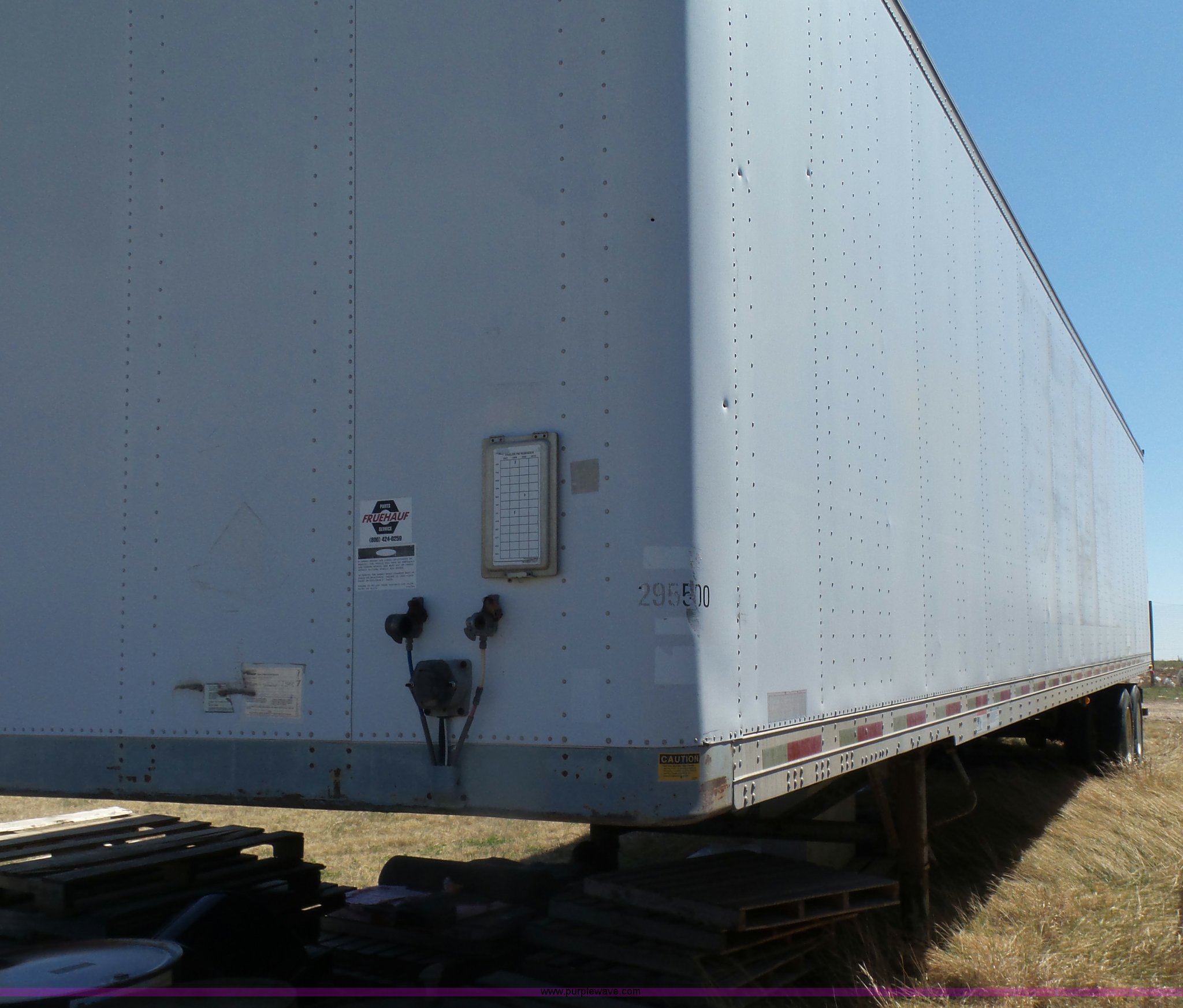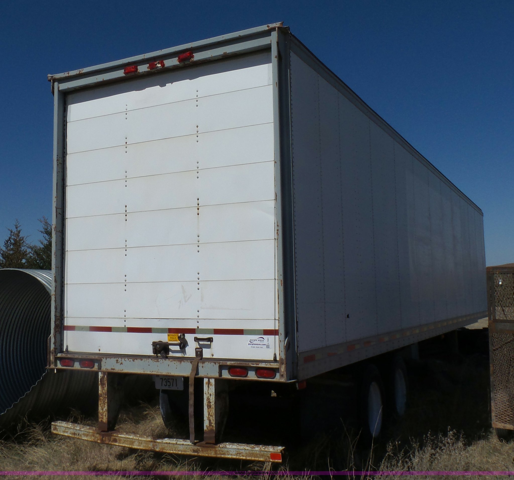 Purple Wave is selling a used Dry Van Trailer in Kansas. This item is a 1999 Fruehauf dry van trailer with the following: 48'L x 101"W, Wood floor, Rear roll up door, Dual leg landing gear, Spring suspension, Air brakes, Tandem axle, Adjustable running gear, 295/75R22.5 tires, Contents not included, Has sat for several years