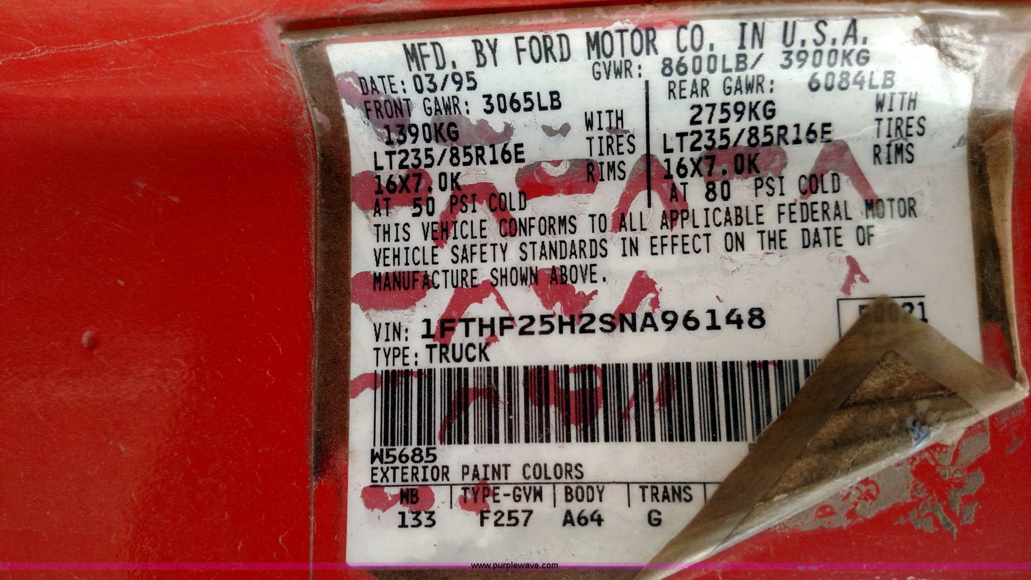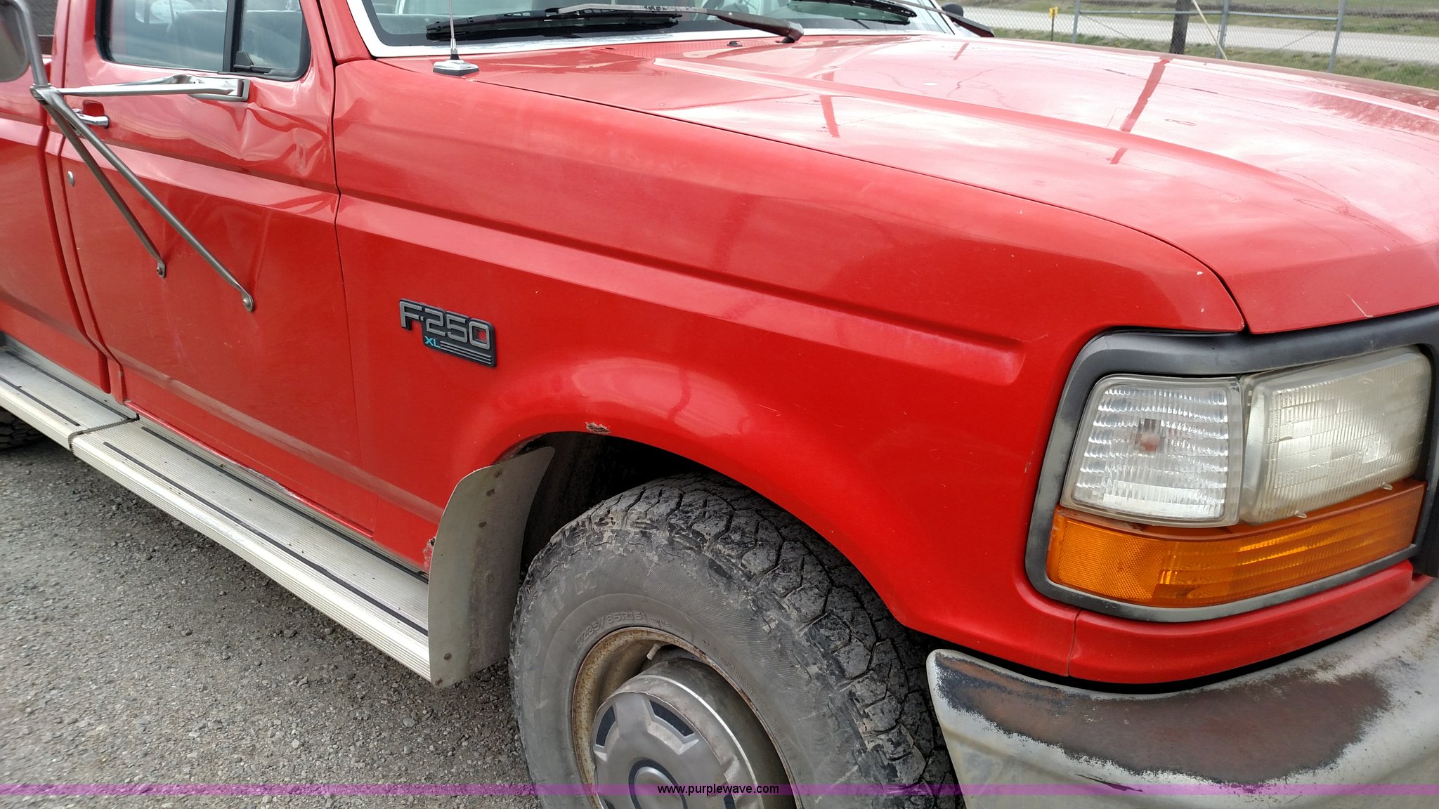 Purple Wave is selling a used 3/4 or 1 Ton Pickup or Van in Kansas. This item is a 1995 Ford F250 HD XL pickup truck with the following: 239,883 miles on odometer, 5.8L V8 OHV 16V gas engine, Automatic transmission, AC and heat, AM/FM, Manual windows and locks, Vinyl interior, 235/85R16 tires, Interior/exterior cosmetic damage, Hail damage, Hydraulic lift gate inoperable