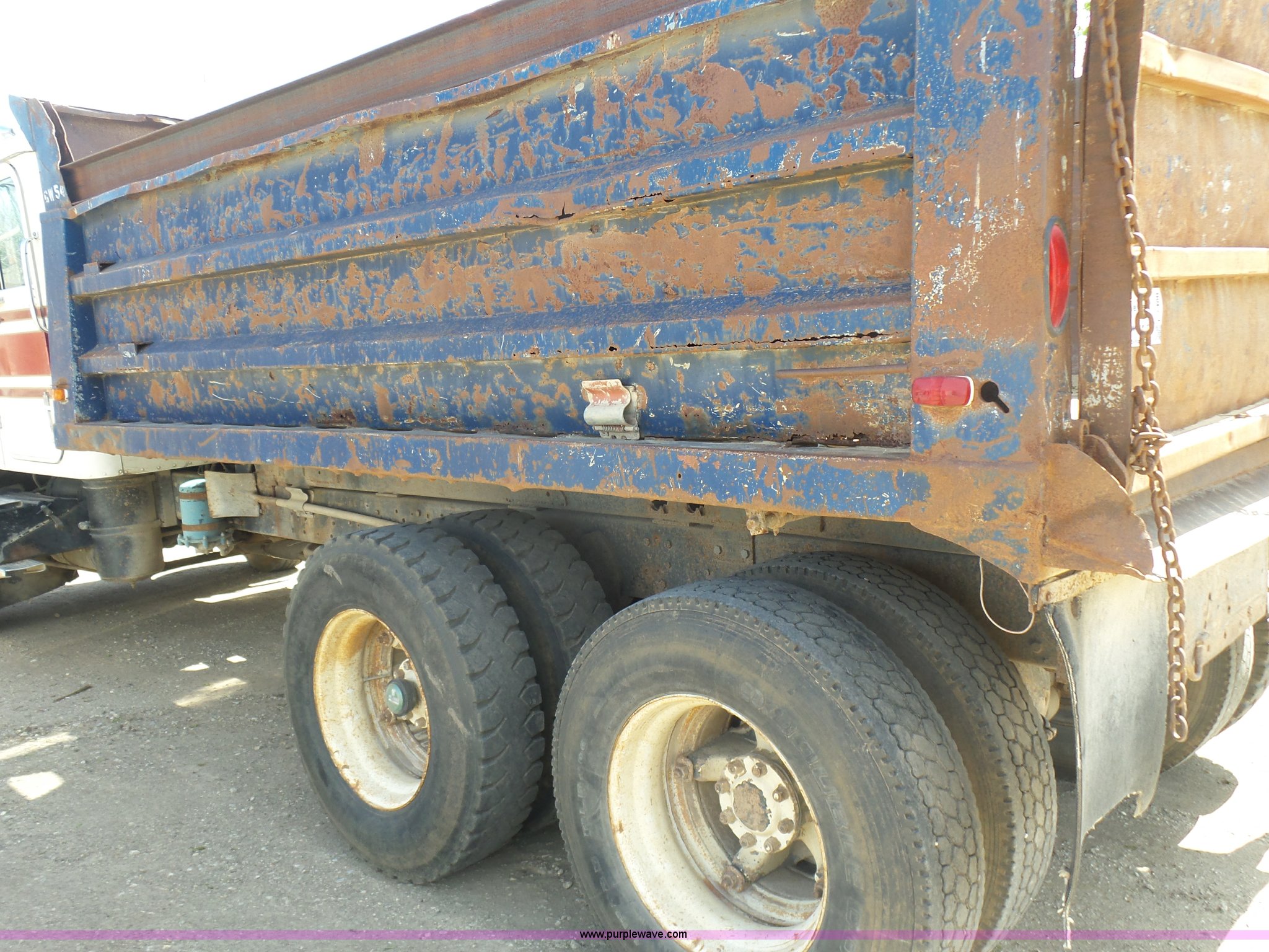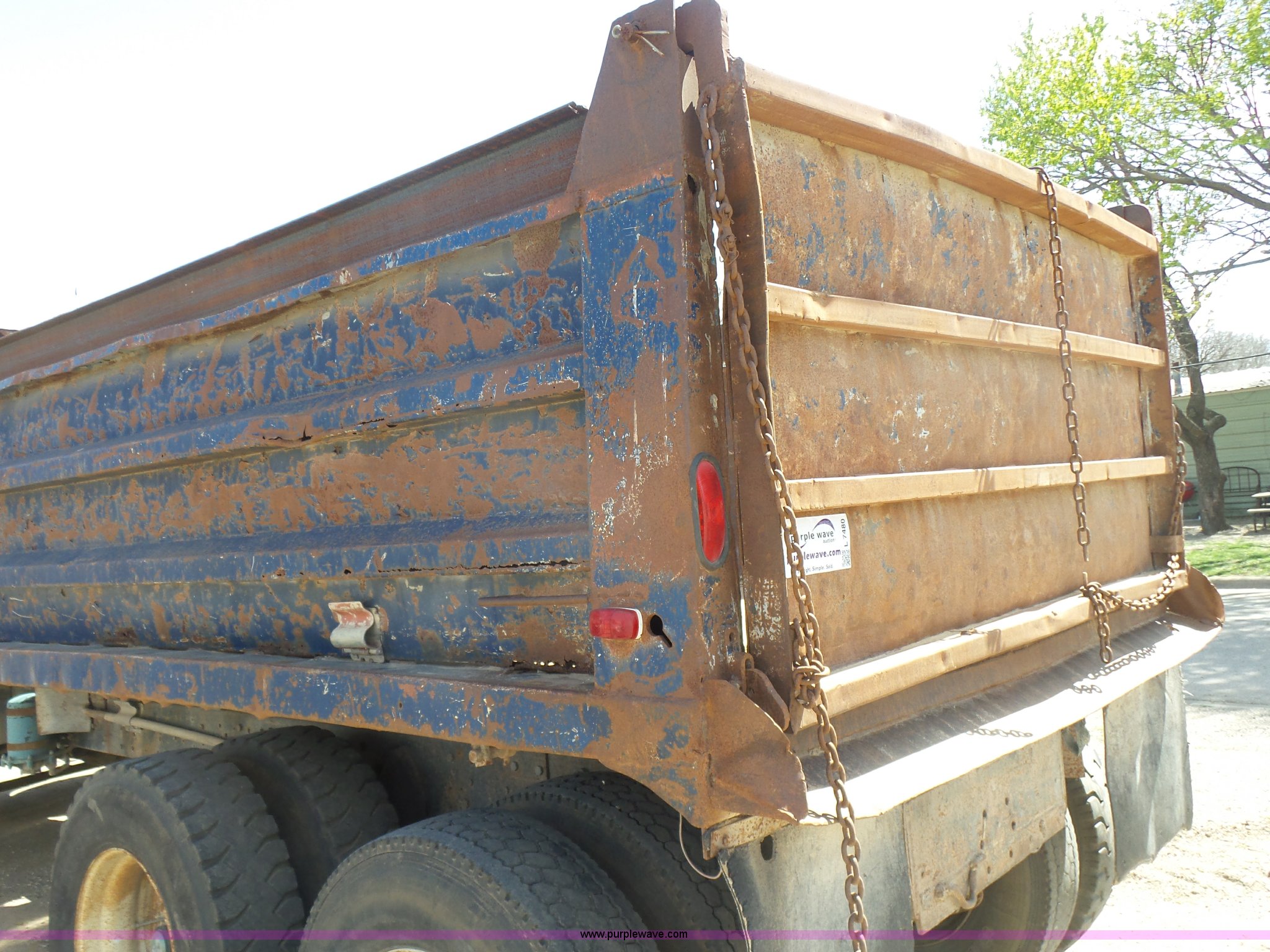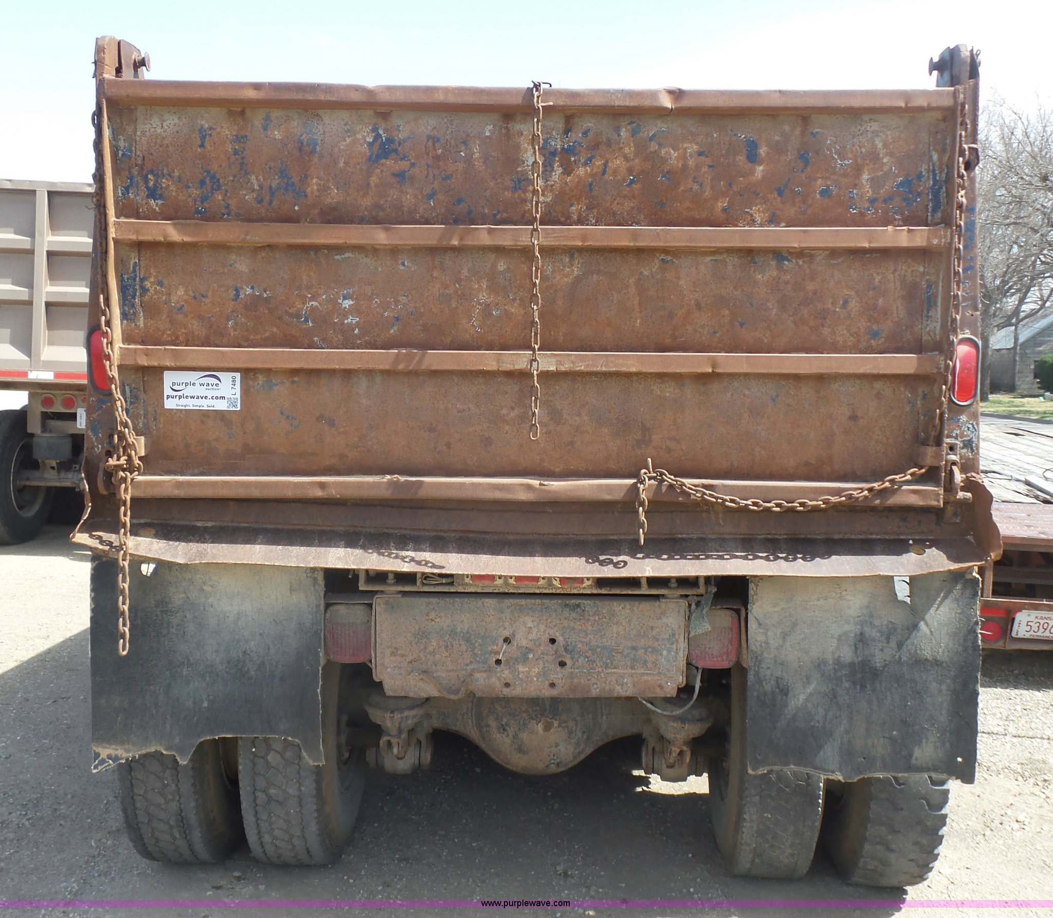 A bidding error occurred in the last moments of bidding on this asset in our April 28 Construction Equipment Auction. with the following: 852,737 miles on odometer, Cummins 290 diesel engine, 13 speed manual transmission, Tandem axle, Heat, Air suspension seat, Exterior visor, 14'L x 93"W steel dump bed, Dual ram hoist, Air operated end gate, Spring suspension, 11R22.5 tires, Interior/exterior cosmetic damage, Frame has been welded