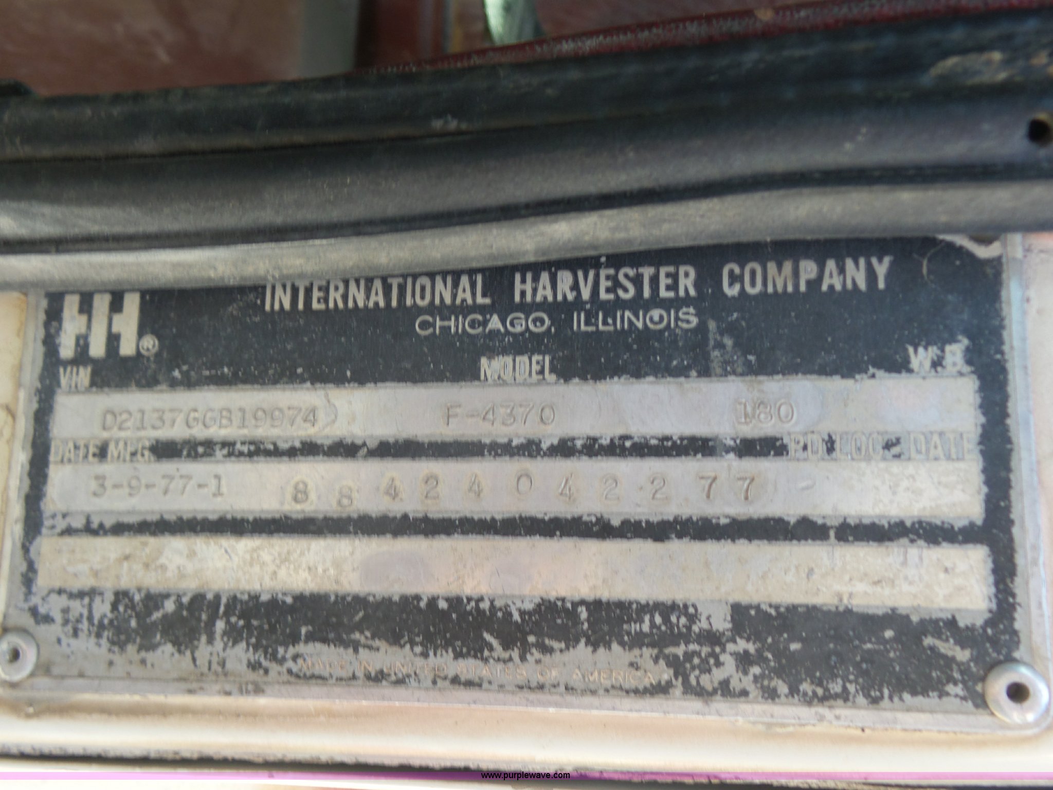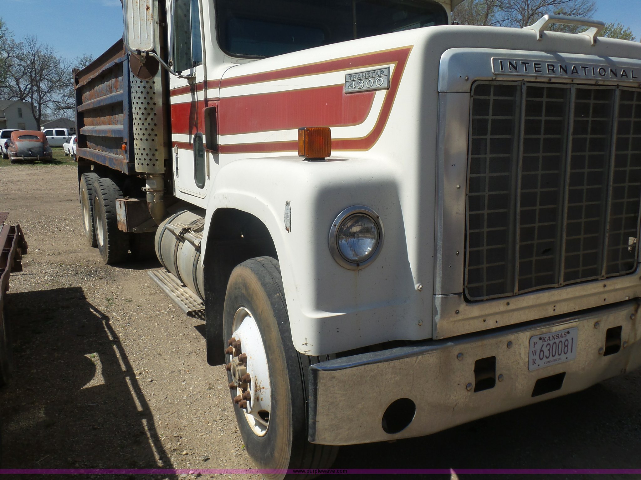 1977 International Transtar 4300 dump truck. A bidding error occurred in the last moments of bidding on this asset in our April 28 Construction Equipment Auction. At Purple Wave's discretion this asset has been moved here to allow a natural conclusion to the bidding. 852,737 miles on odometer, Cummins 290 diesel engine, 13 speed manual transmission, Tandem axle, Heat, Air suspension seat, Exterior visor, 14'L x 93"W steel dump bed Dual ram hoist, Air operated end gate, Spring suspension, 11R22.5 tires, Interior/exterior cosmetic damage, Frame has been welded. Kansas title. D2137GGB19974. Boyd Excavating Inc.. Abilene, KS 67410