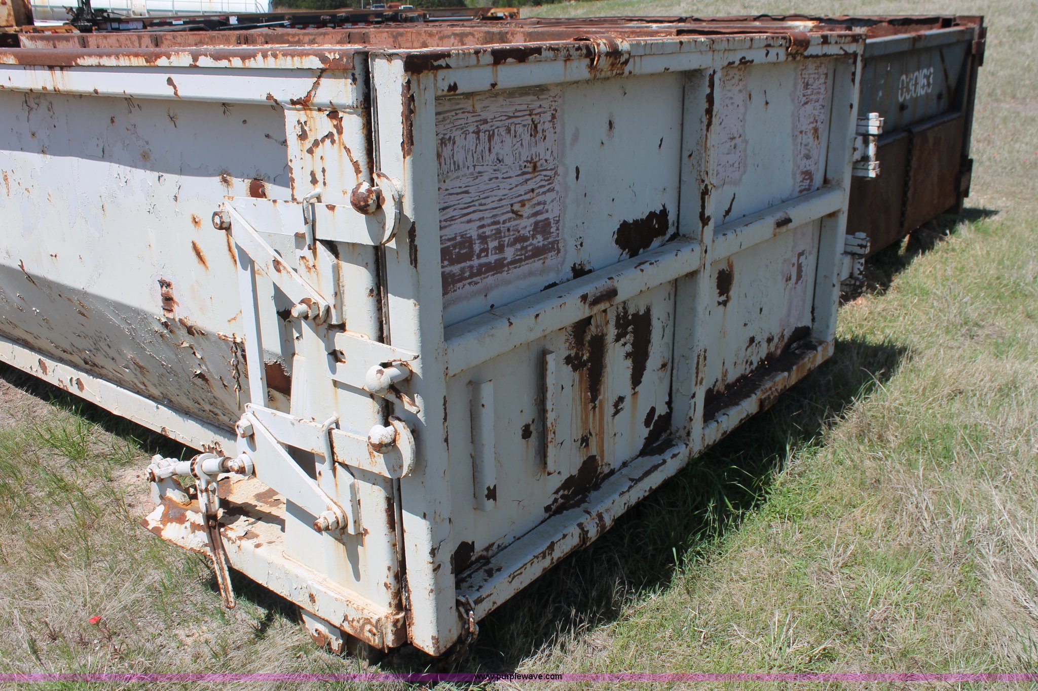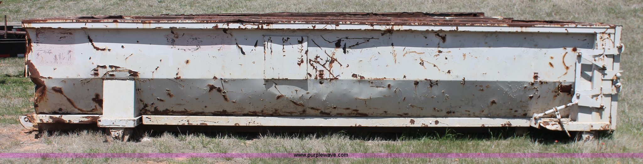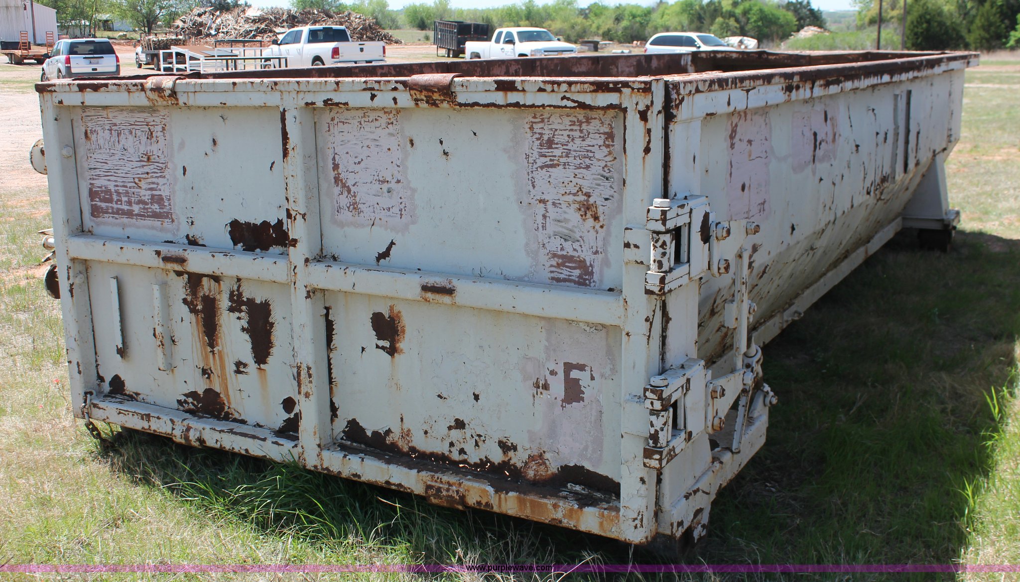 Purple Wave is selling a used Refuse or Compaction Equip. in Oklahoma. This item is a Roll off container with the following: 11'L x 90"W overall, 20'L x 80"W interior, 56"H side walls, 20 cu. yd. capacity, Rear discharge door, Steel construction, Steel caster rollers, Contents will be removed