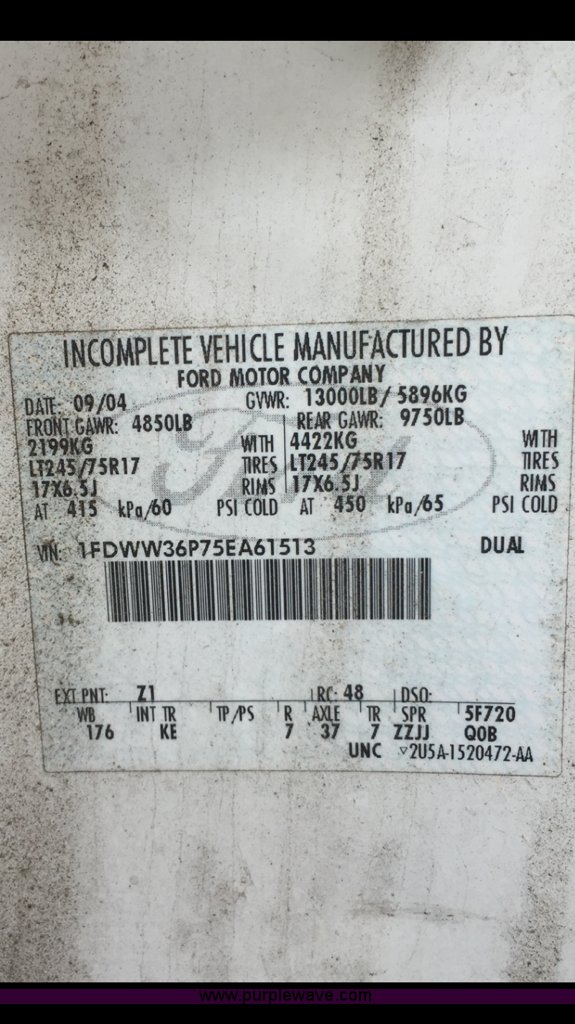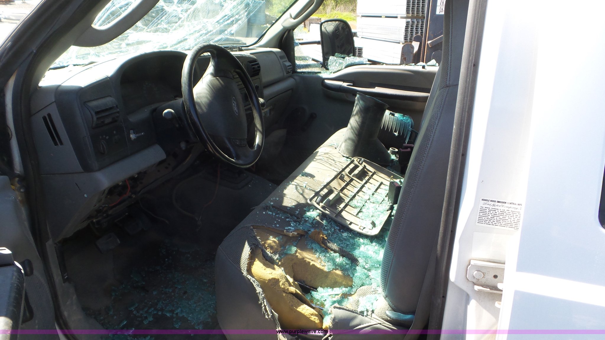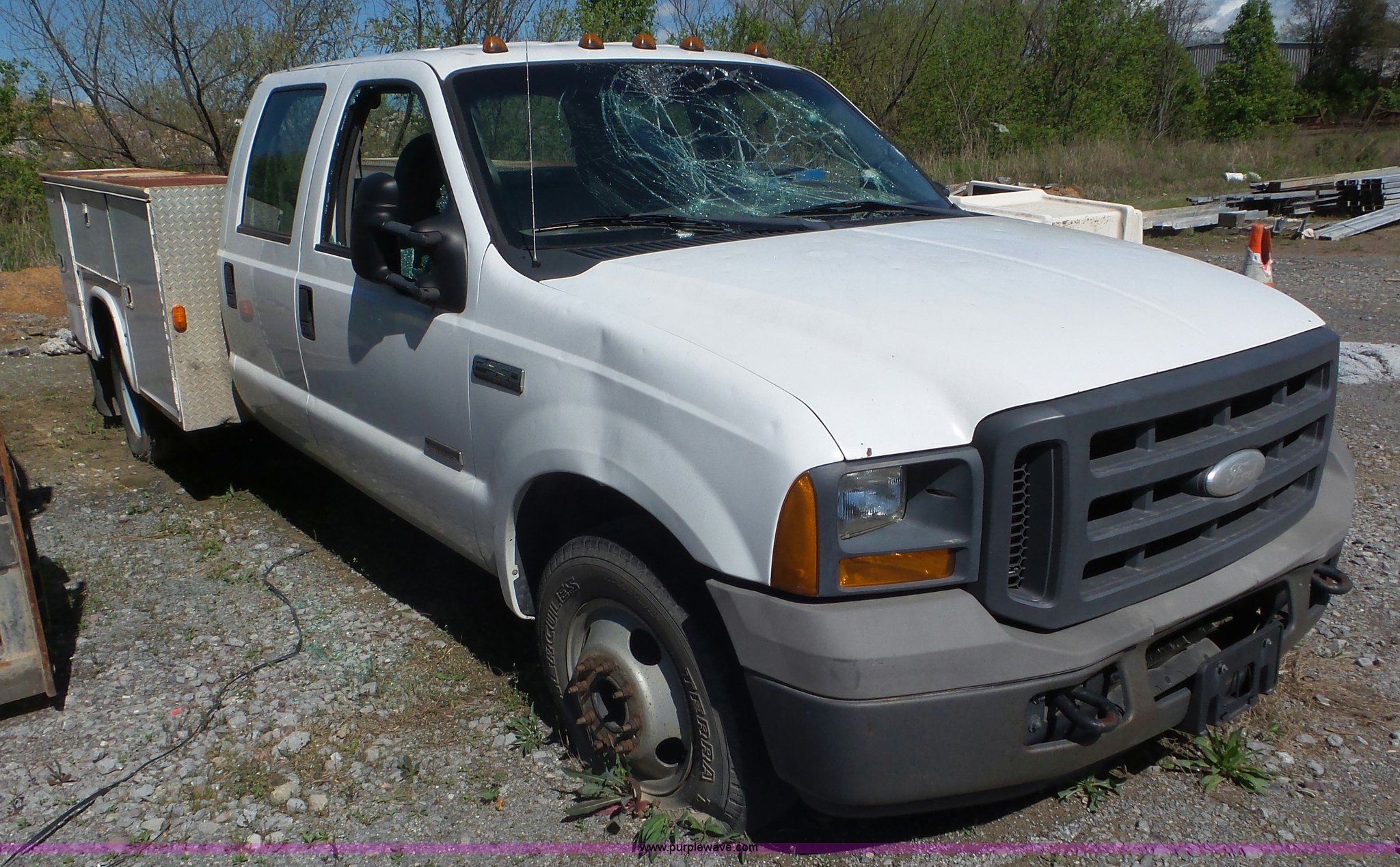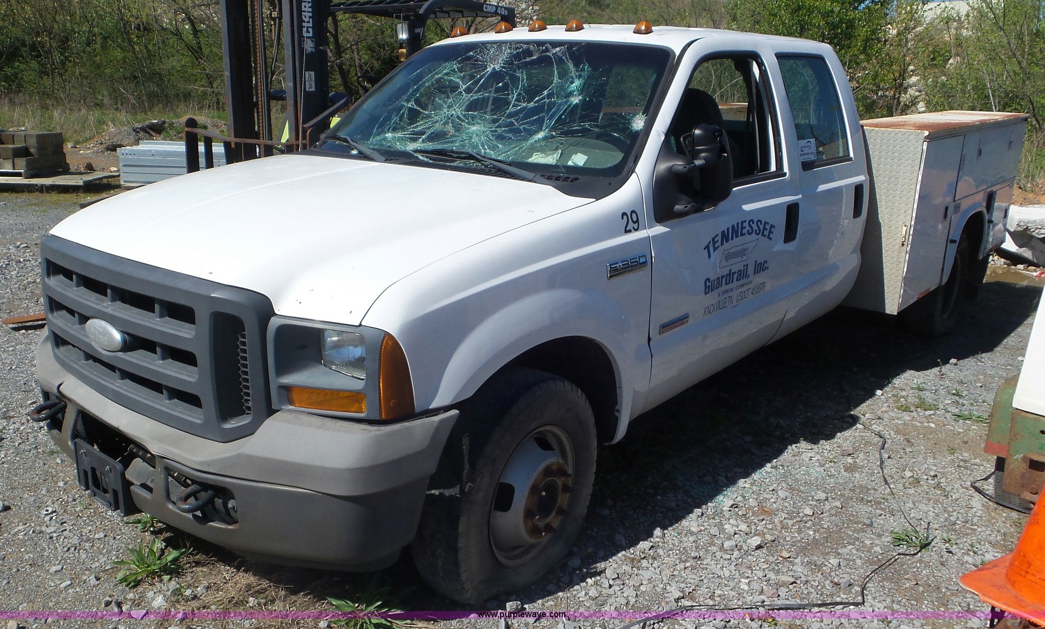 Purple Wave is selling a used Service Truck in Tennessee. This item is a 2005 Ford F450 Super Duty utility truck with the following: Unknown miles on odometer, 6.0L V8 OHV 32V turbo diesel engine, Four speed manual transmission, AC and heat, Tilt, Cruise, AM/FM, Manual windows and locks, Cloth interior, 9'L utility bed, Receiver hitch, 245/75R17 tires, Non-operational engine, Windows broken, Hail damage, Unit# 29