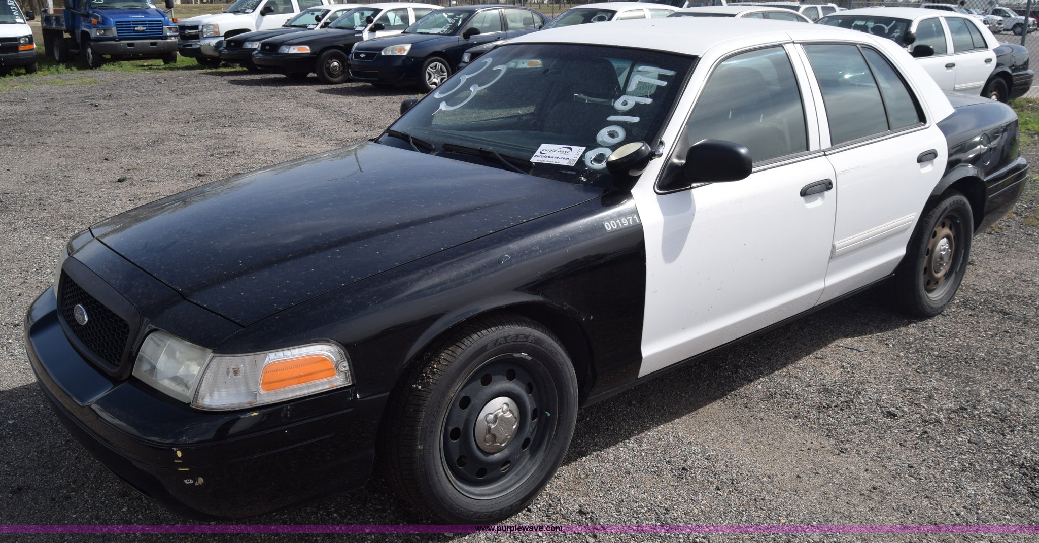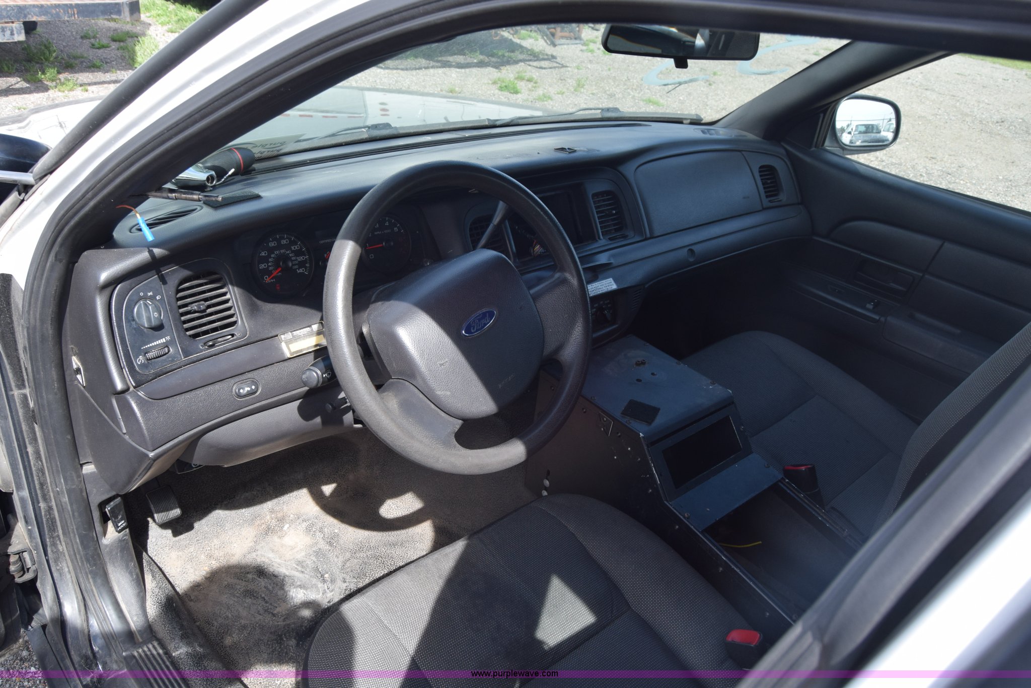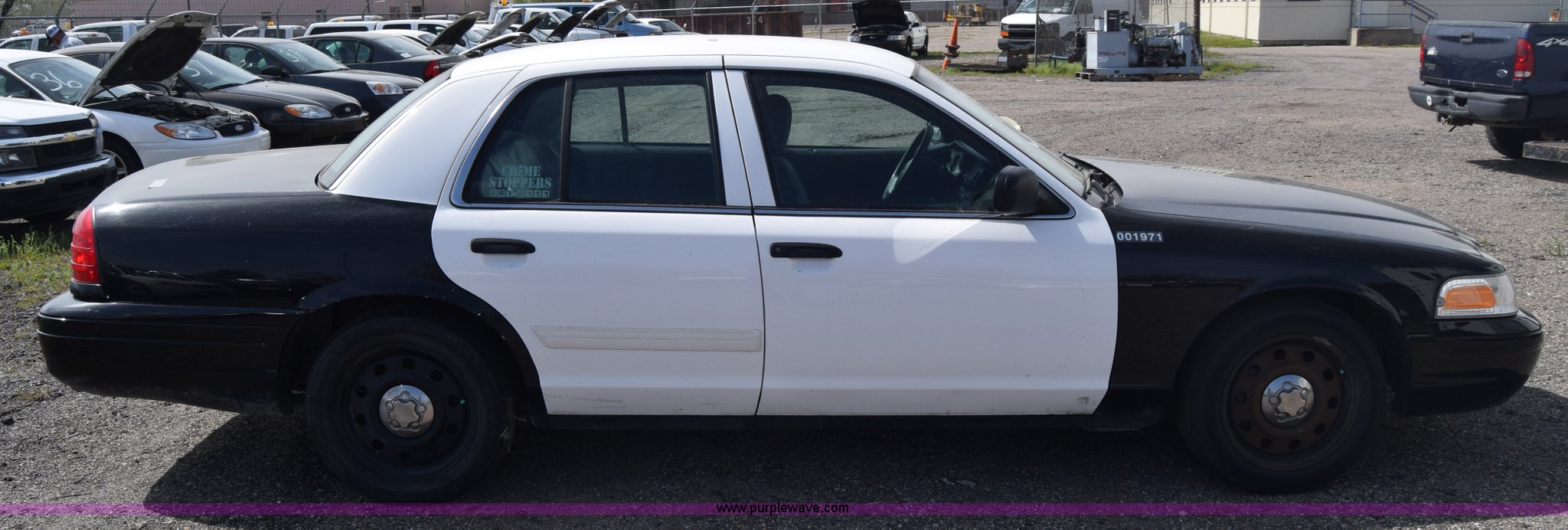 Purple Wave is selling a used Passenger Vehicle in Kansas. This item is a 2009 Ford Crown Victoria Police Interceptor with the following: 144,692 miles on odometer, 4.6L V8 SOHC 16V FFV gas engine, Automatic transmission, AC and heat, Tilt, Power windows, locks, and mirrors, Cloth front interior, Vinyl rear interior, Spotlight, Handle damaged, P235/55R17 tires, Interior/exterior cosmetic damage, Port holes in roof and trunk, Scratches, Dents, Unit# 001971