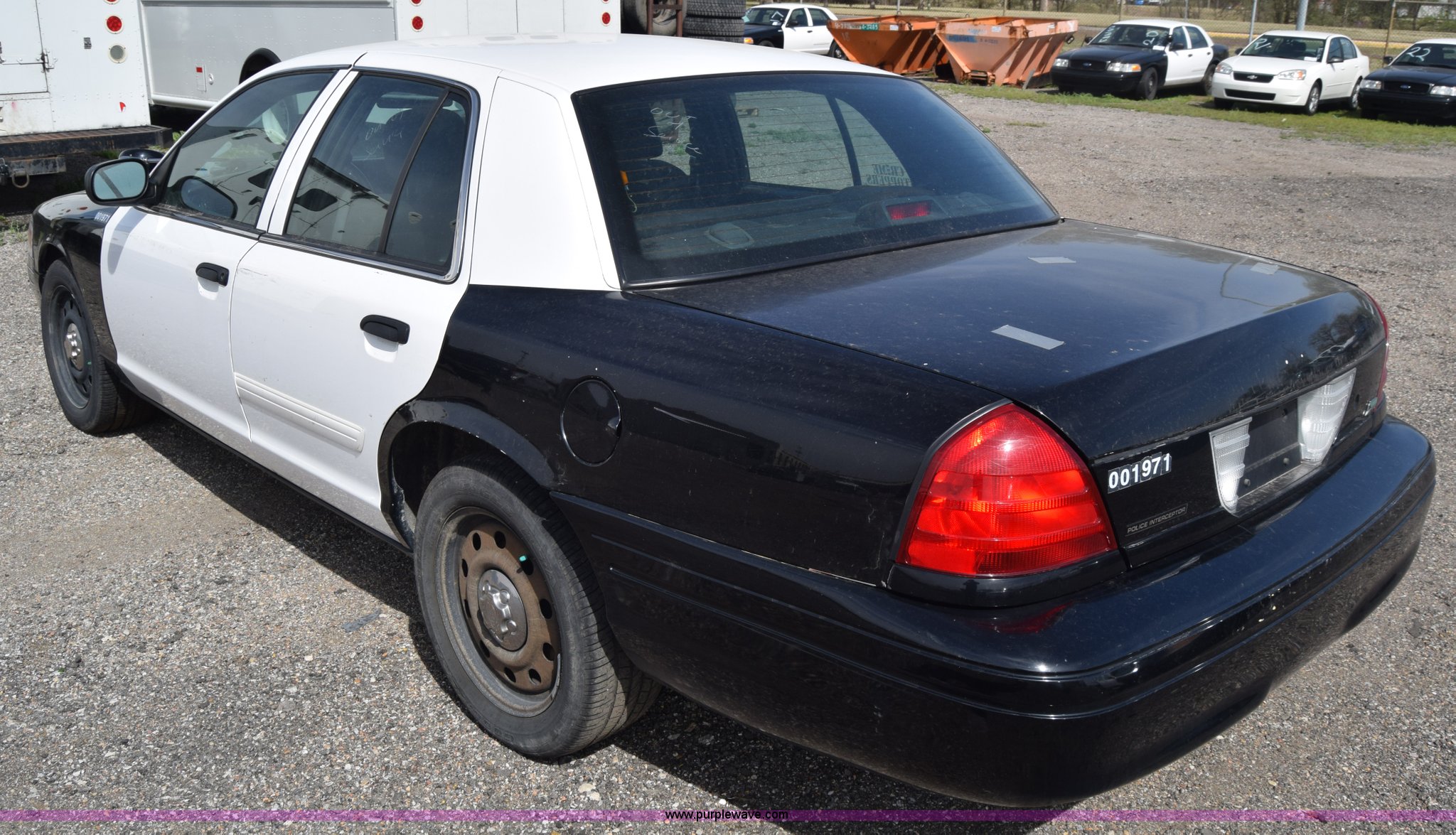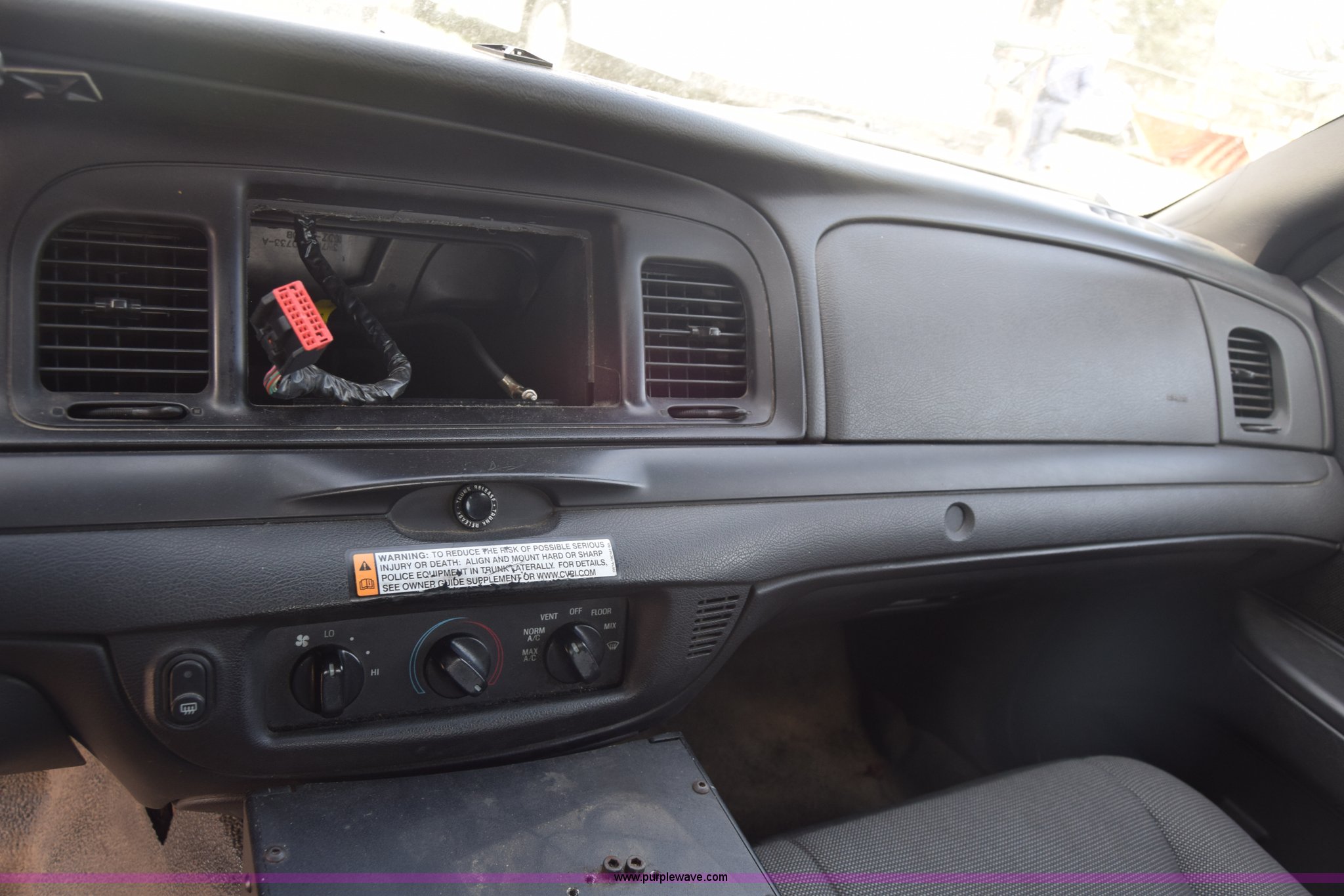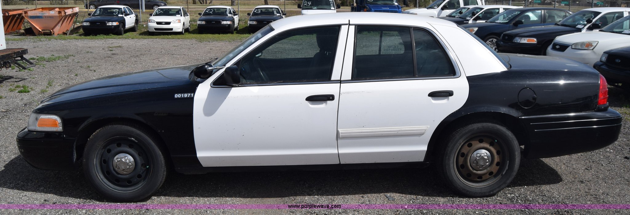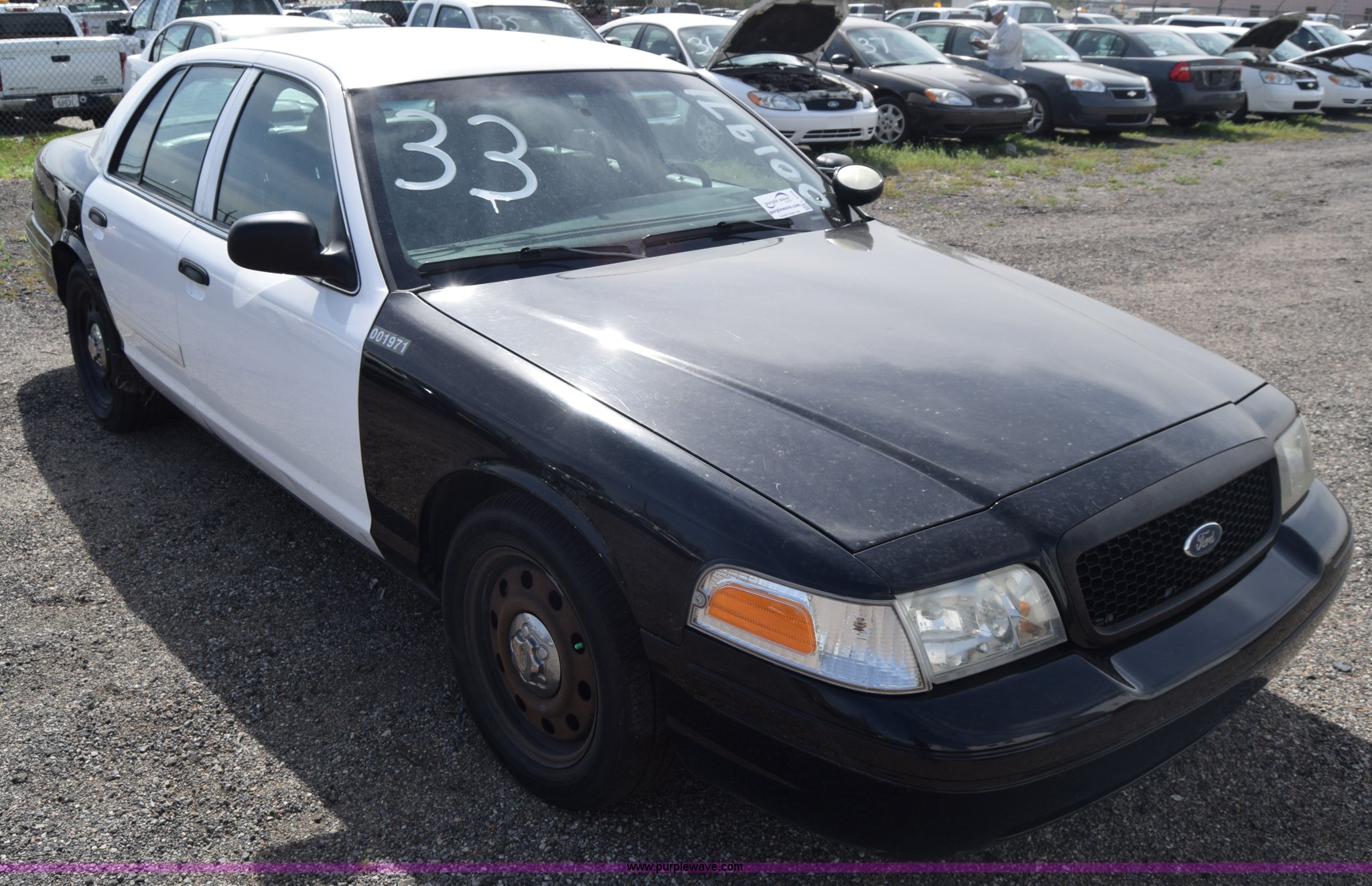 Purple Wave is selling a used Passenger Vehicle in Kansas. This item is a 2009 Ford Crown Victoria Police Interceptor with the following: 144,692 miles on odometer, 4.6L V8 SOHC 16V FFV gas engine, Automatic transmission, AC and heat, Tilt, Power windows, locks, and mirrors, Cloth front interior, Vinyl rear interior, Spotlight, Handle damaged, P235/55R17 tires, Interior/exterior cosmetic damage, Port holes in roof and trunk, Scratches, Dents, Unit# 001971