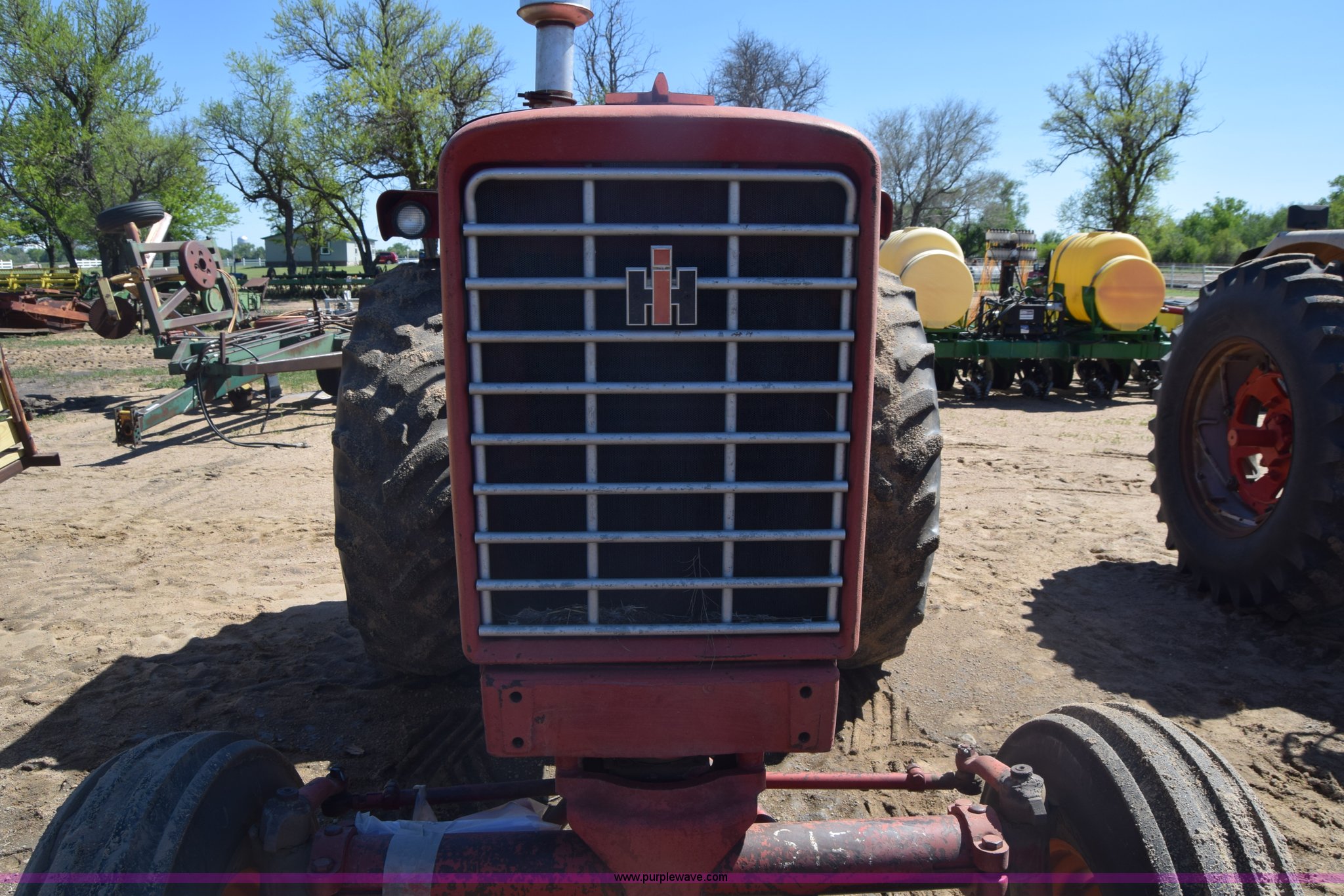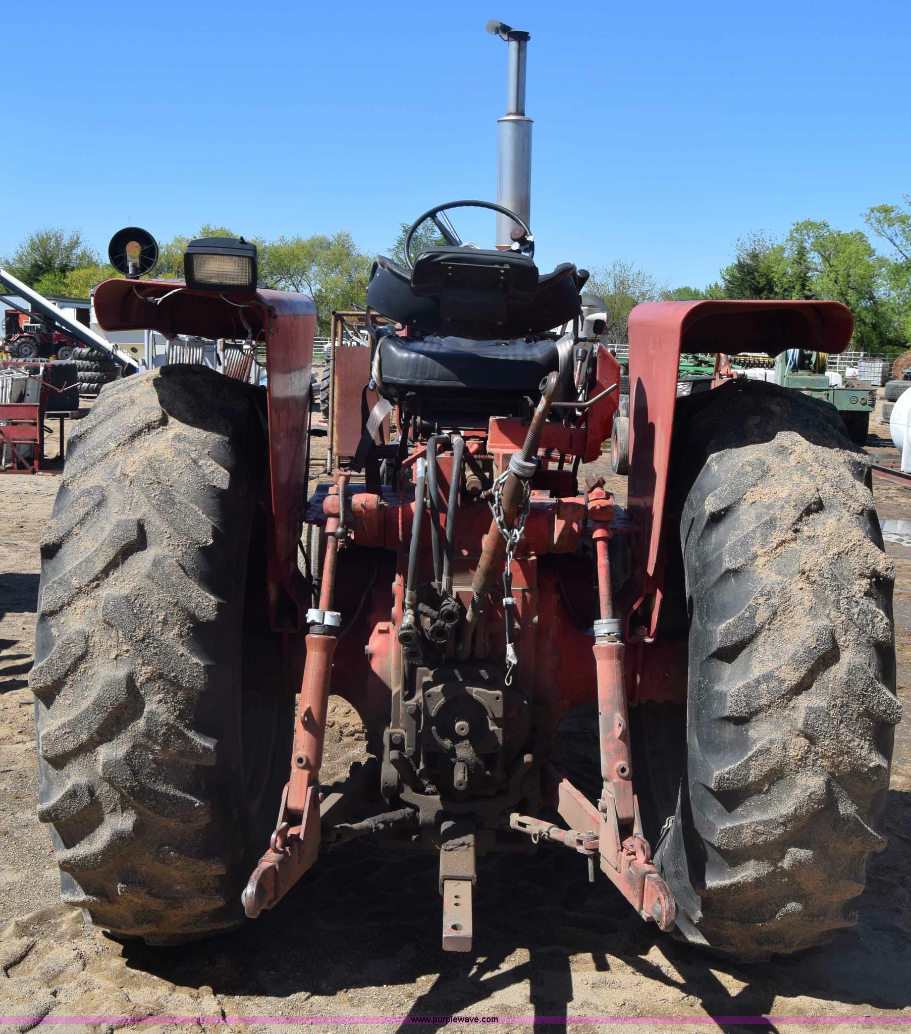 Purple Wave is selling a used Tractor in Kansas. This item is a International 756 tractor with the following: 8,734 hours on meter, Six cylinder diesel engine, Manual transmission, 8F-4R gears, Work lights, 540/1000 PTO, (2) rear hydraulic remote sets, 33 gallon fuel tank, 101" wheelbase, 10.00-16 front tires, 18.4-34 rear tires, Manuals, Serial 15483