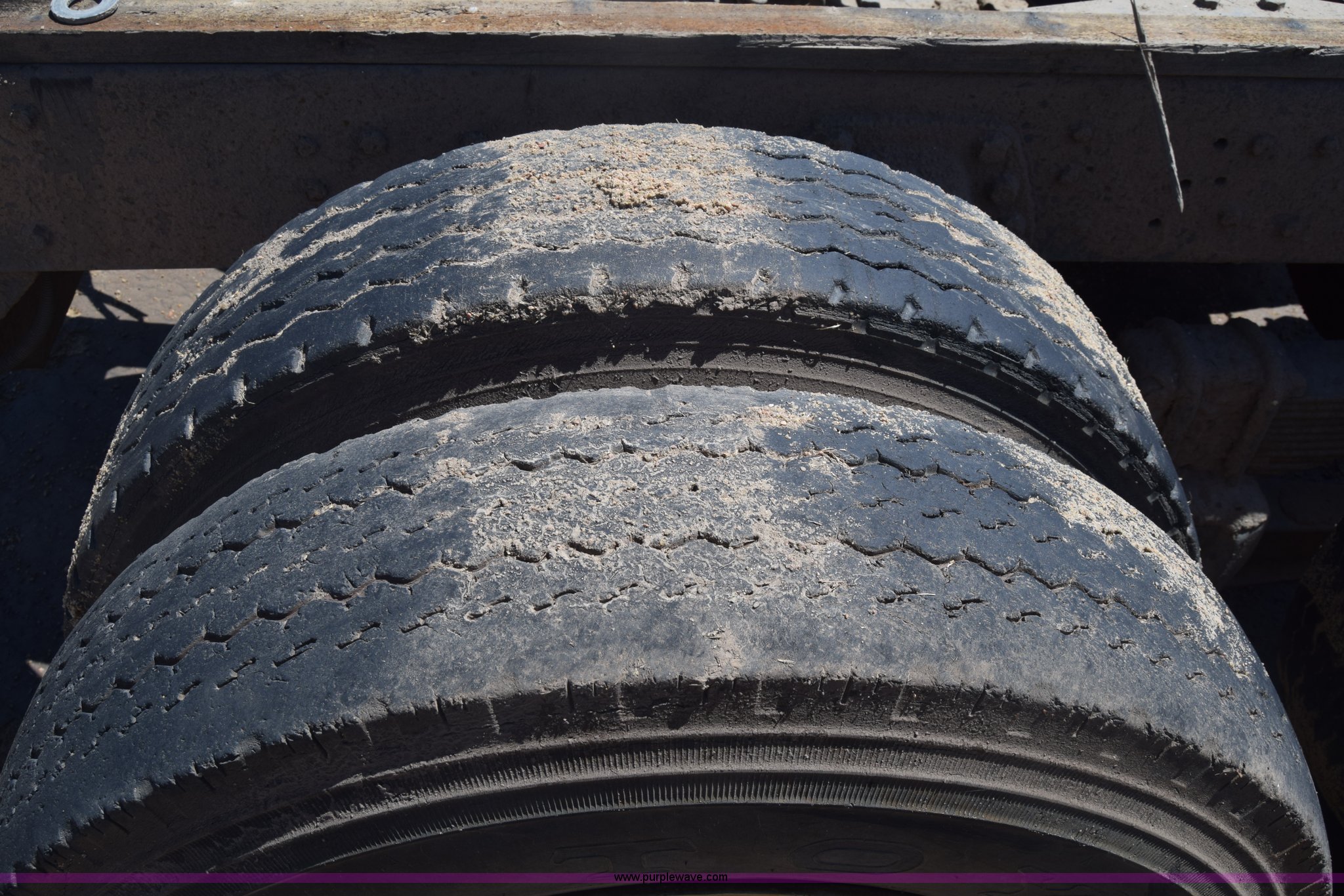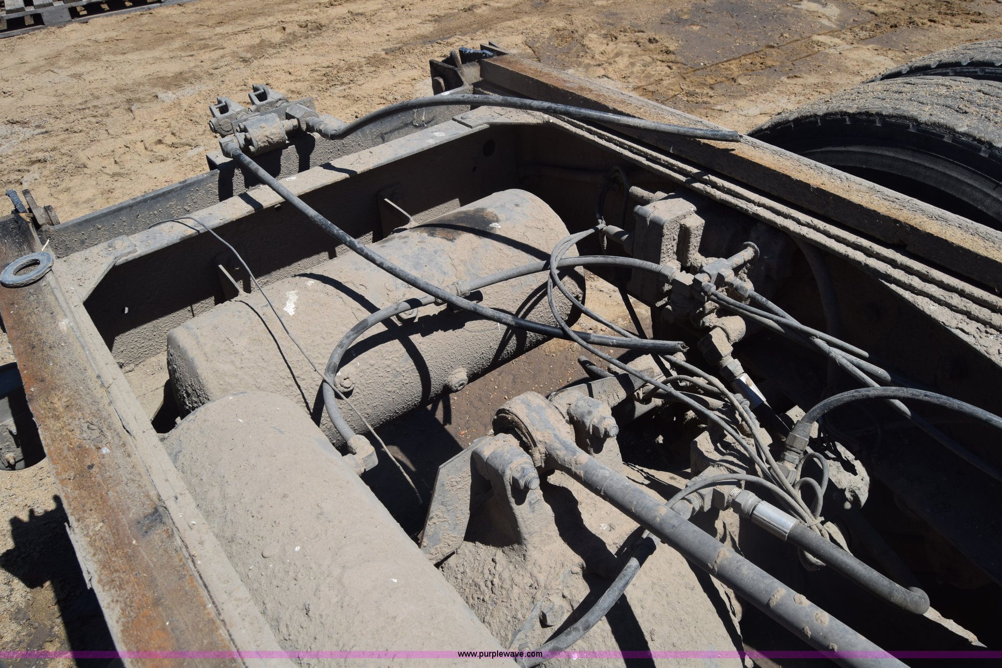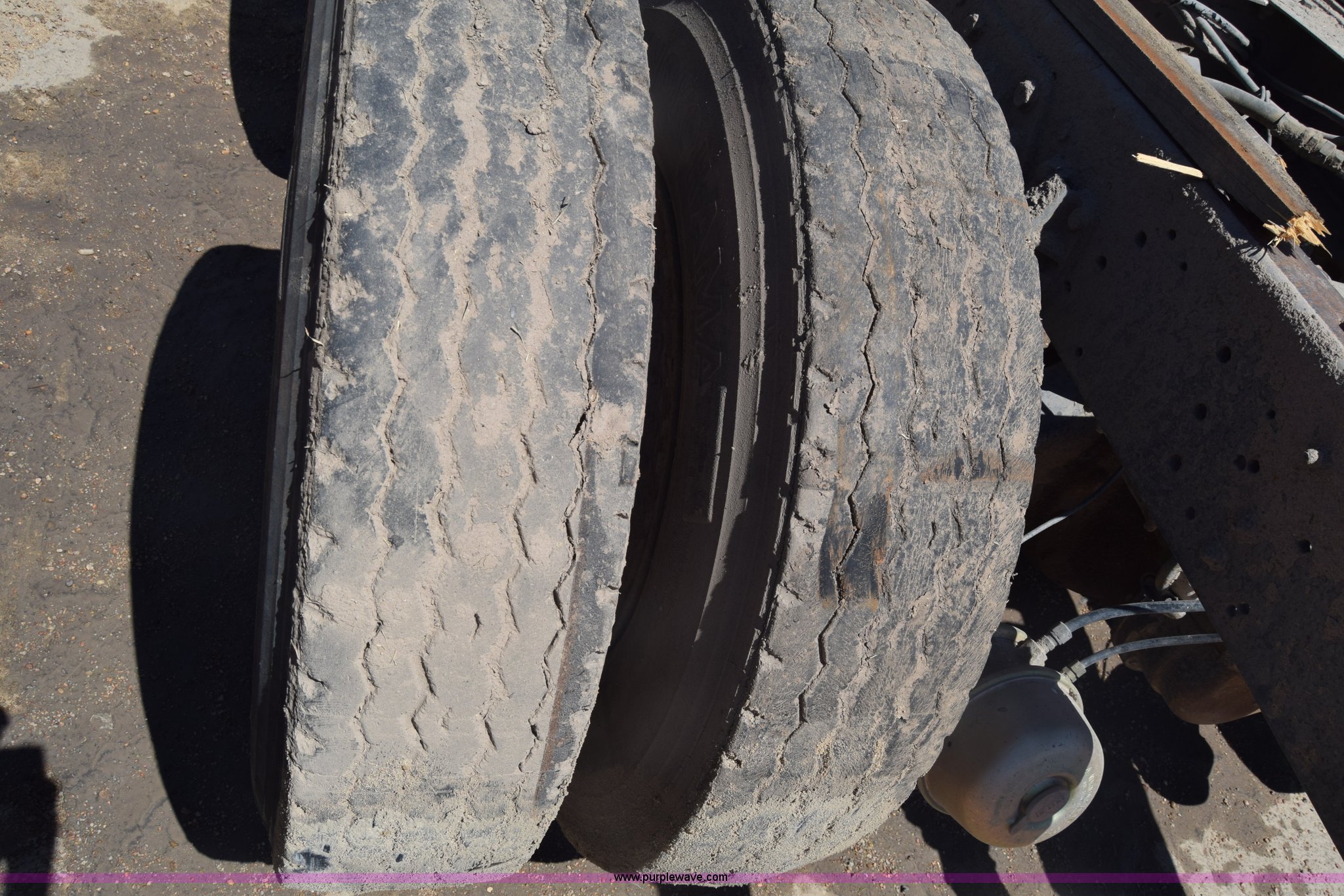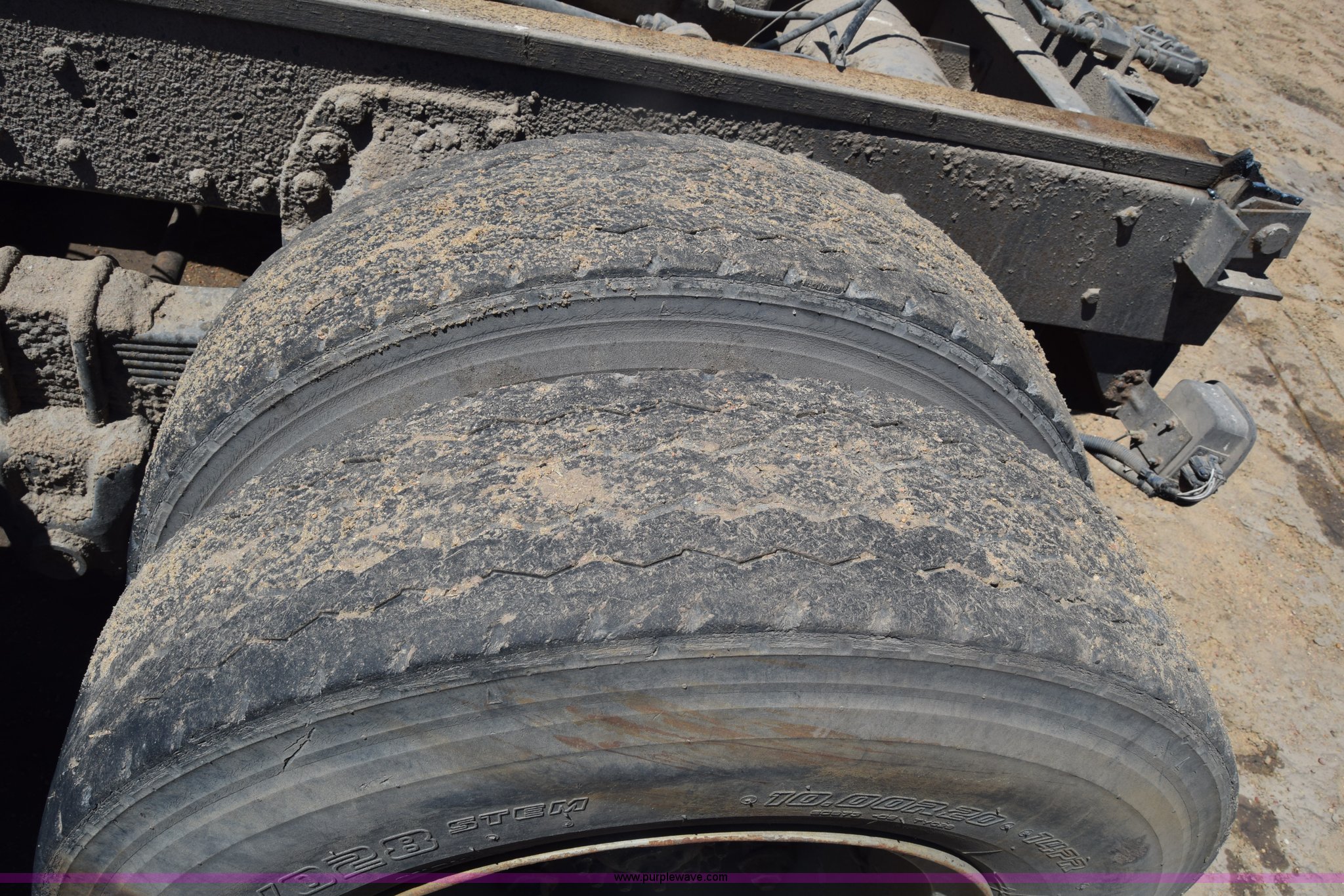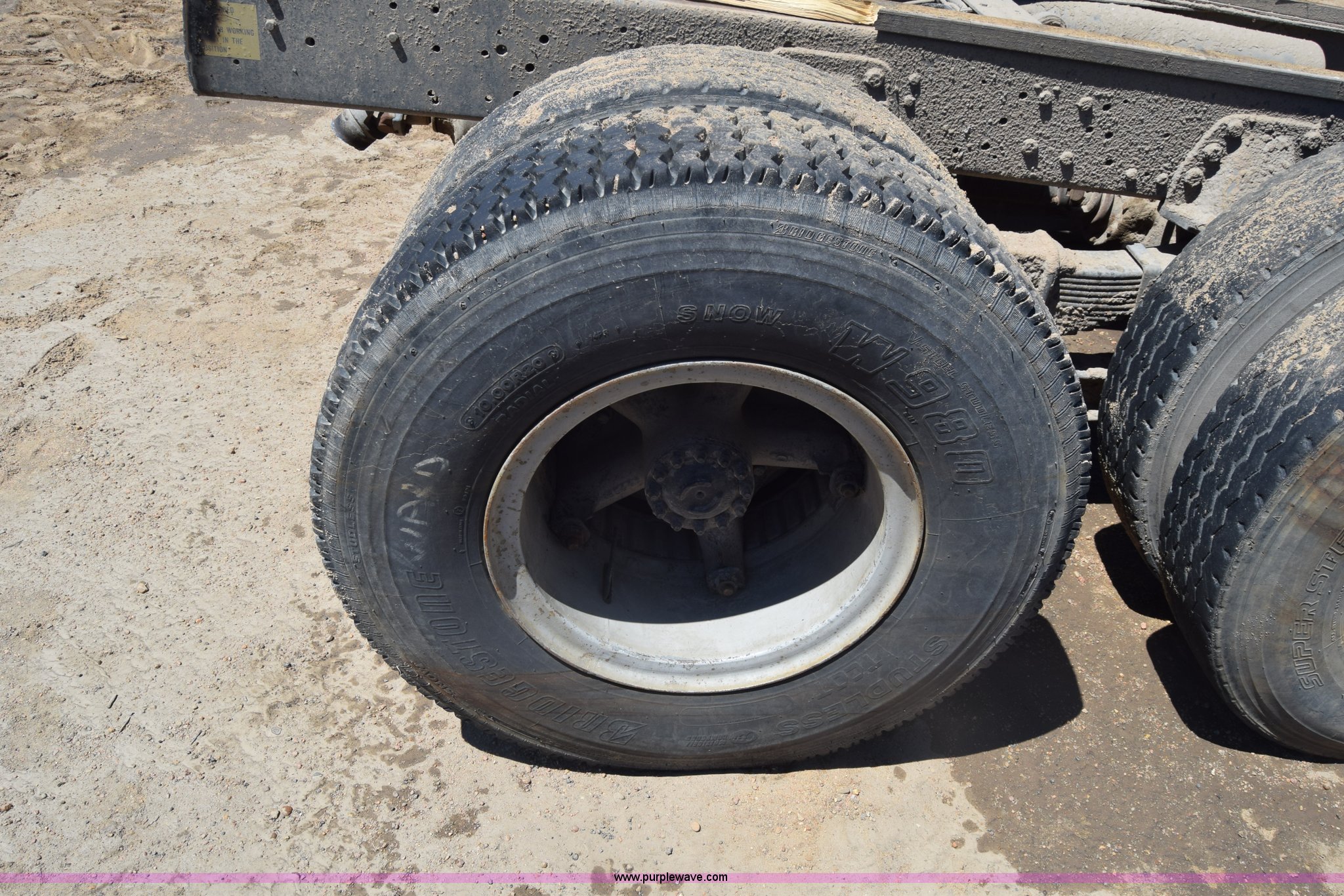 Purple Wave is selling a used Truck Part and Attach. in Kansas. This item is a Semi truck rear end with the following: Lights, Pintle hitch, Spring suspension, Air brakes, Tandem axle, 10.00R20 tires