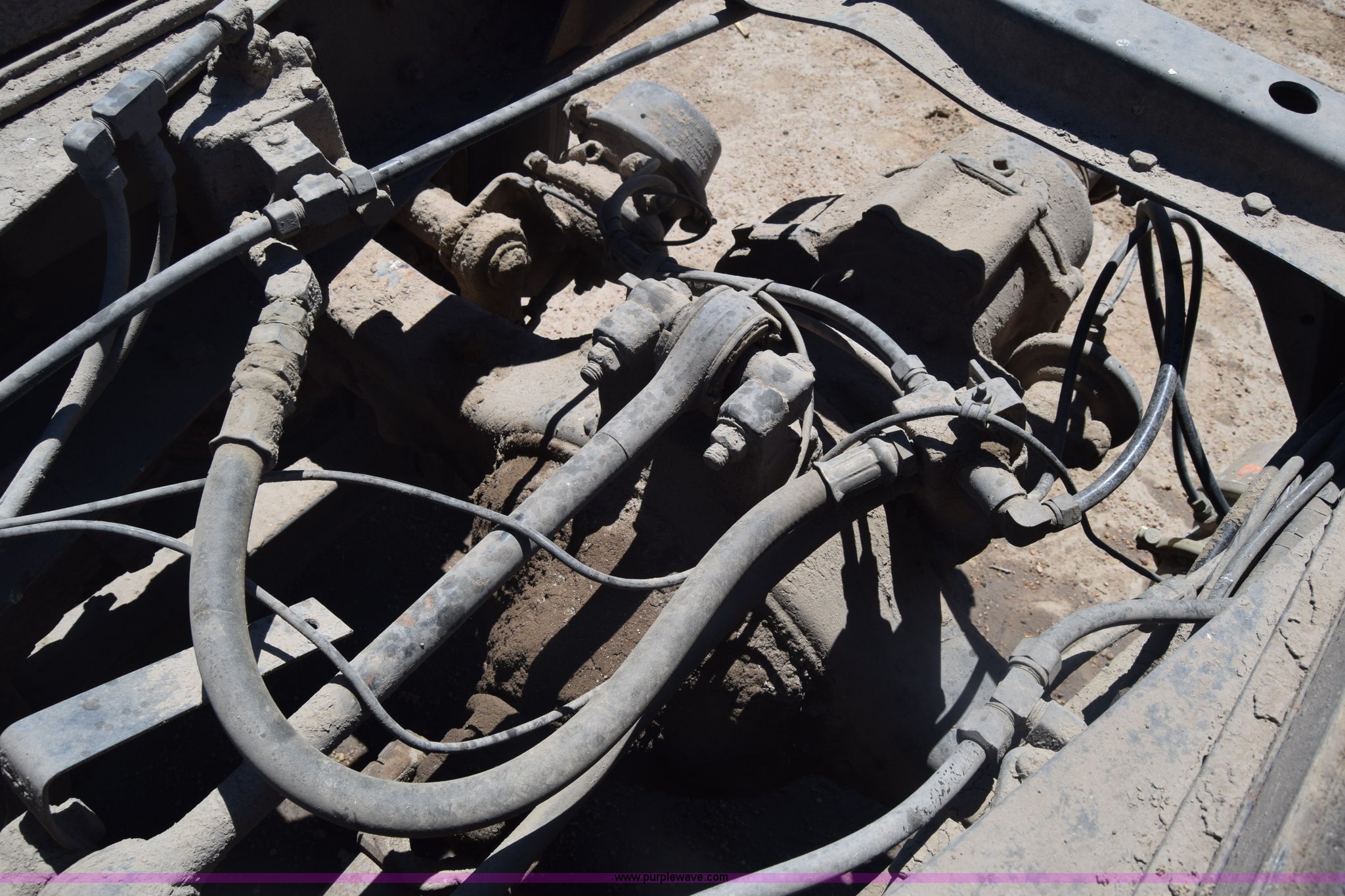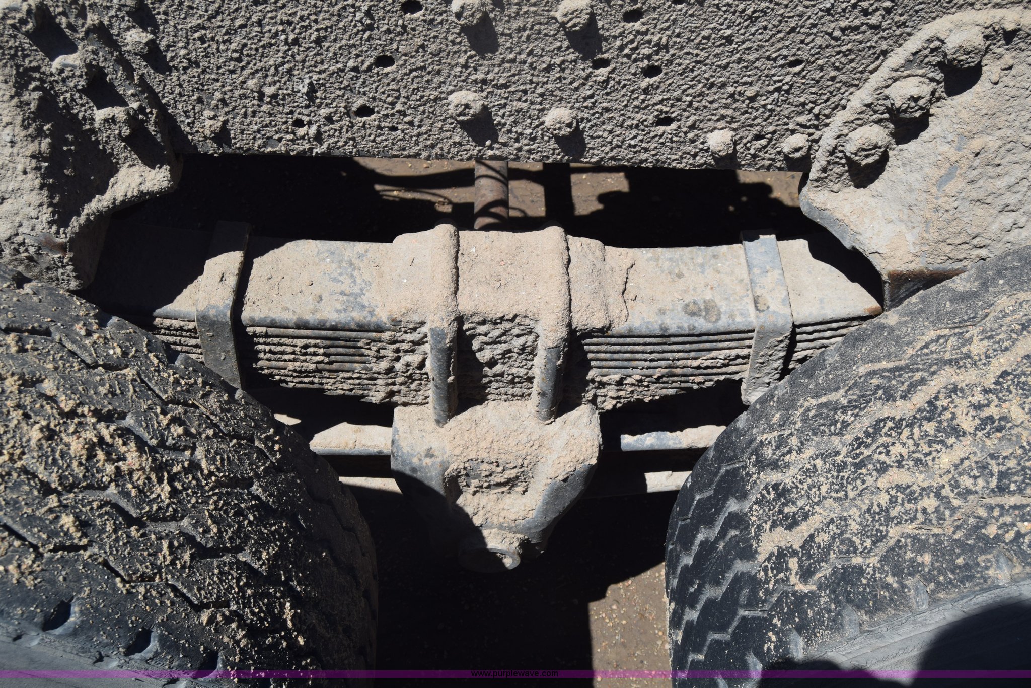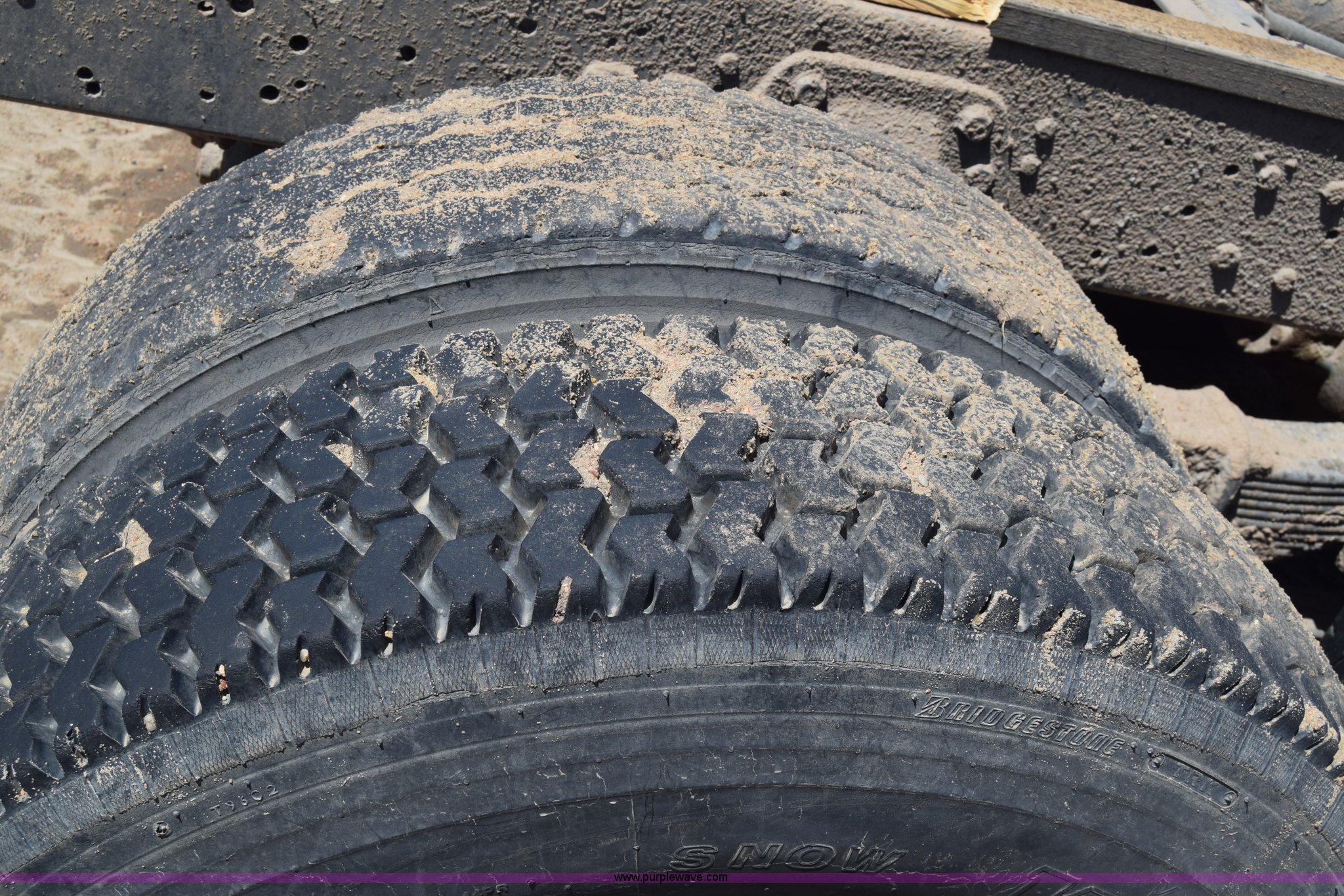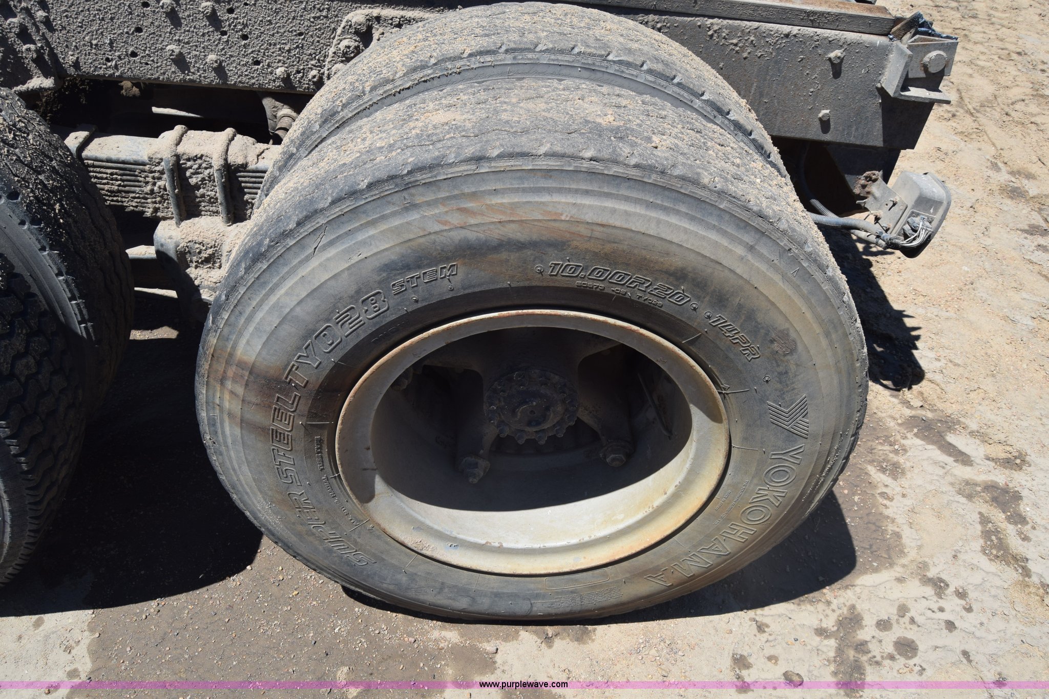 Purple Wave is selling a used Truck Part and Attach. in Kansas. This item is a Semi truck rear end with the following: Lights, Pintle hitch, Spring suspension, Air brakes, Tandem axle, 10.00R20 tires