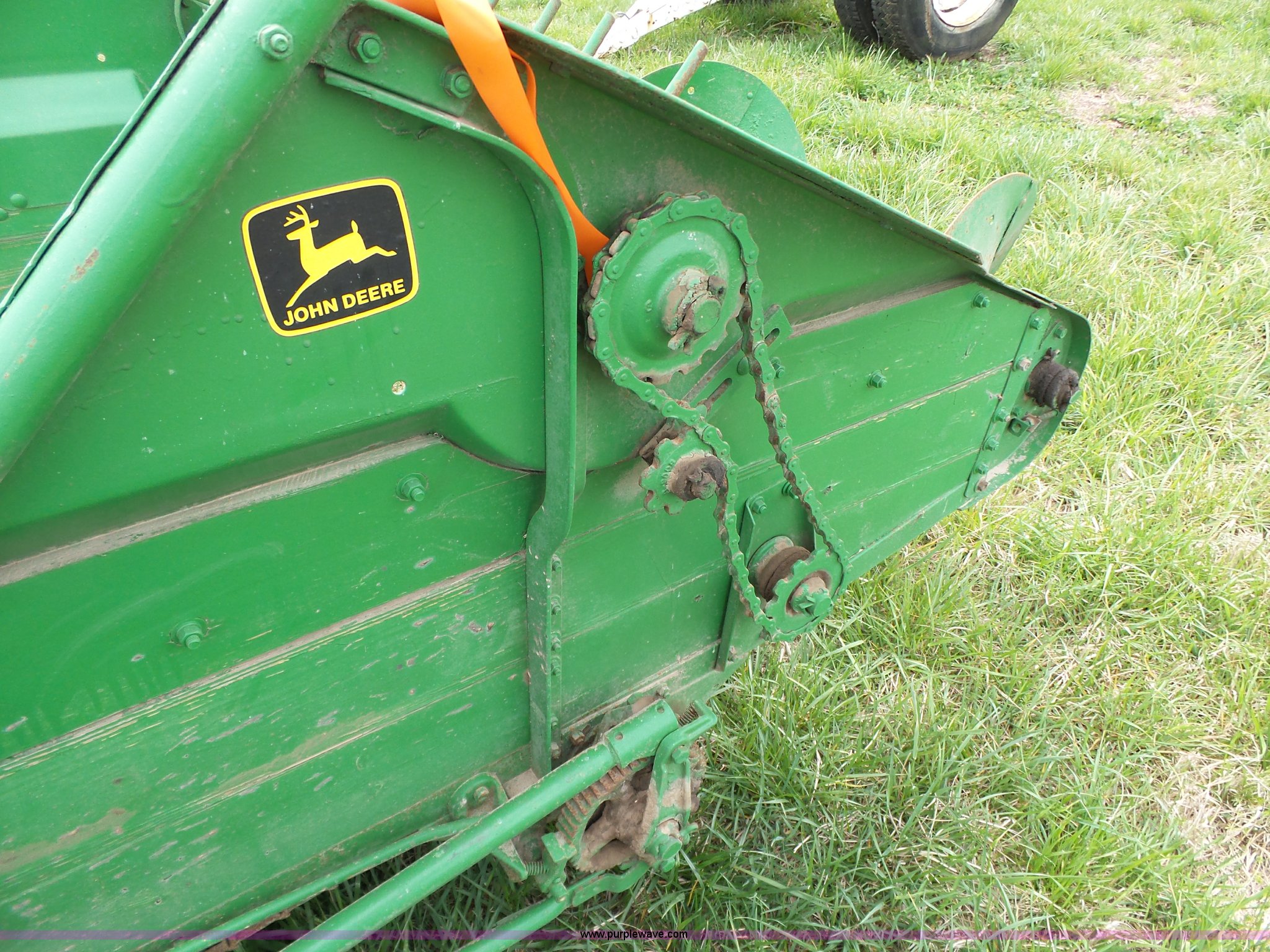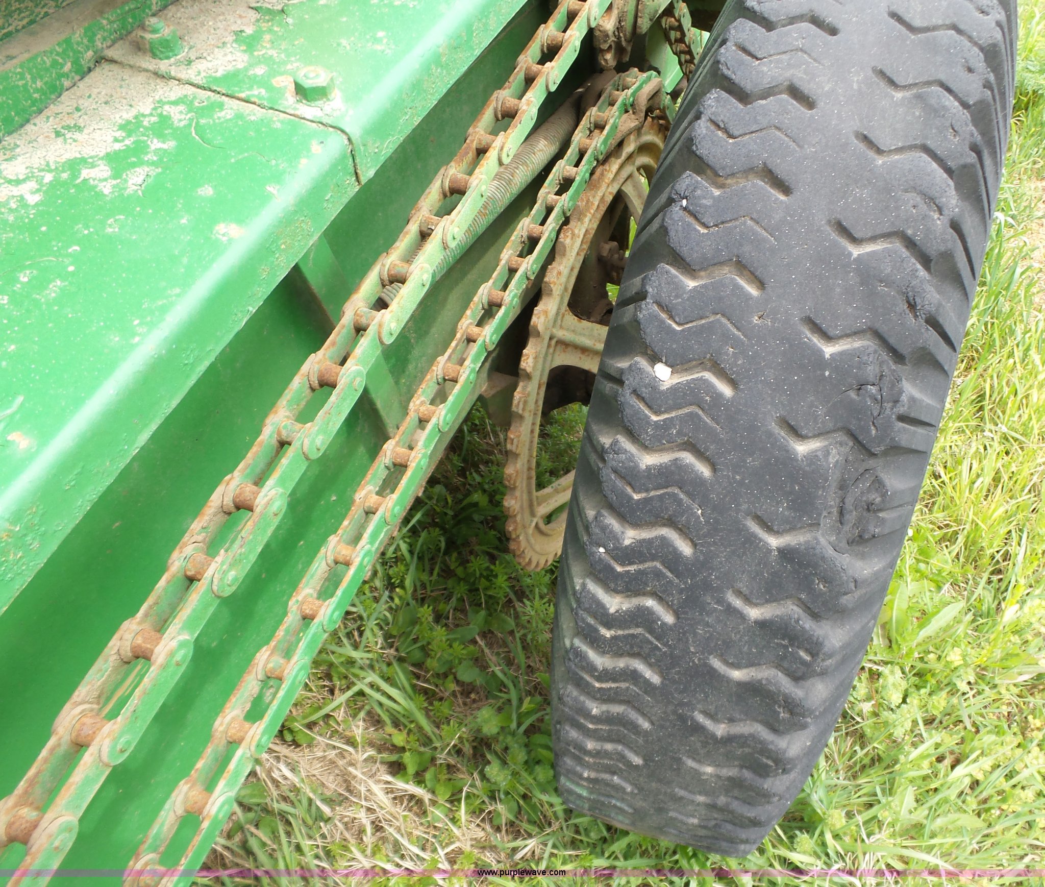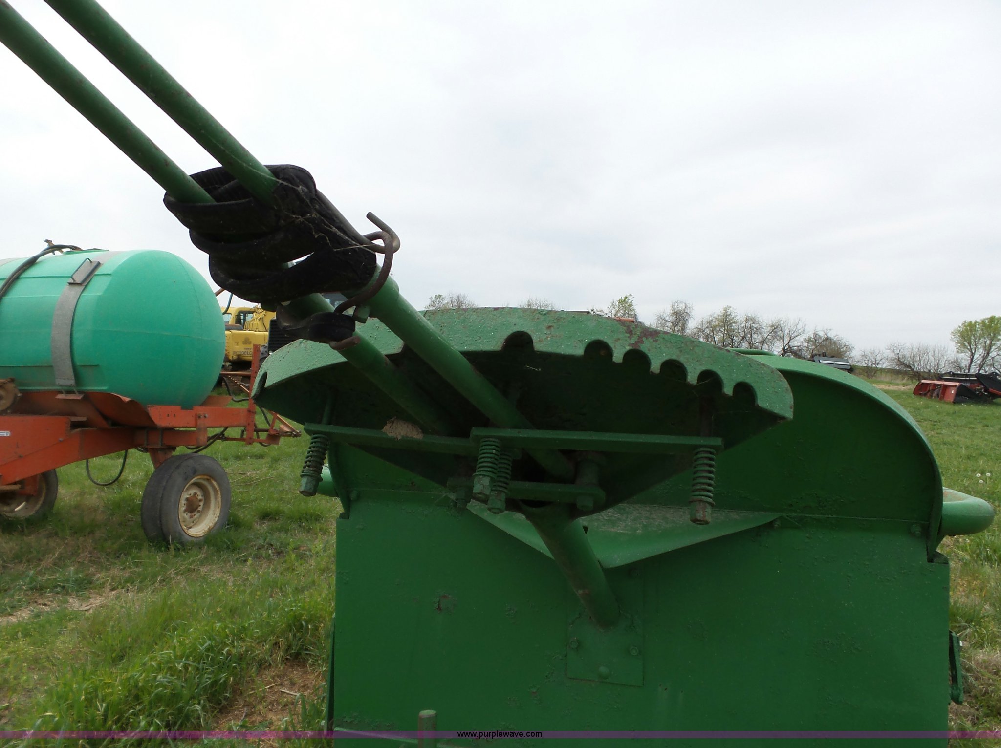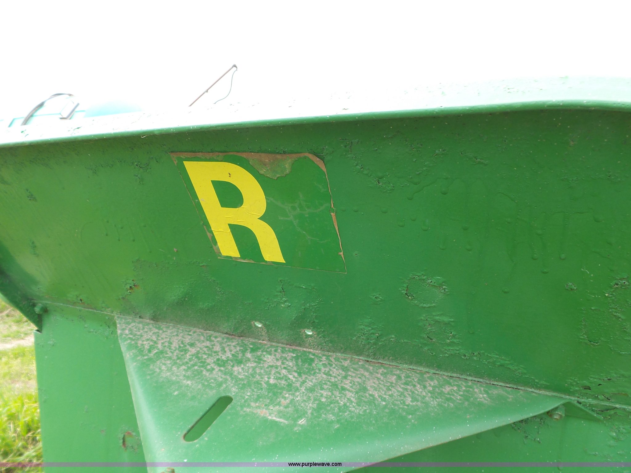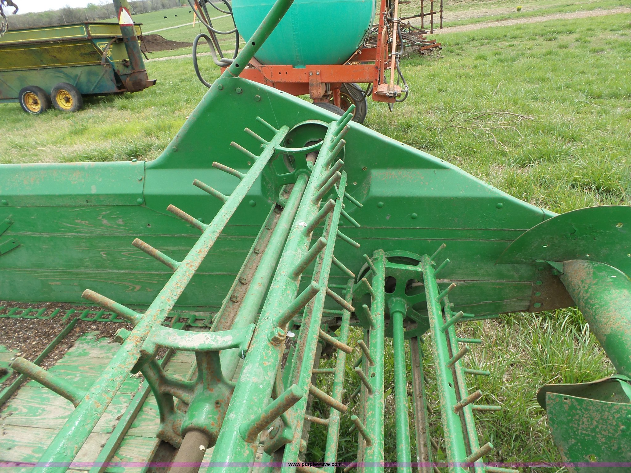 Purple Wave is selling a used Manure Spreader in Missouri. This item is a John Deere R manure spreader with the following: 10'L x 40"W, Ground drive, Pin hitch, 8.25-20 tires