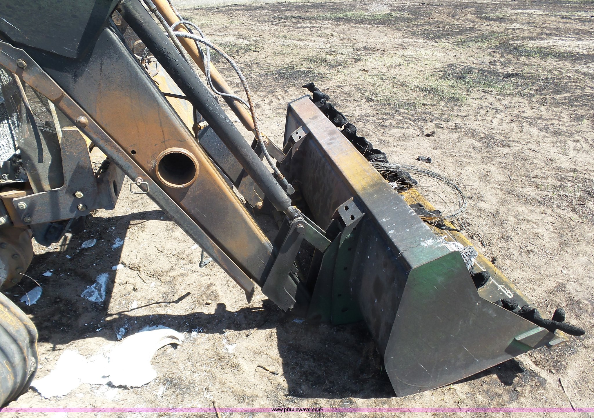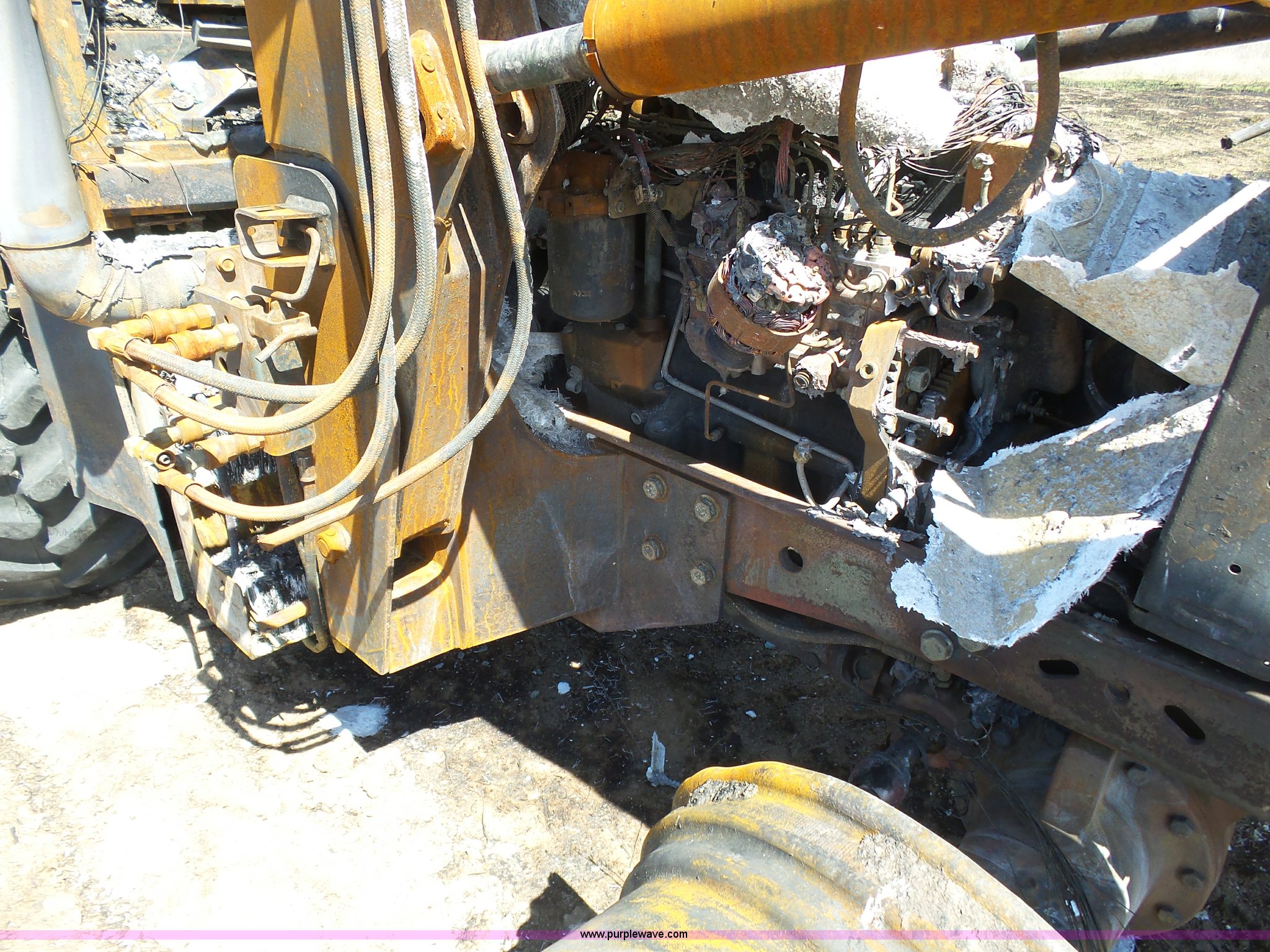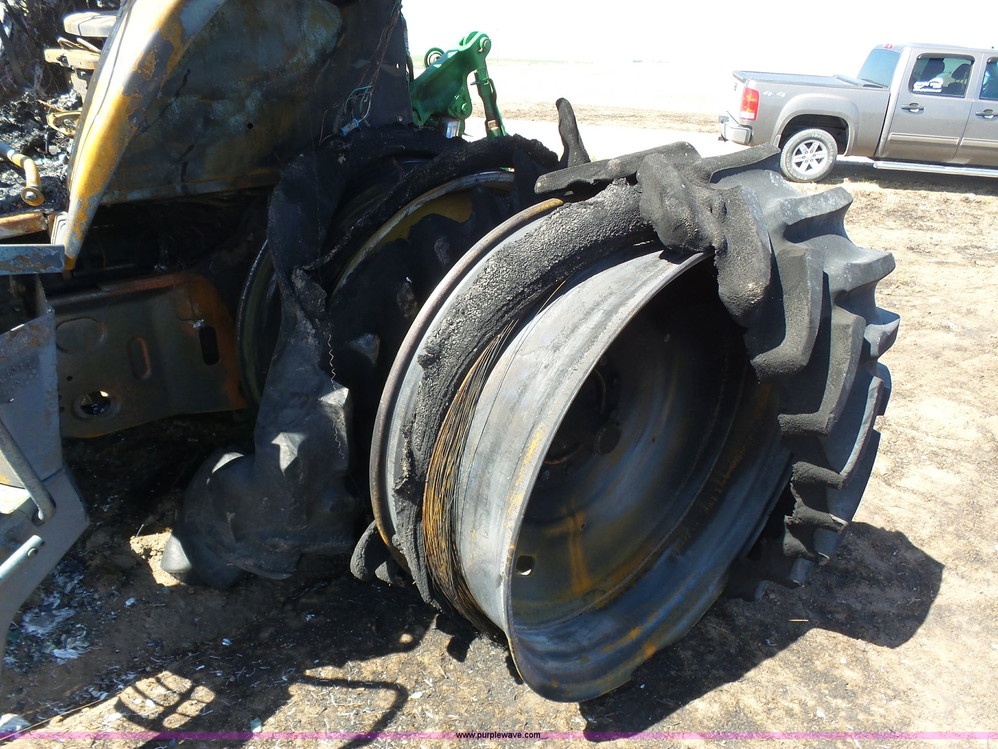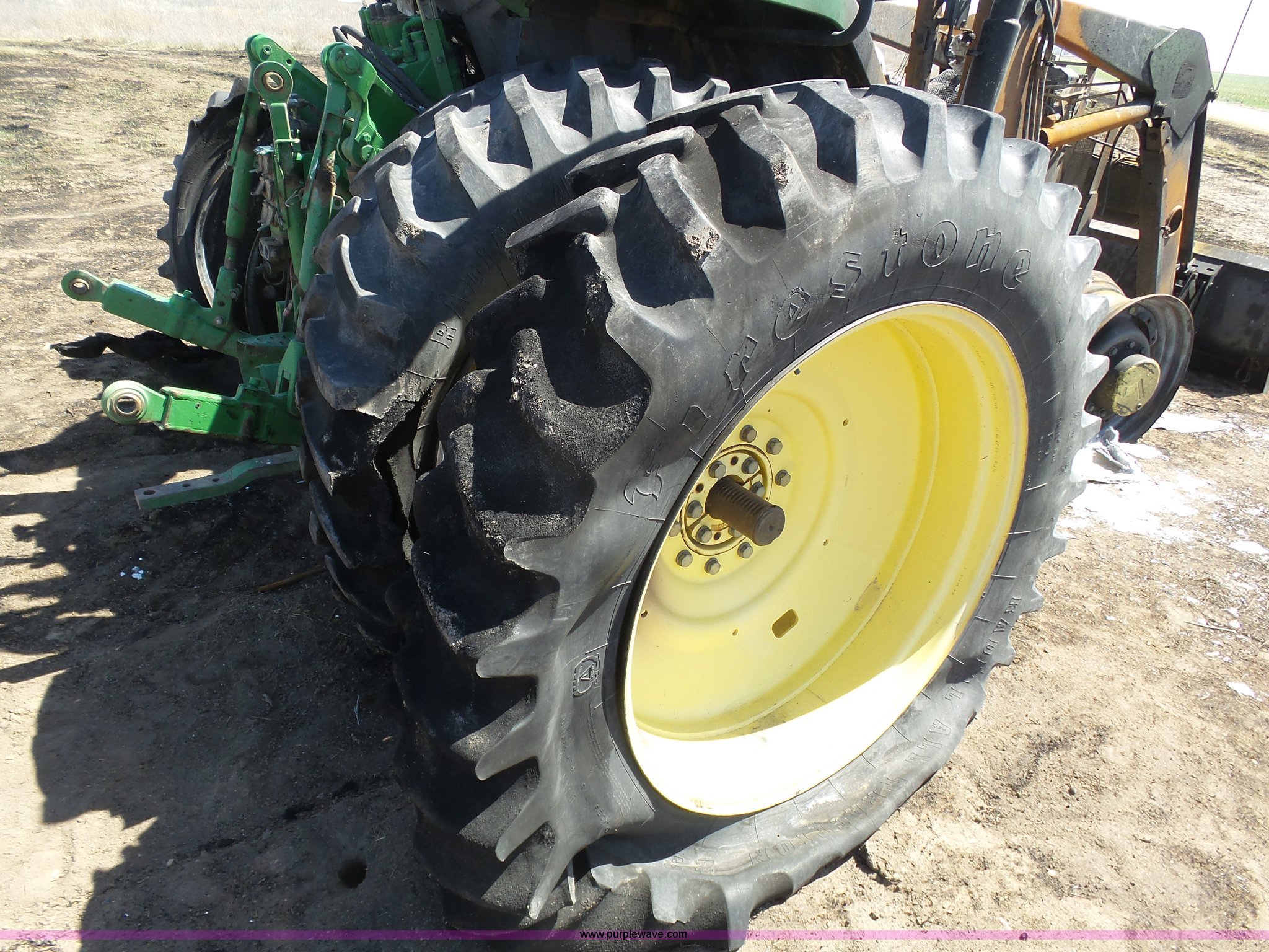 Purple Wave is selling a used Tractor in Kansas. This item is a 2002 John Deere 7810 MFWD tractor with the following: Unknown hours on meter, John Deere 6081TRW10 8.1L six cylinder turbo diesel engine, Serial RG6081T149061, Powershift transmission, 16F-16R gears, Suspension seat, John Deere loader, 85"W bucket, Quick attach, Three point, Seven pin outlet, 1000 PTO, Rear hydraulic remote sets, 18.4R42 dual rear tires, Non-operational unit, Fire damage, Serial 7810072634