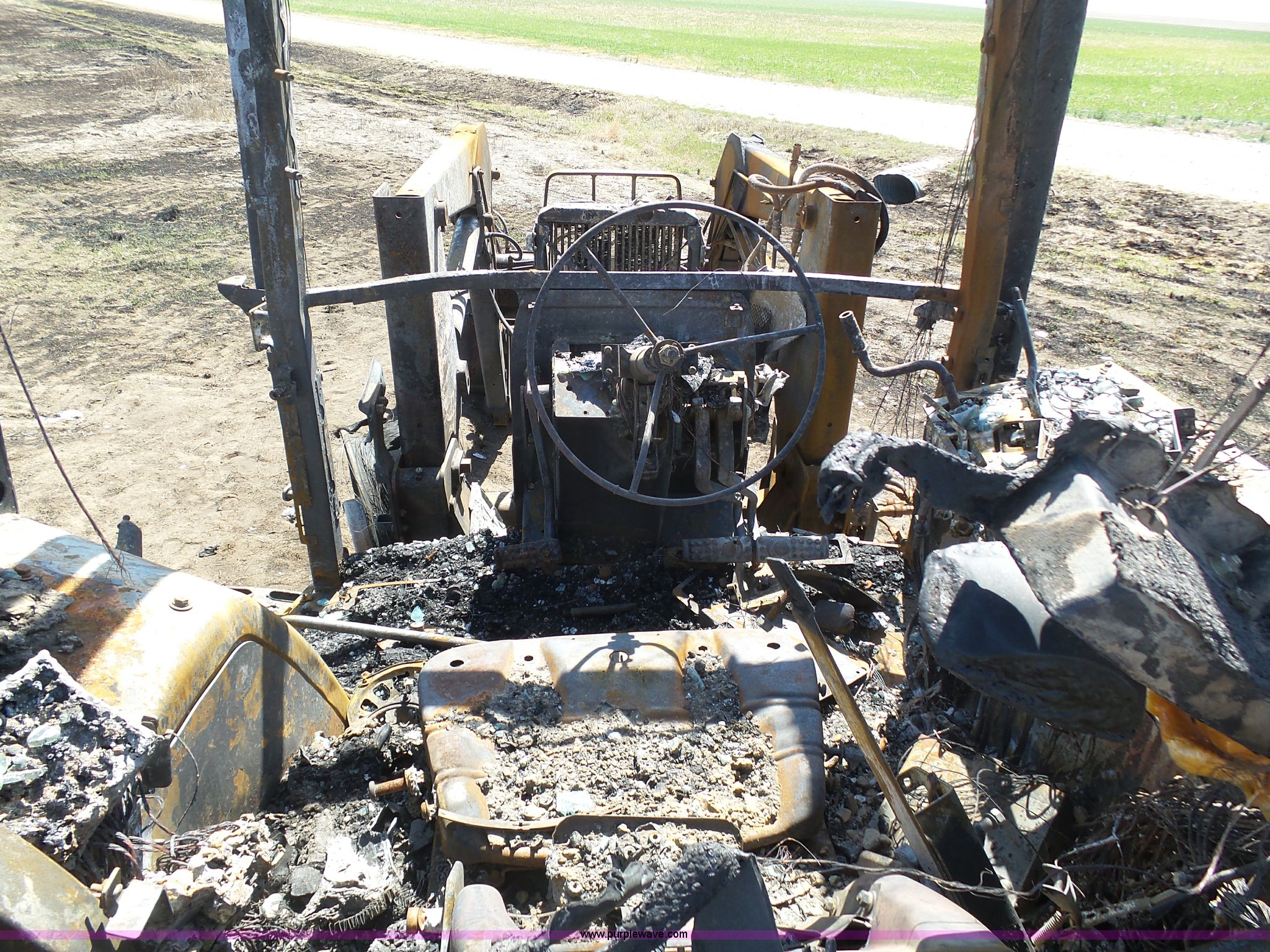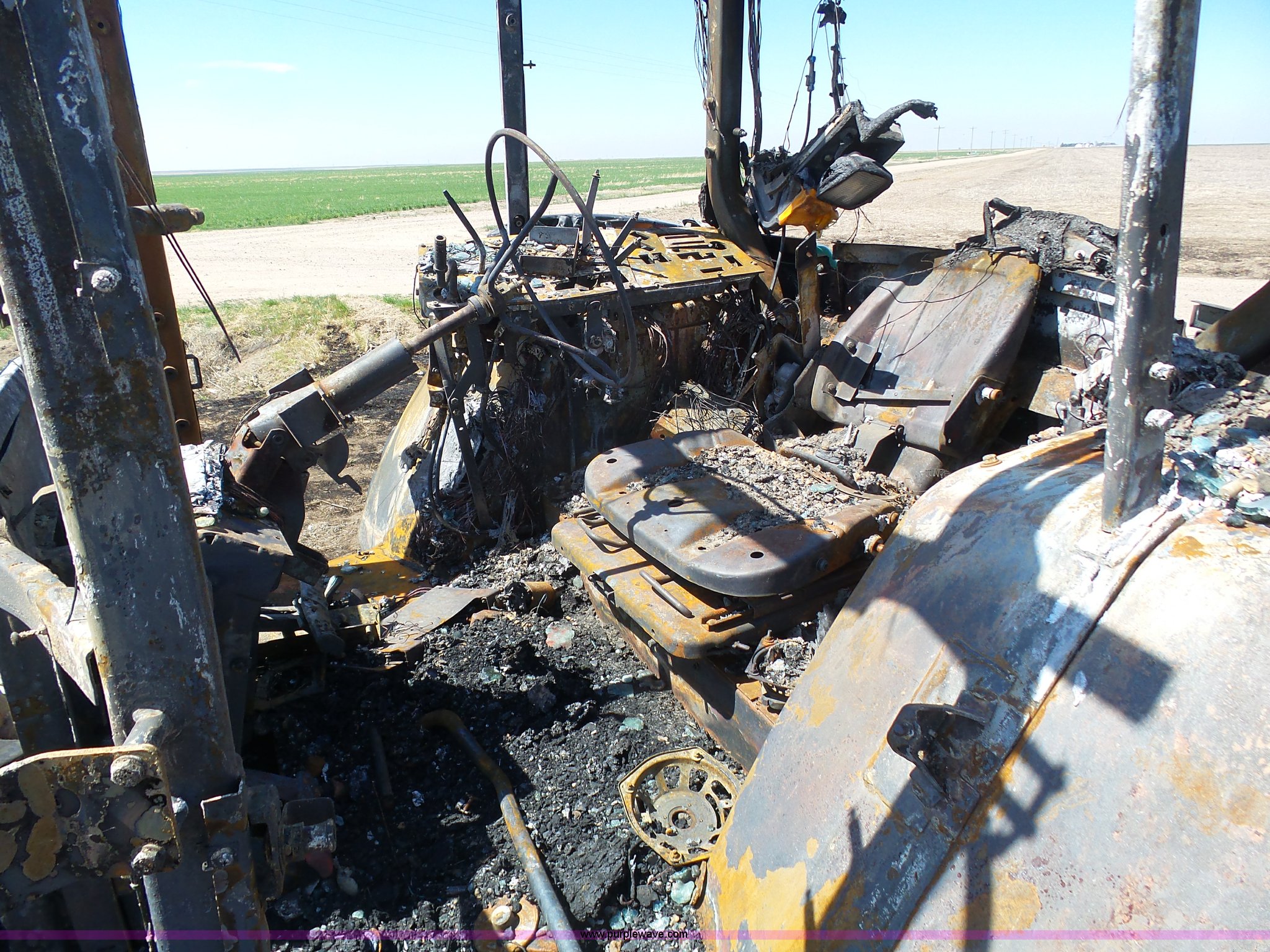 2002 John Deere 7810 MFWD tractor. Unknown hours on meter, John Deere 6081TRW10 8.1L six cylinder turbo diesel engine Serial RG6081T149061, Powershift transmission 16F-16R gears, Suspension seat, John Deere loader 85"W bucket, Quick attach, Three point, Seven pin outlet, 1000 PTO, Rear hydraulic remote sets, 18.4R42 dual rear tires, Non-operational unit, Fire damage, Serial 7810072634. Farm Bureau Financial Services. Garden City, KS 67846