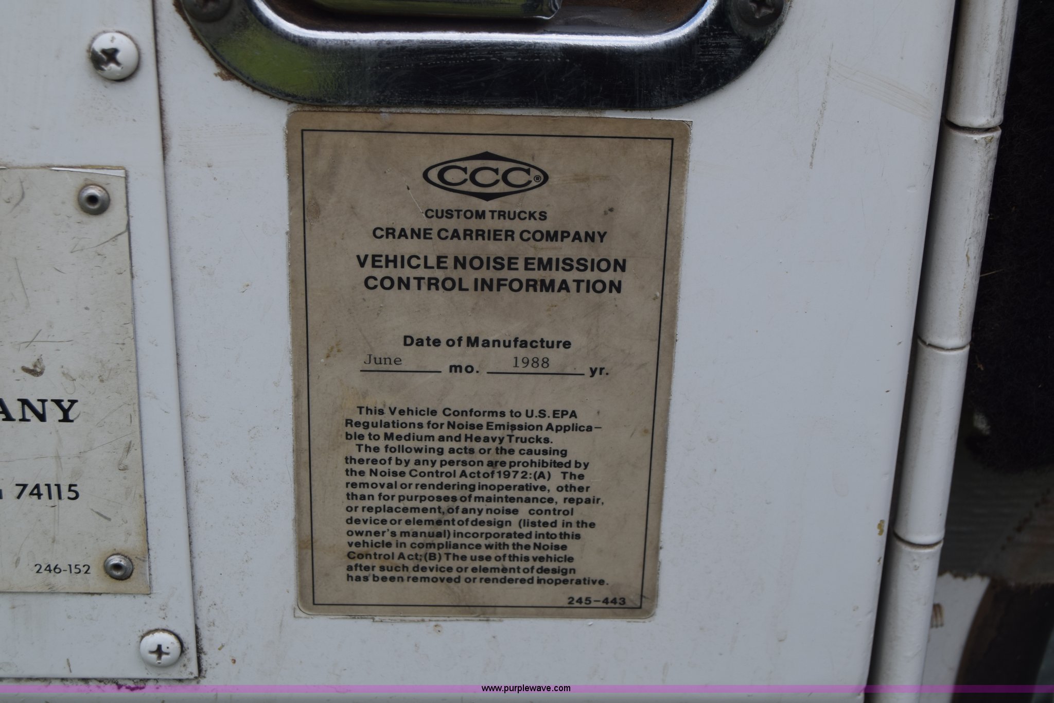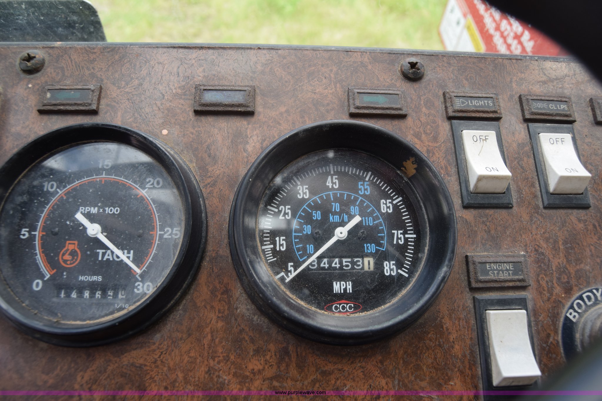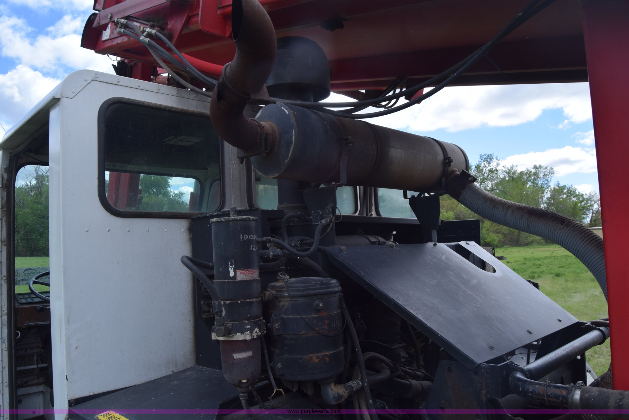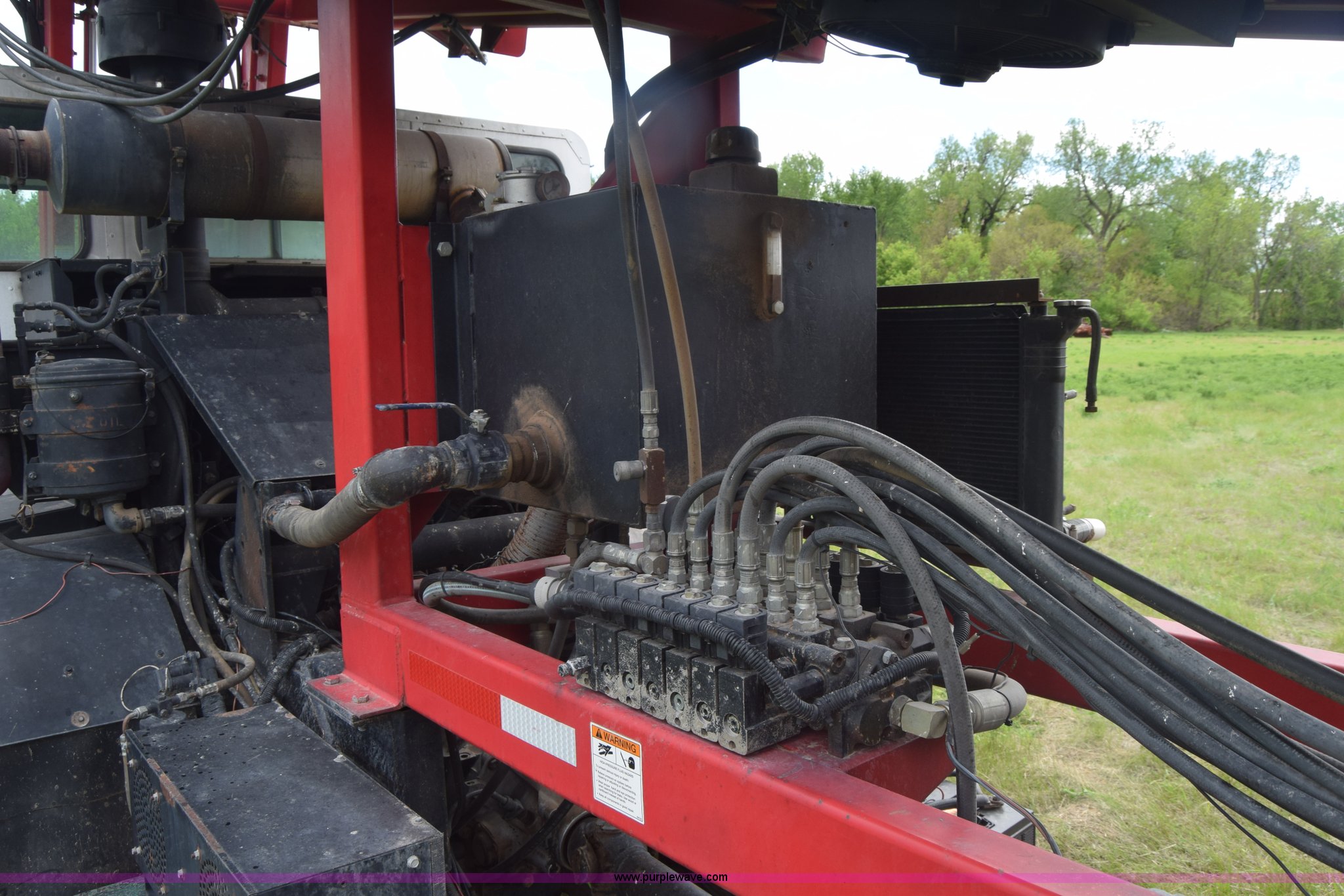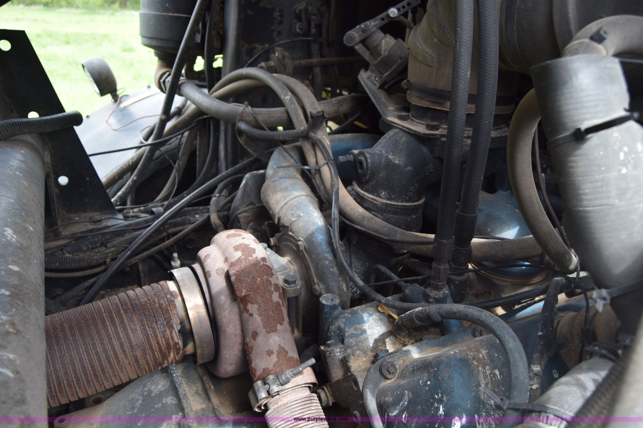 Purple Wave is selling a used Hay Handling in Kansas. This item is a Stinger 2402 bale transport/stacker with the following: 34,453 miles on odometer, 14,865 hours on meter, Detroit Diesel V8 diesel engine, Automatic transmission, AC and heat, AM/FM, Air suspension seat, 34' x 54"W bale deck, (8) 4'x4' square bale capacity, Approx. 26,000 lbs capacity, Rubber bushed spring suspension, Air brakes, 425/65R22.5 front tires, 12.00R24 rear tires, Serial 182