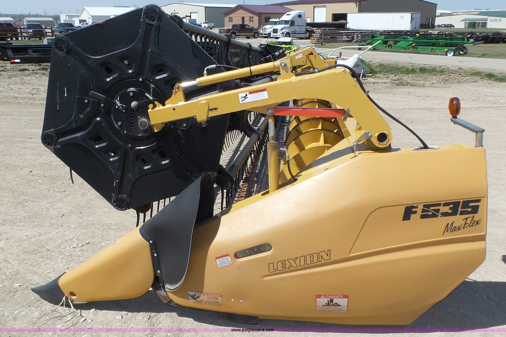 2008 Claas Lexion F535 Max Flex Series 441 flex head. 35'W, Finger reel, Hydraulic reel height control, Poly skid plates, Soybean cutter bar Flex auto contour, Single drivelines, Parts manual, Serial 44100669. See Build Sheet for more information. Nebraska Harvest Center. 1717 Chiefs Way. Wayne, NE 68787