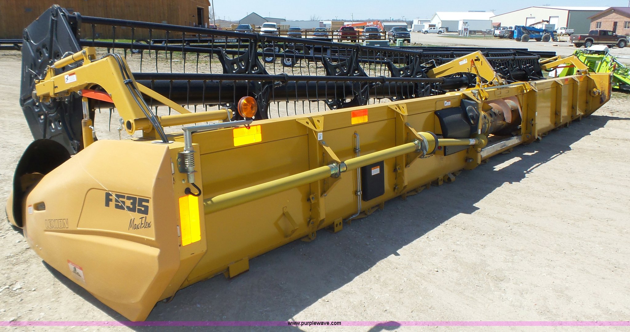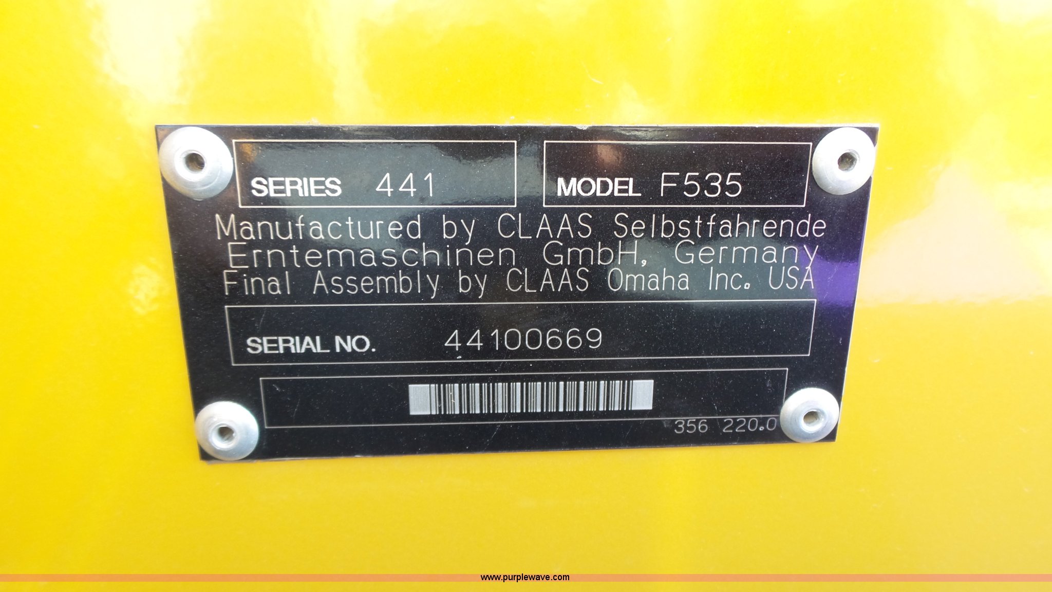 Purple Wave is selling a used Platform or Stripper Head in Nebraska. This item is a 2008 Claas Lexion F535 Max Flex Series 441 flex head with the following: 35'W, Finger reel, Hydraulic reel height control, Poly skid plates, Soybean cutter bar, Flex auto contour, Single drivelines, Parts manual, Serial 44100669