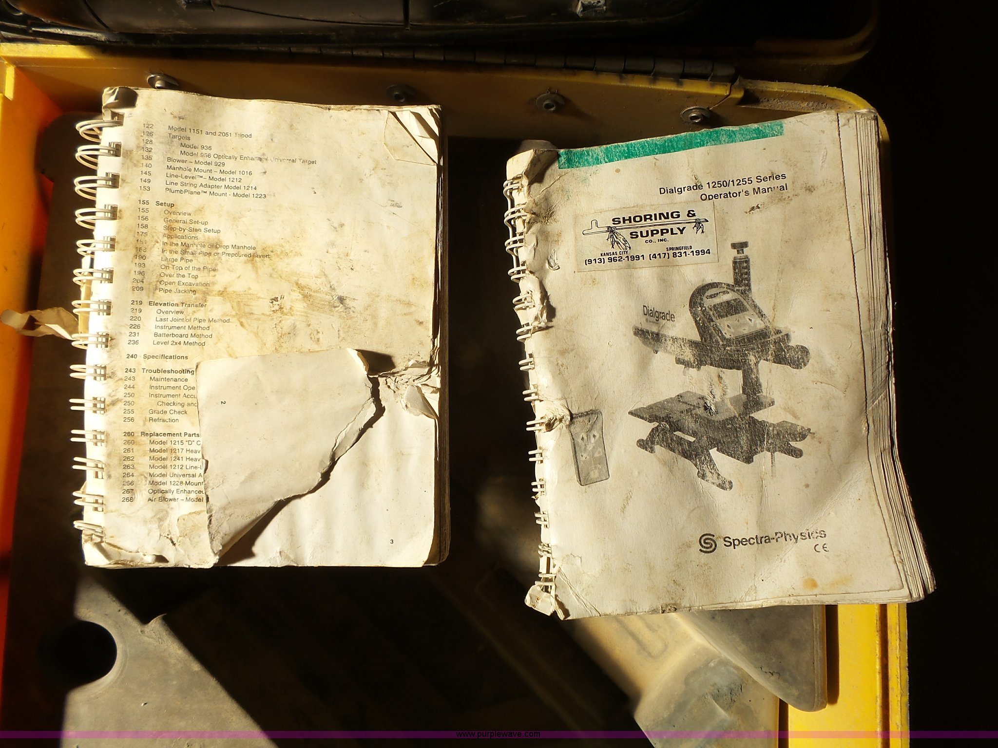 1996 Spectra Precision Dial Grade 1255 laser. Leads, (2) planes, Guide, Bracket, Operator's manual, Serial 280F. Herrman's Excavating. 1459 SE Jefferson. Topeka, KS 66607