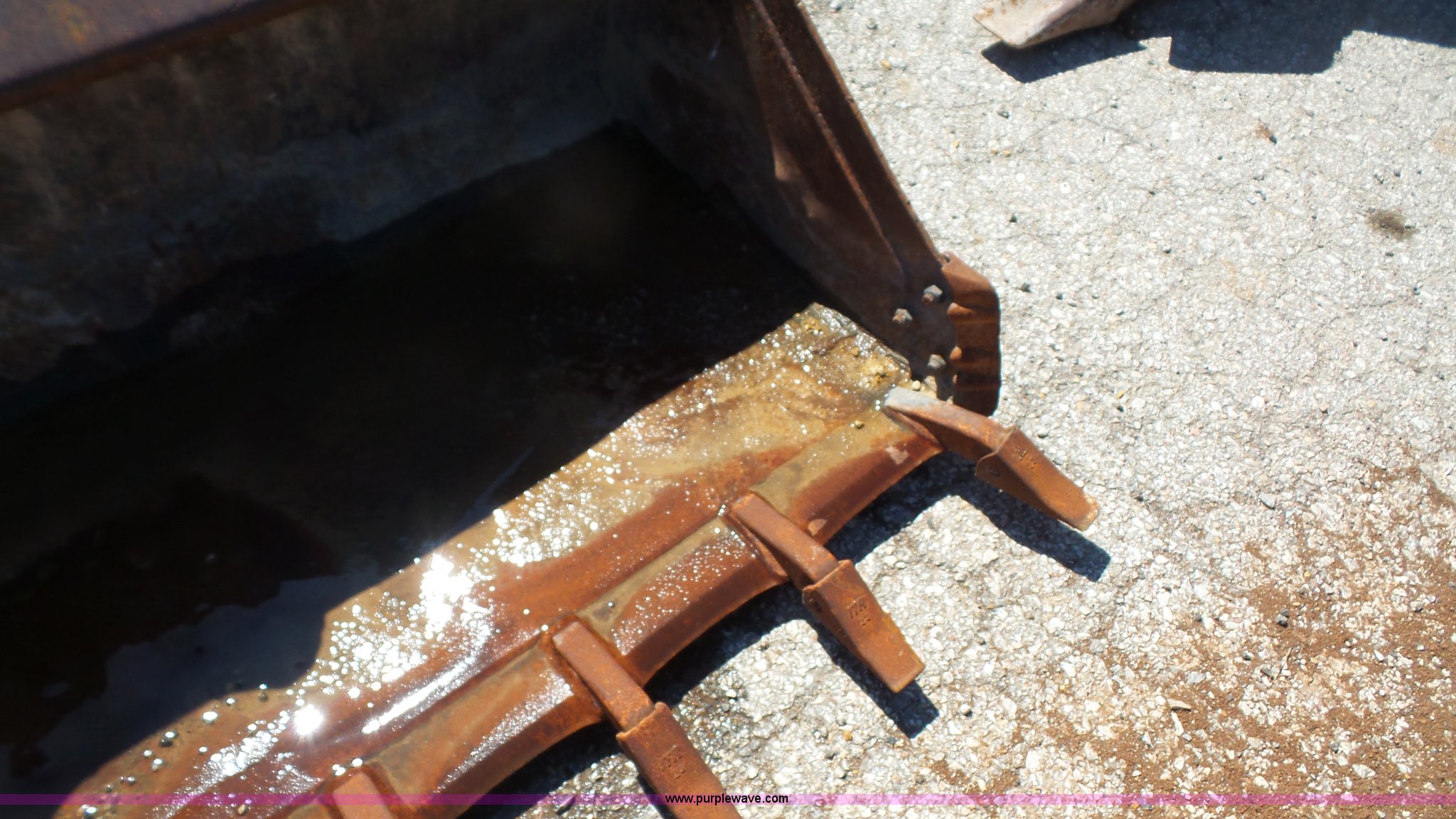 Bradco skid steer bucket. 75"W, (8) weld-on teeth, Right side of bucket is broken. RD Johnson Excavating. 1705 N 1399 Rd. Lawrence, KS 66046