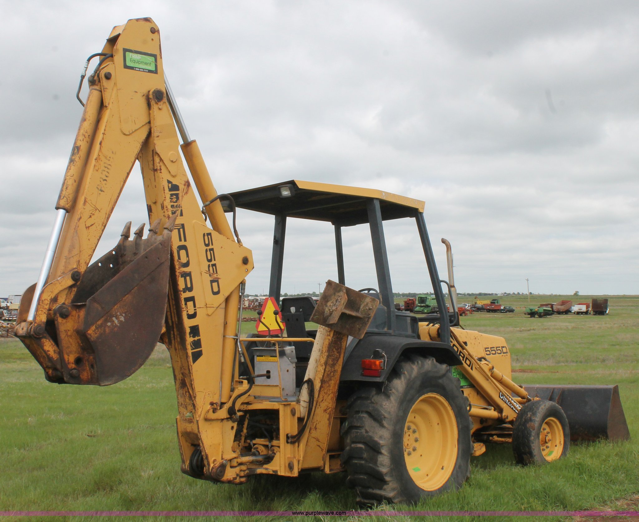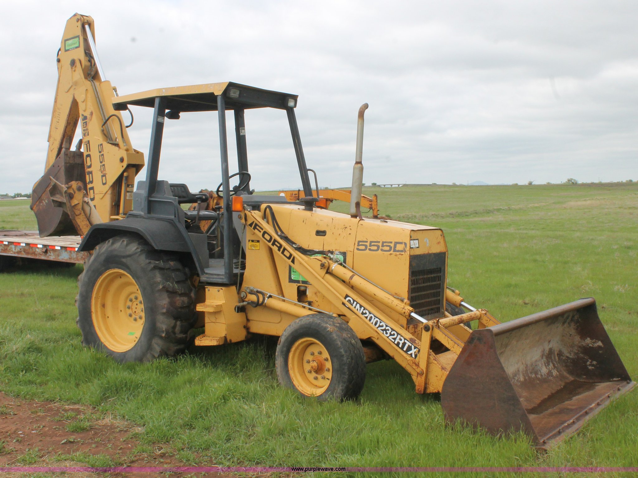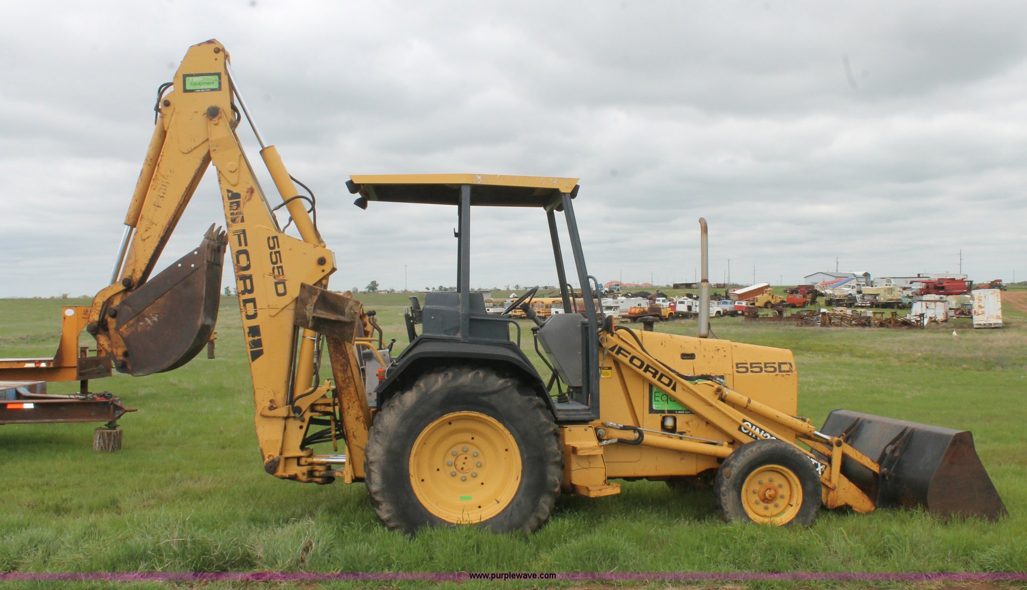 Purple Wave is selling a used Tractor Loader Backhoe in Oklahoma. This item is a 1995 Ford 555D backhoe with the following: 3,508 hours on meter, Ford four cylinder diesel engine, Shuttle shift transmission, 4F-4R gears, Suspension seat, Wobble stick backhoe controls, Front and rear work lights, 88"W loader bucket, 22.5"W backhoe bucket, Bolt-on cutting edge, (4) teeth, 16.9-28 rear tires, Serial A432202