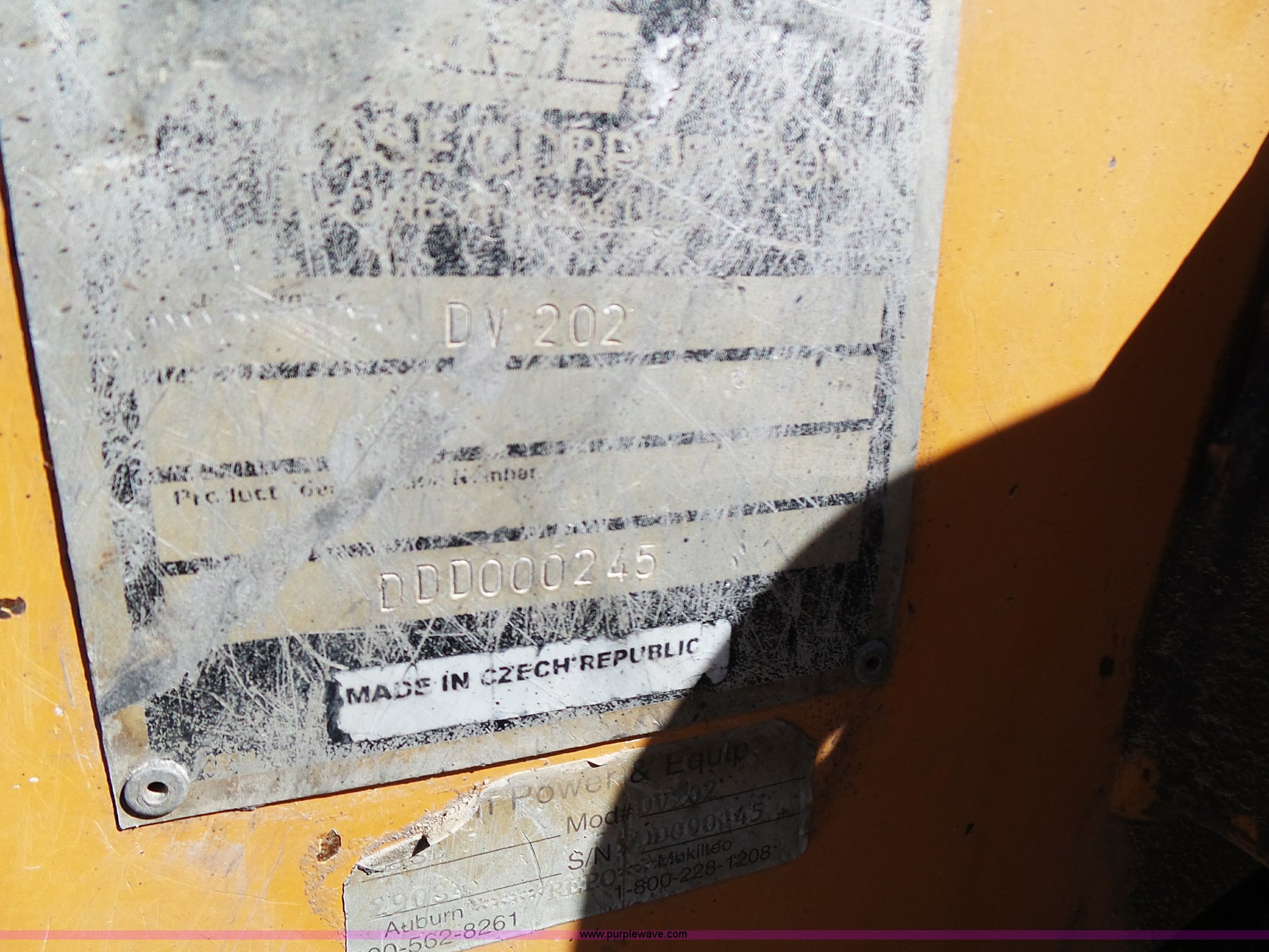 Purple Wave is selling a used Double Drum Roller Compactor in Missouri. This item is a 2006 Case DV202 double drum compactor with the following: 556 hours on meter, Duetz 4DZXL031041 1.555L diesel engine, Hydrostatic transmission, Suspension seat, Vandal cover, 48"W drums, Front and rear water application, Steel wheels, Serial DDD000245