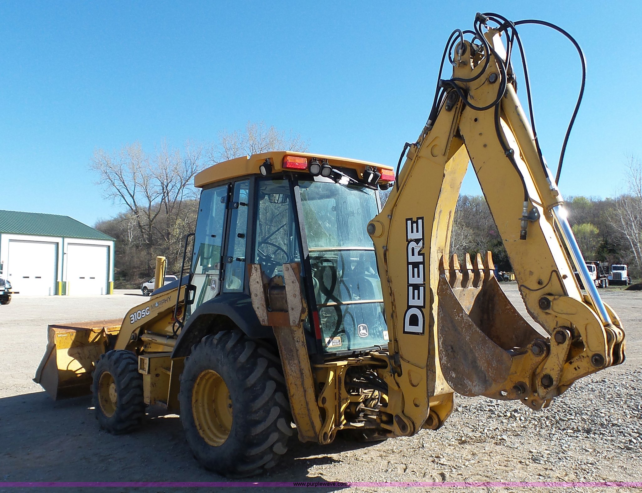 Purple Wave is selling a used Tractor Loader Backhoe in Missouri. This item is a 2006 John Deere 310SG backhoe with the following: 4,703 hours on meter, Four cylinder turbo diesel engine, Shuttle shift transmission, 3F-3R gears, Four wheel drive, EROPS, AC and heat, AM/FM, Suspension seat, Wobble stick backhoe controls, Backup alarm, Front and rear work lights, John Deere hydraulic quick coupler, John Deere loader bucket, 91"W, Bolt-on cutting edge, John Deere forks, 62"L, Auxiliary hydraulics, E-stick, 24"W backhoe bucket, (5) teeth, Front counterweights, 12.5/8-18 front tires, 19.5-24 rear tires, 13,500 lbs. base operating weight, Serial T0310SG956469